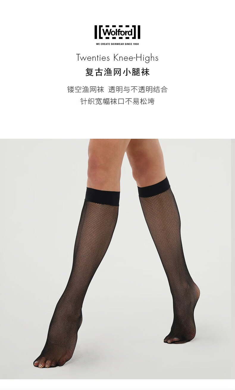 Wo wo niao Wolford/Wolford Twenties hollow fishnet calf socks 7005_black S