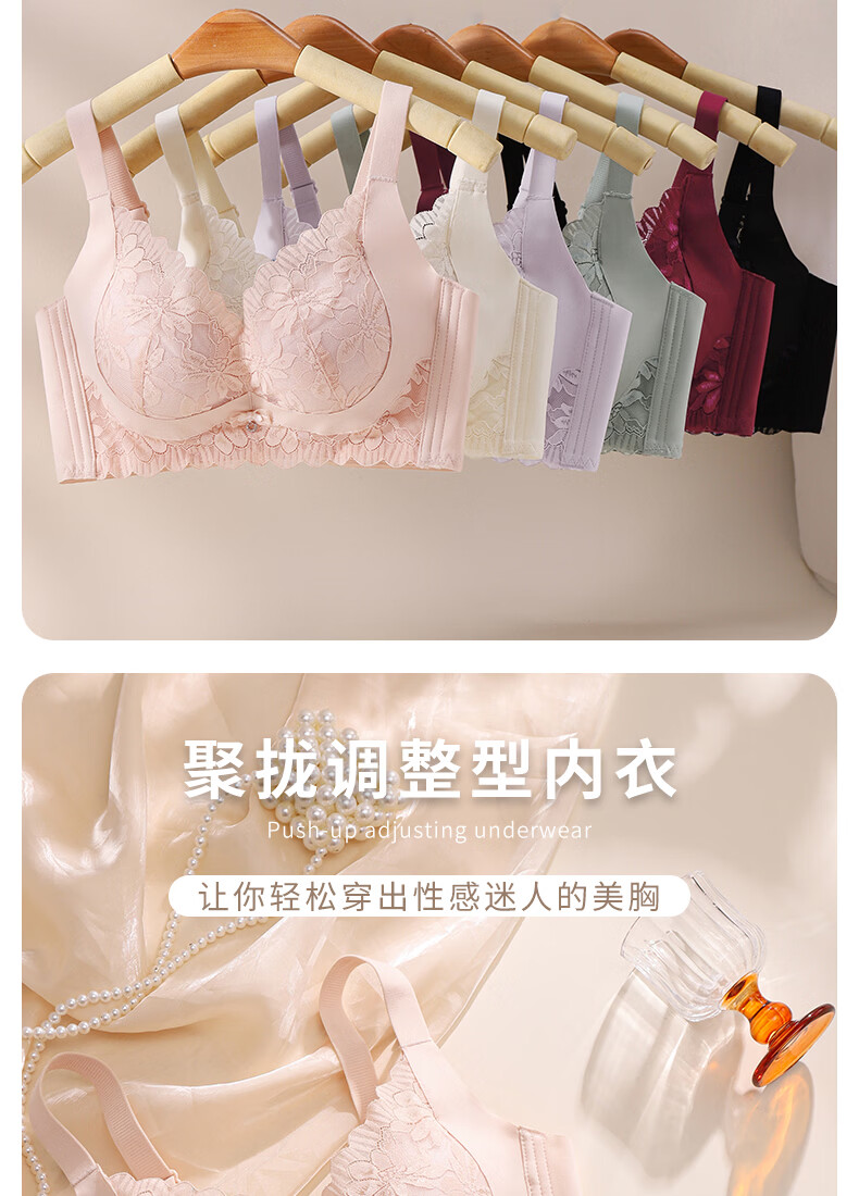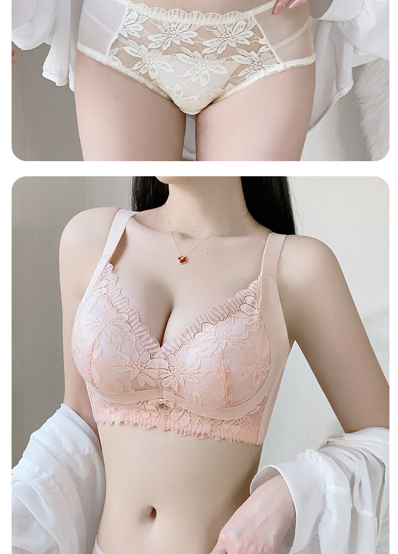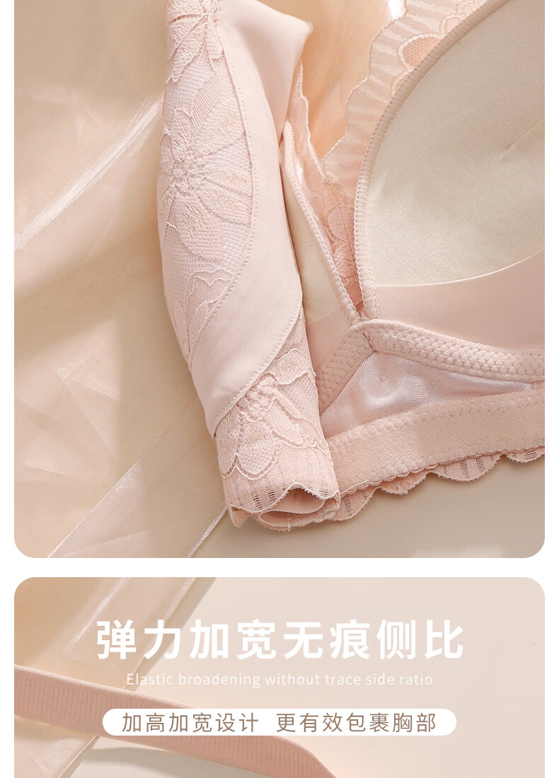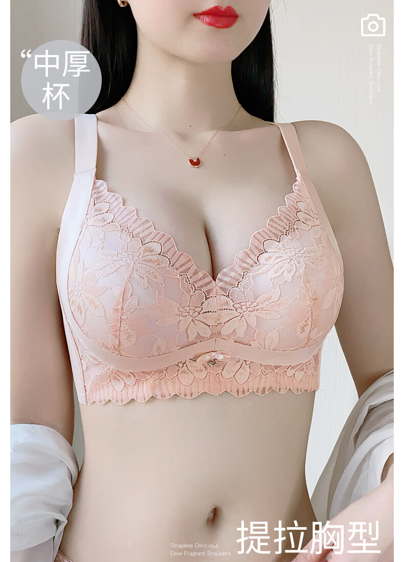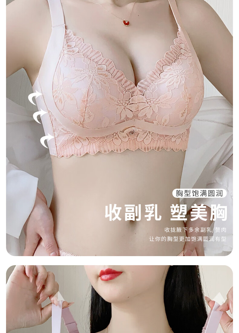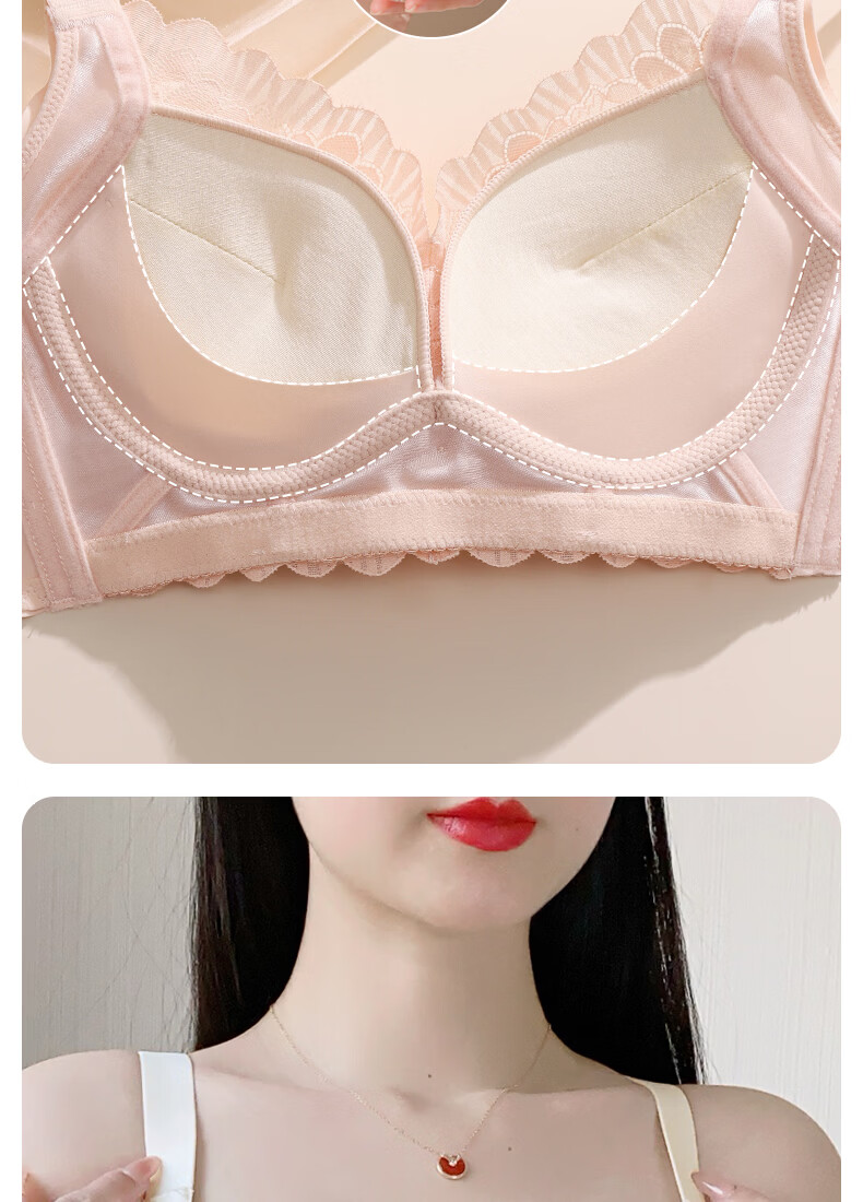 Tingmei Adjustable Bra Women's Medium Cup Reducing Secondary Breasts Anti-Sagging Sexy Lace Lifting Shape Wireless Bra Pink Skin
