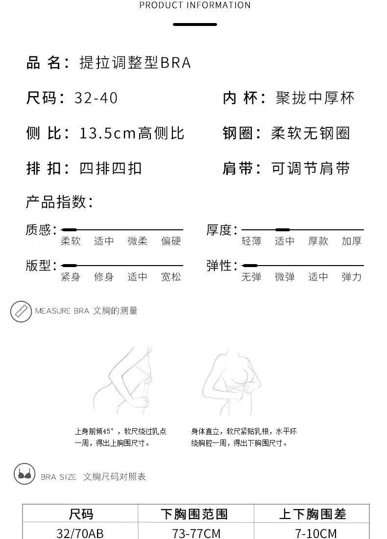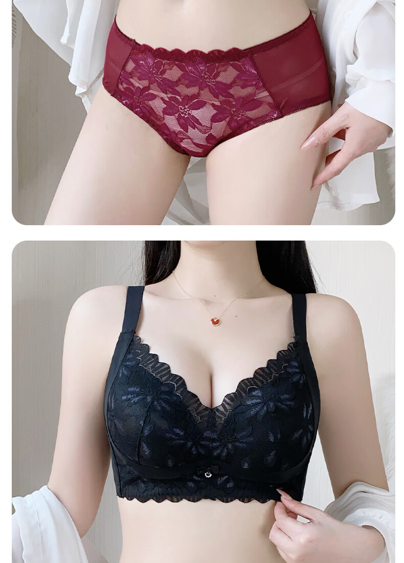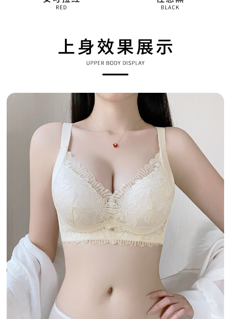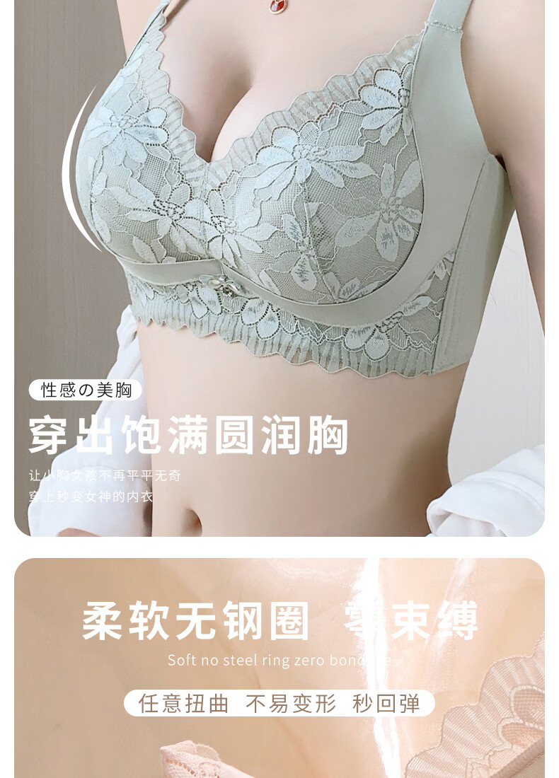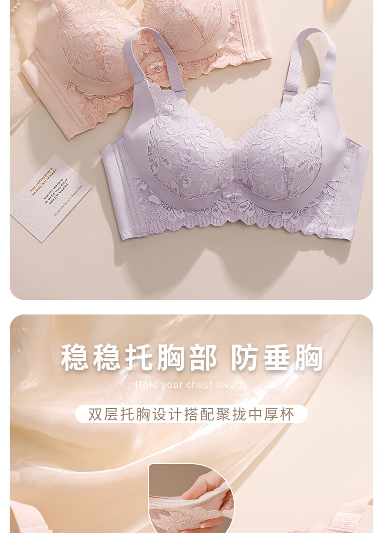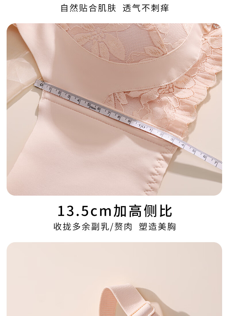 Tingmei Adjustable Bra Women's Medium Cup Reducing Secondary Breasts Anti-Sagging Sexy Lace Lifting Shape Wireless Bra Pink Skin