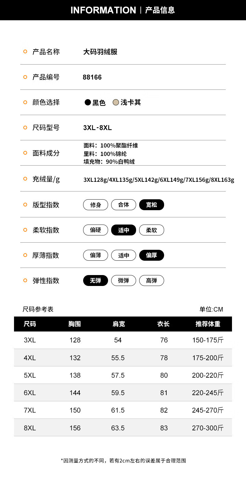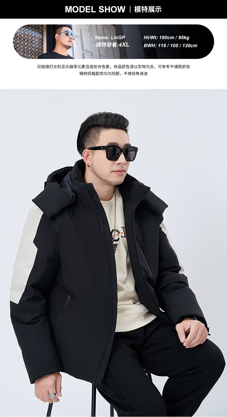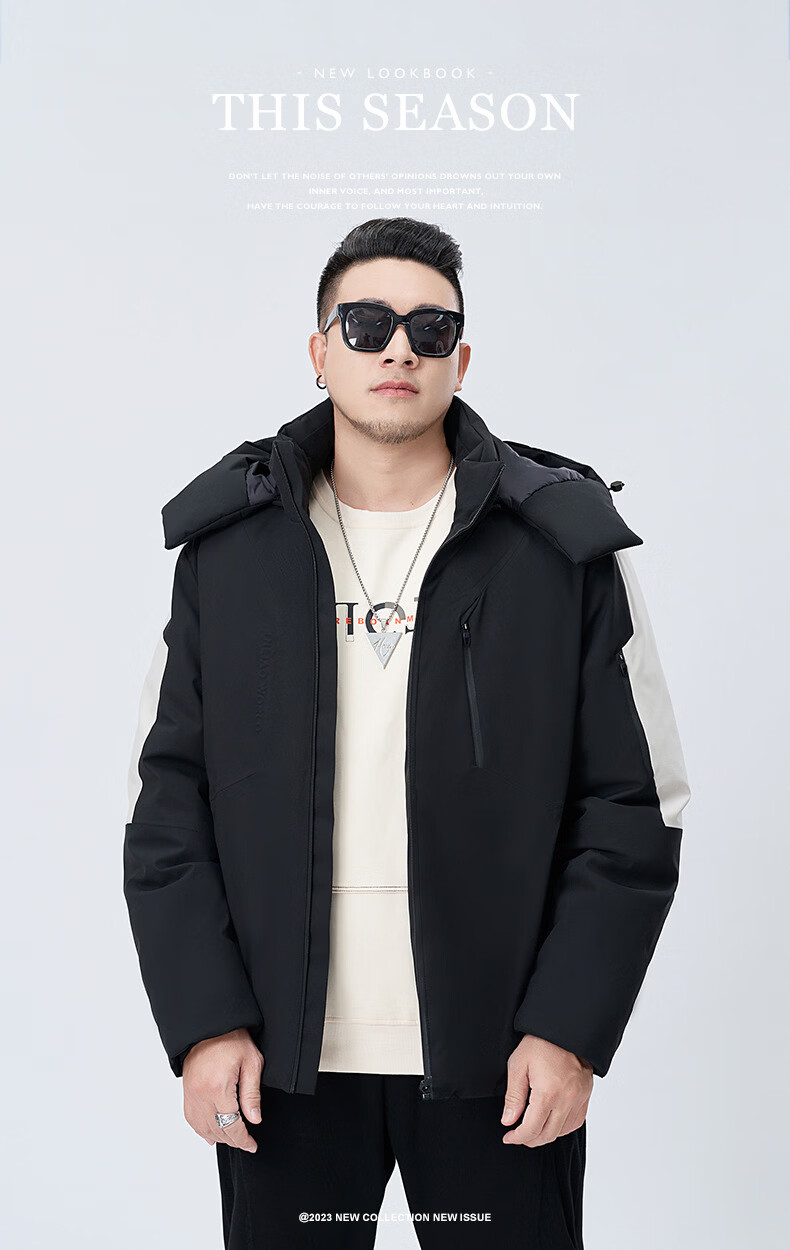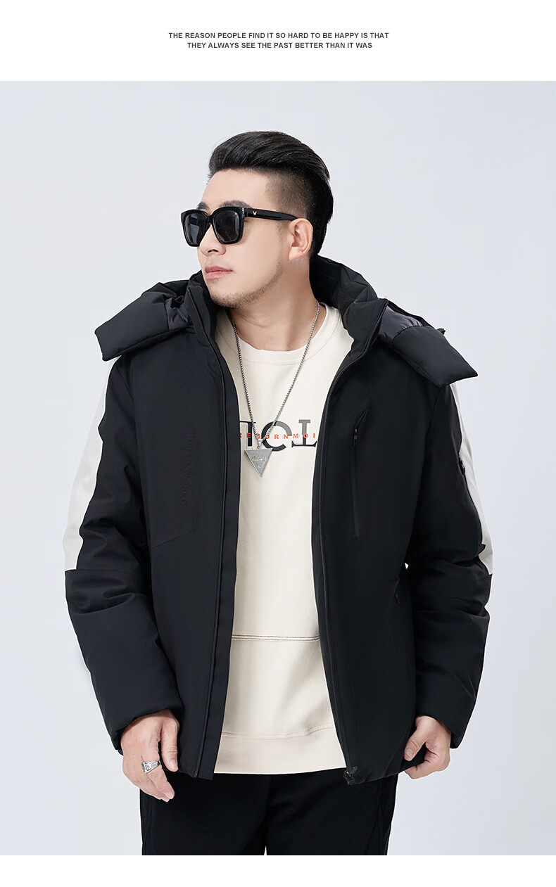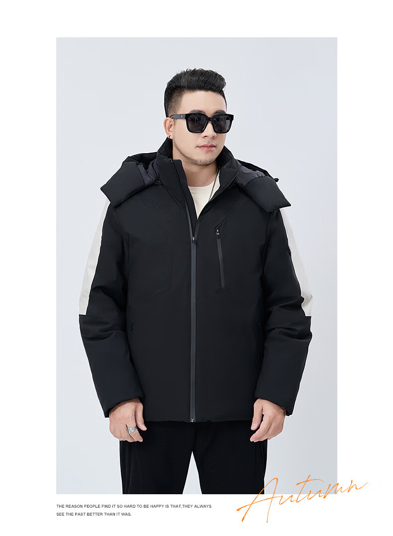 Tanye Men's Large Size Down Jacket Loose Hooded Warm 90% White Duck Down Fat Man Fat Man Plus Fat Oversize Jacket Trendy Brand 88166 Black 3XL Recommended 150-175 Jin Jin is equal to 0.5 kg