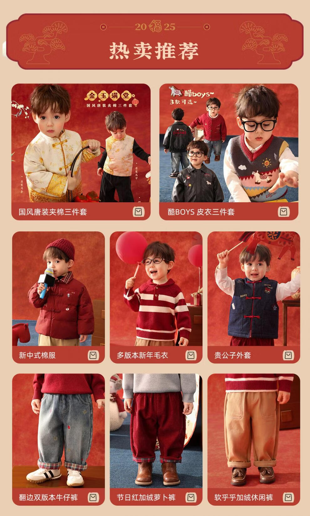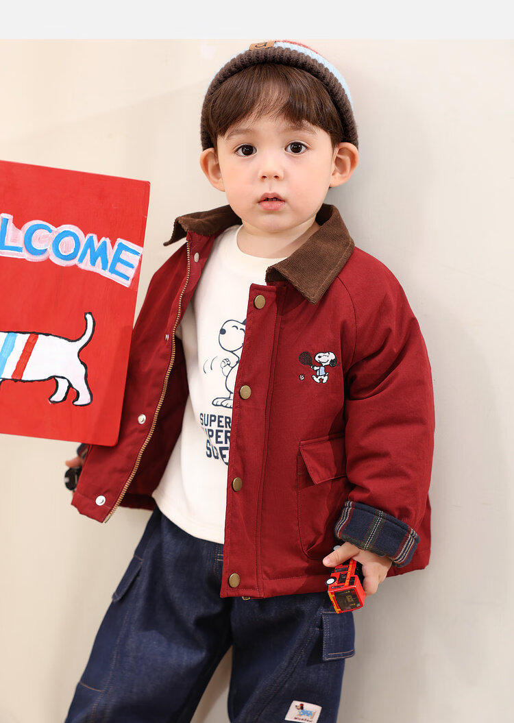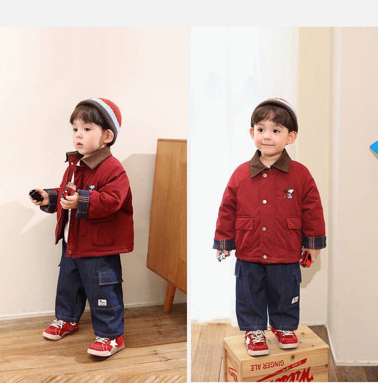 Purunderwear Cotton Era Little O Dad Baby Boy Baby Winter Suit Warm Sweater Cardigan 2025 New Baby Red Cotton Jacket Pre-sale 80