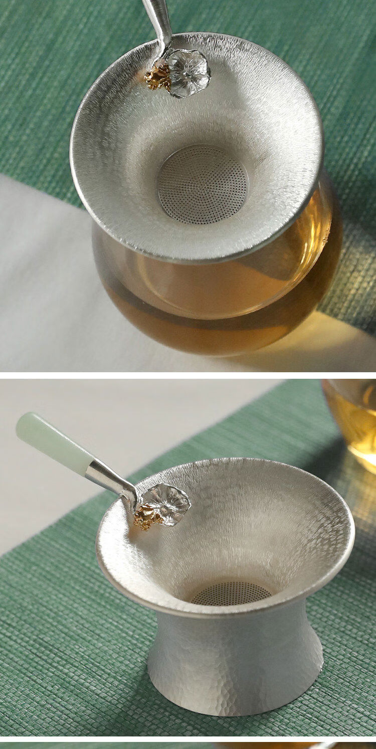 Wuxiwu silver tea drain sterling silver 999 pure handmade sterling silver tea drain tea strainer mesh tea strainer tea ceremony accessories silver tea set filter jade handle koi small 382g