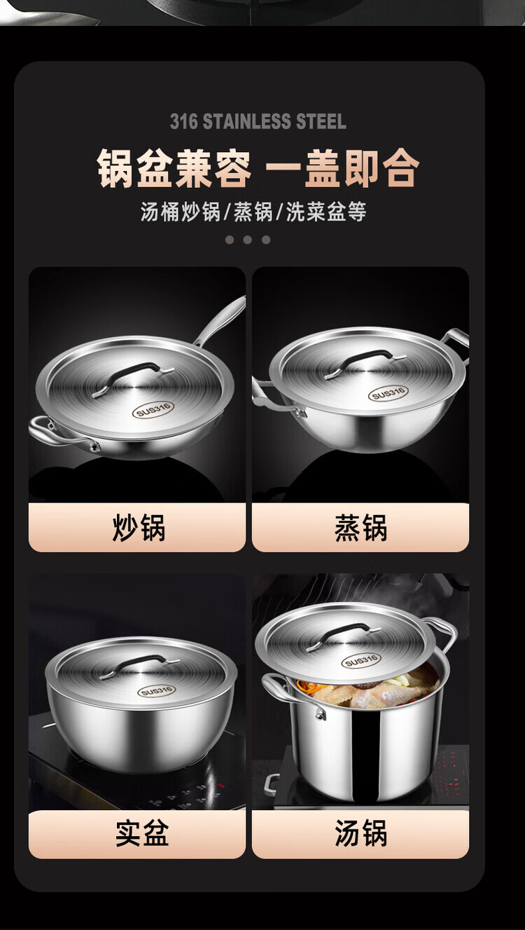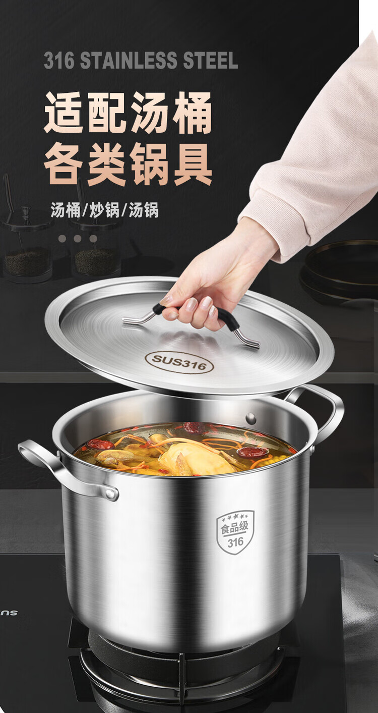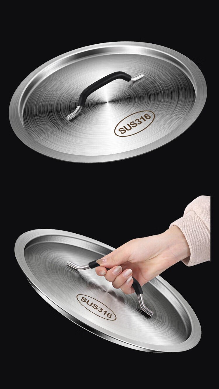 Fantasy extra thick 316 stainless steel soup bucket lid round thickened universal large pot lid flat lid sold separately 304 food grade lid 22CM thickened austenitic steel matching lid 1 inch