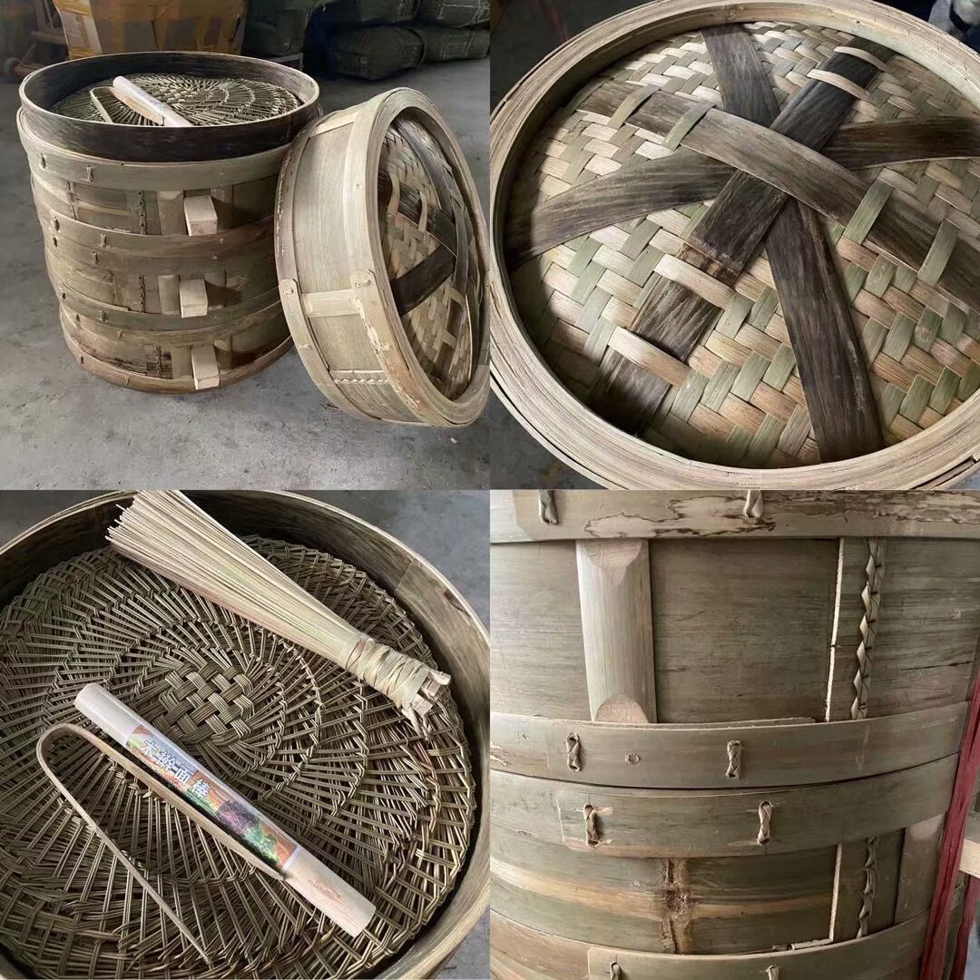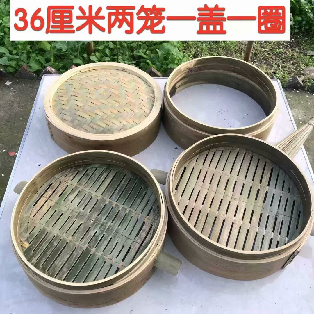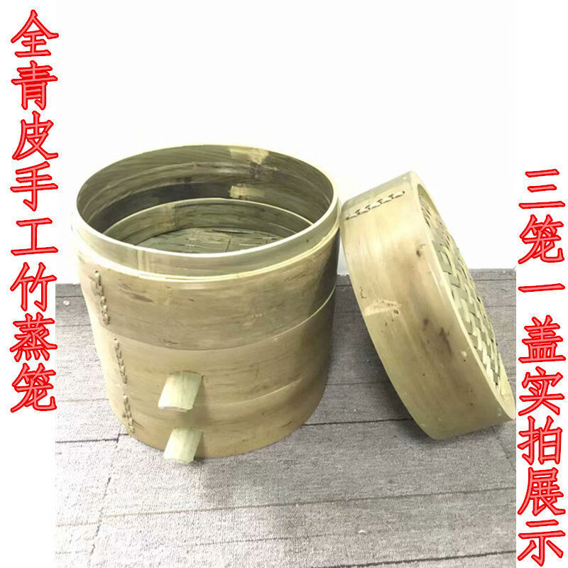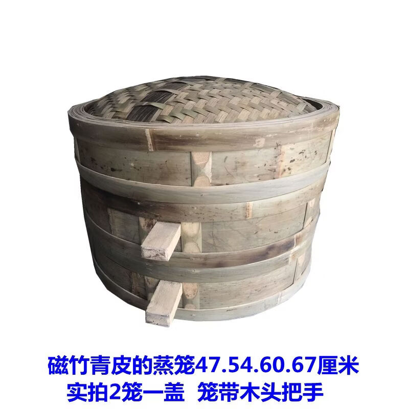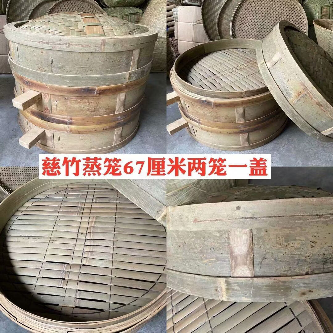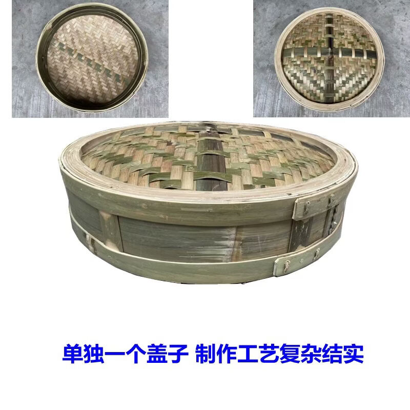 Purely handmade all green leather glue-free bamboo bamboo woven rural steamed buns deepened bamboo cage drawer bamboo steamer household steamer 73cm single grid or single lid holds 60 button bowls