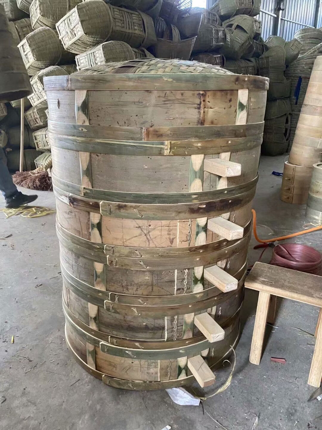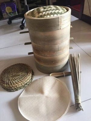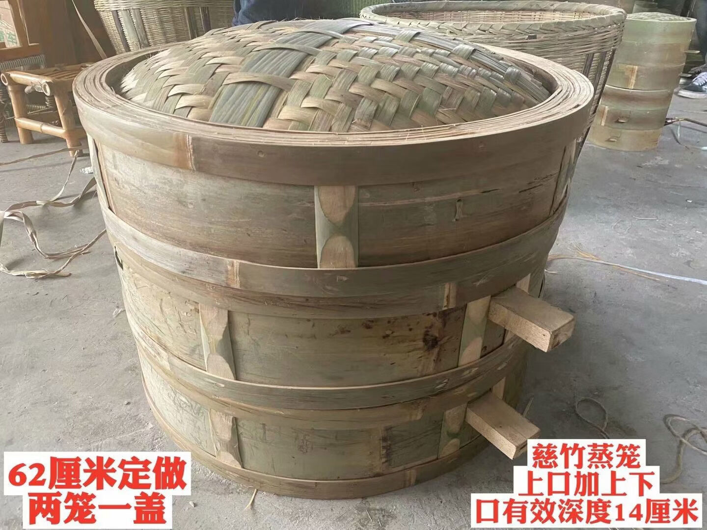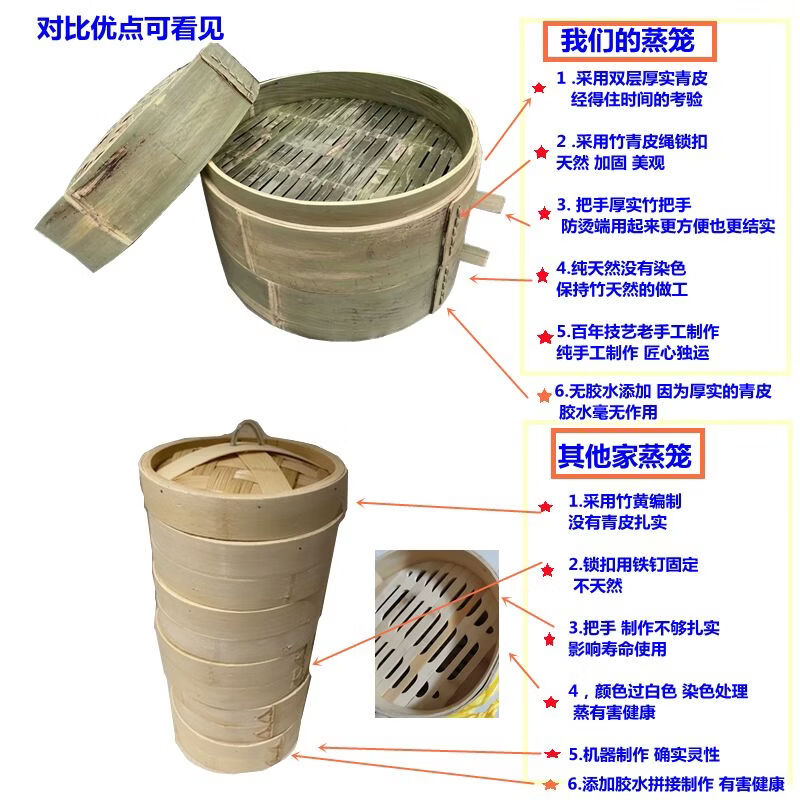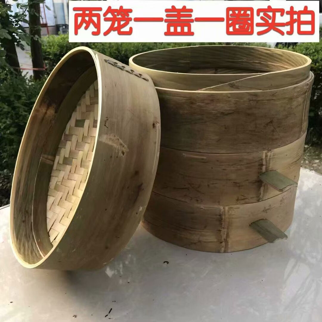 Purely handmade all green leather glue-free bamboo bamboo woven rural steamed buns deepened bamboo cage drawer bamboo steamer household steamer 73cm single grid or single lid holds 60 button bowls