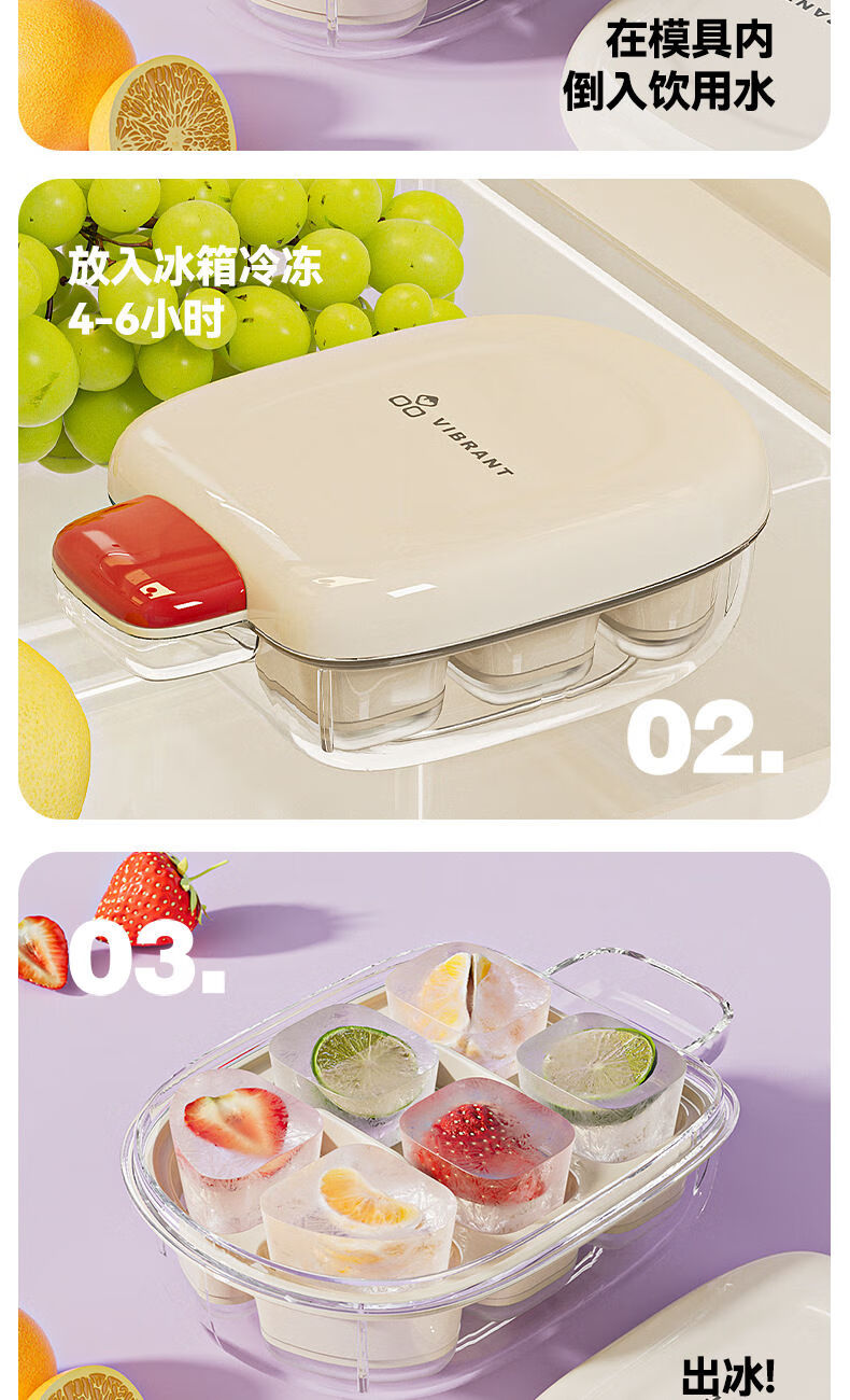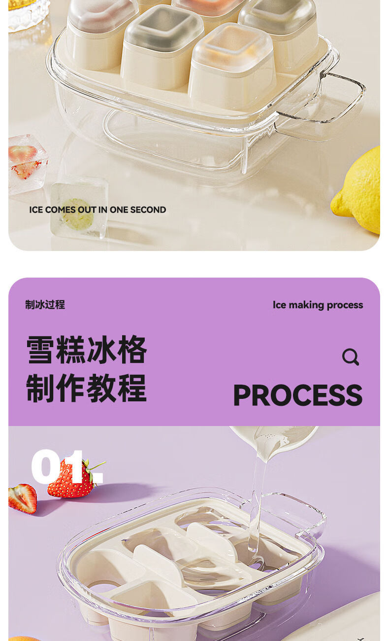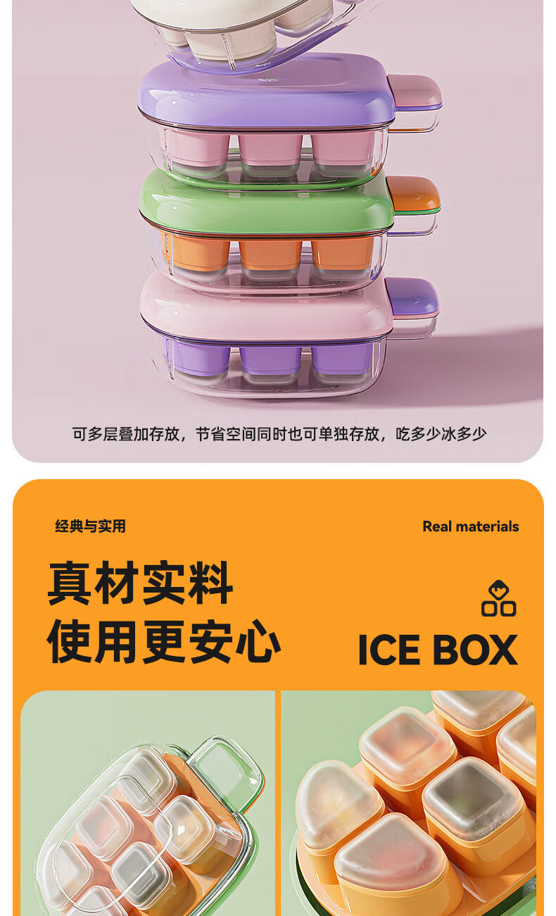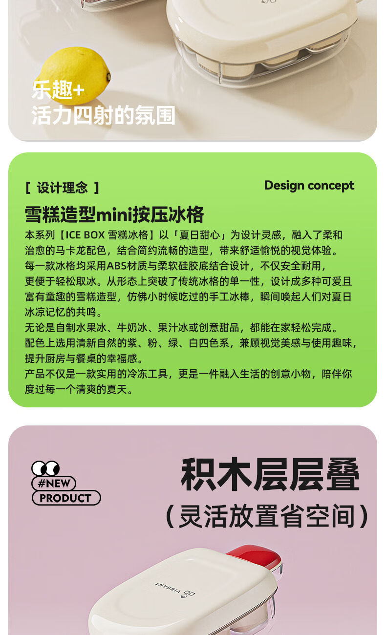 Ice cream mini ice cube mold push-type cool ice tray with lid ice box food grade silicone homemade frozen ice cubes two pack white + green