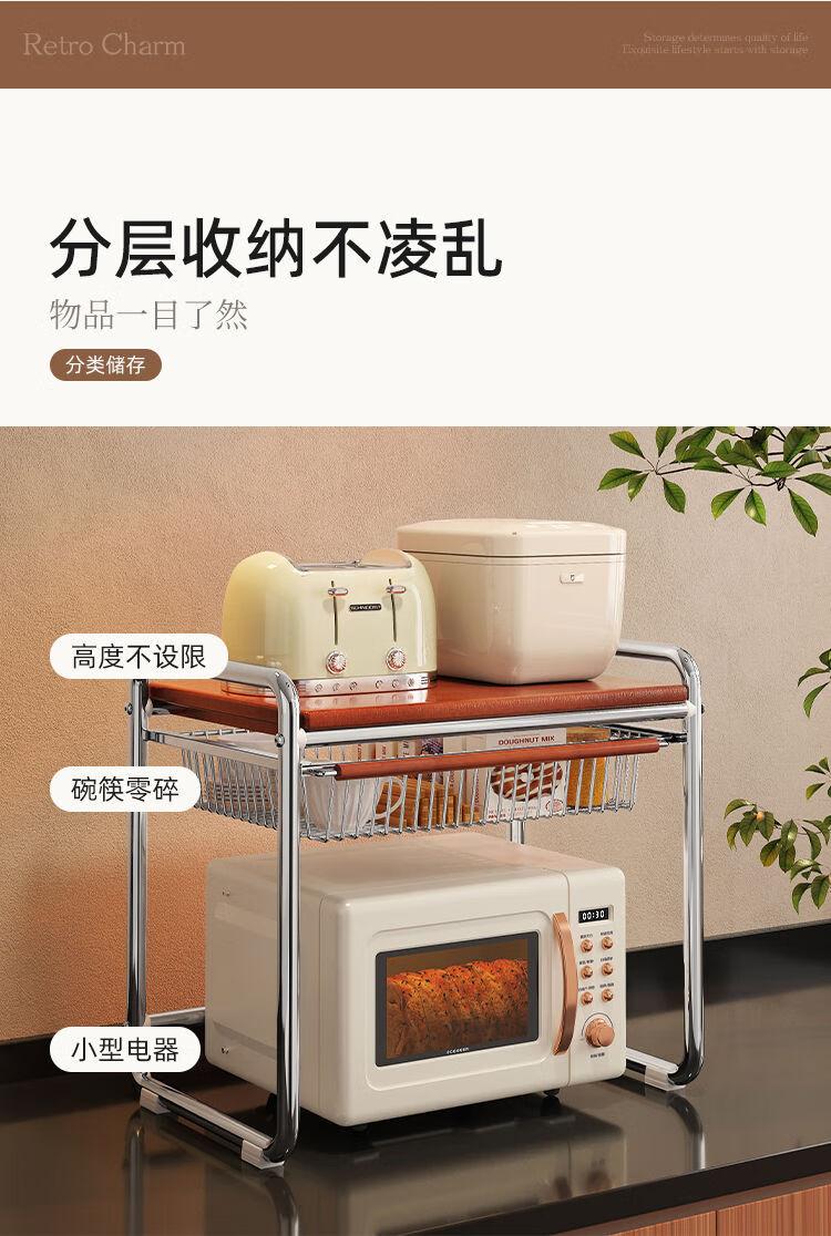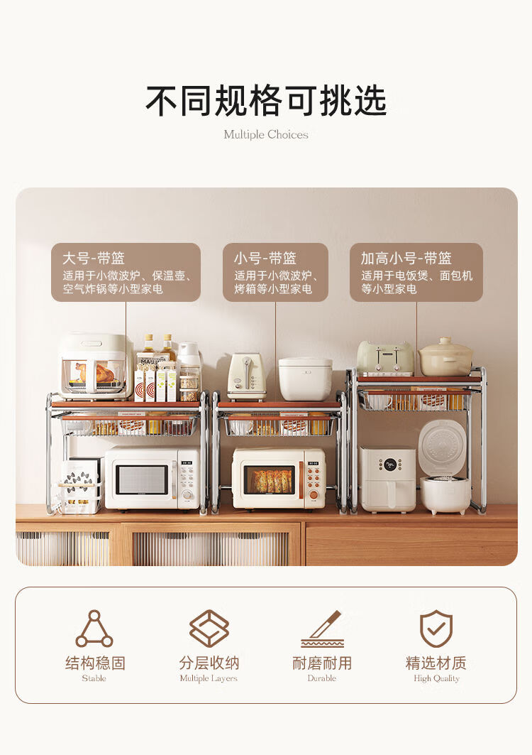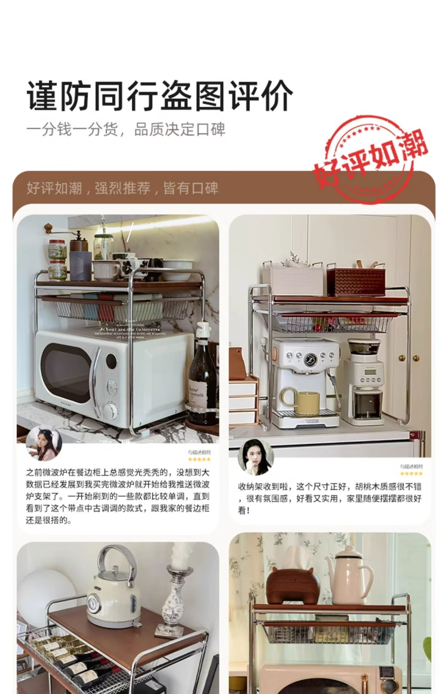 Solid wood microwave oven rack kitchen rice cooker shelf countertop household multi-functional appliance oven storage bracket large medieval microwave oven rack