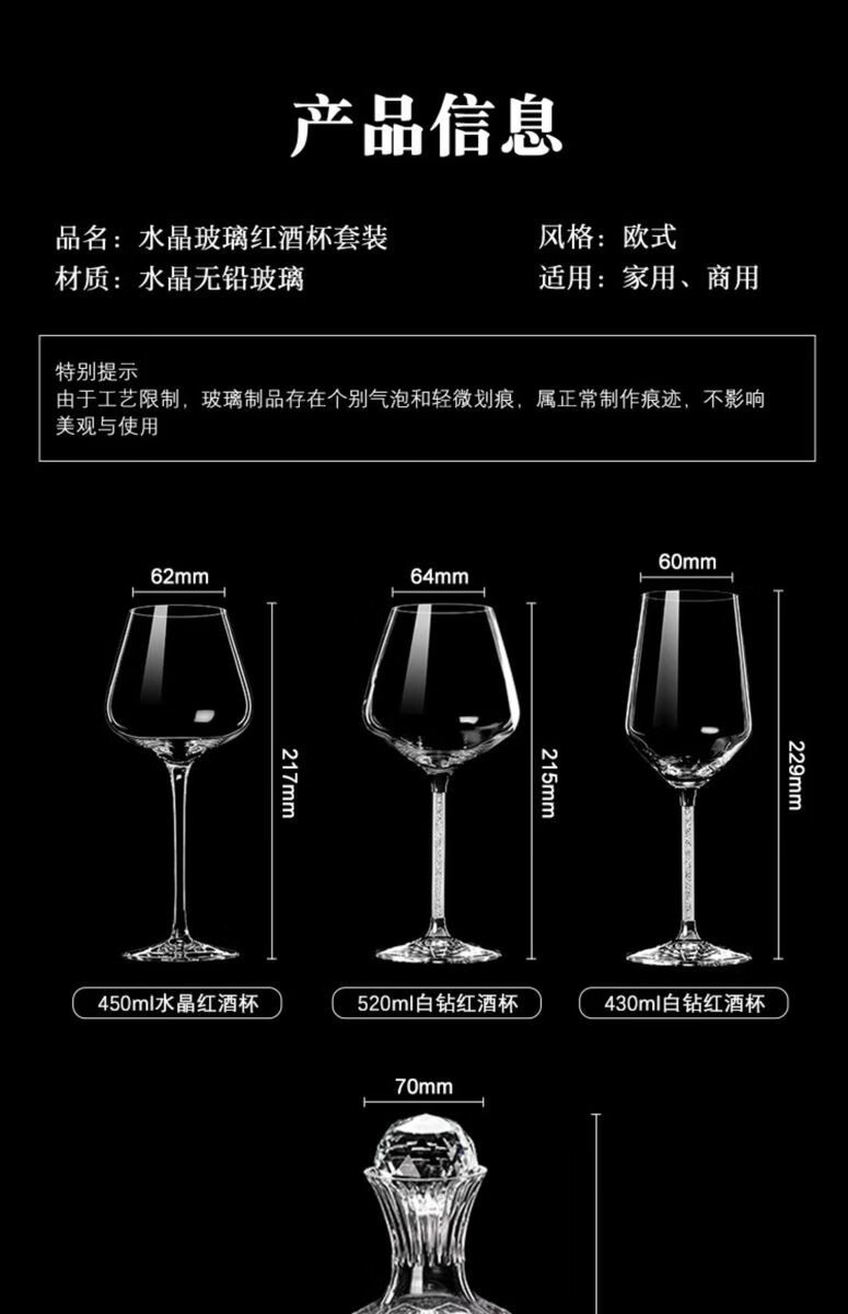 Sailoto DSHCOTE red wine glass set light luxury home decanter wine set wine glass crystal glass cup 6 270ml diamond love red cup + star diamond pot