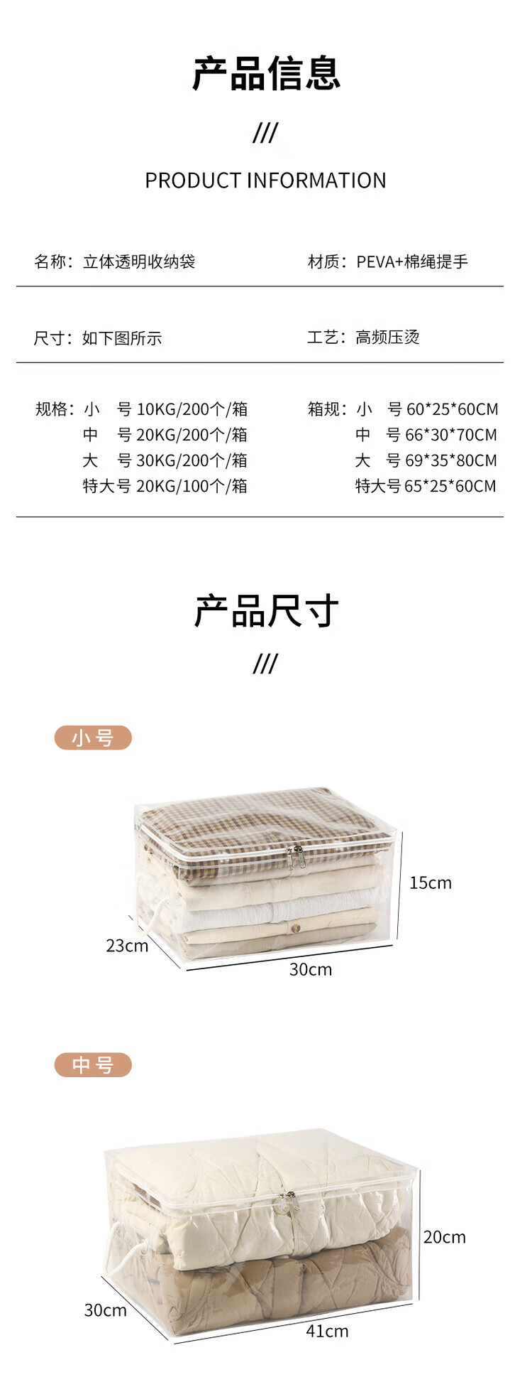 Four-piece storage bag Four-piece storage bag large-capacity bed sheet quilt cover Seasonal clothes quilt finishing transparent quilt Small transparent storage bag WG-2905