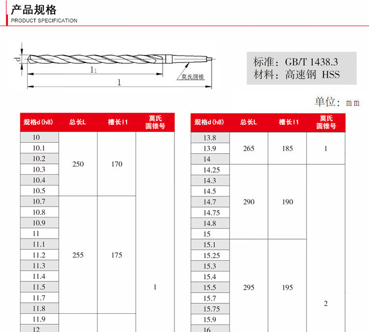 Sailoto extended taper shank drill bit Morse cone taper drill taper shank twist drill high speed steel standard extended taper shank drill bit 20 points 1-21mm blade length 230 total length 330
