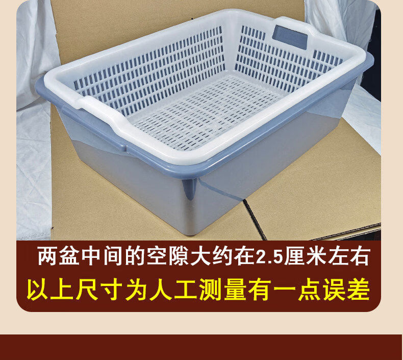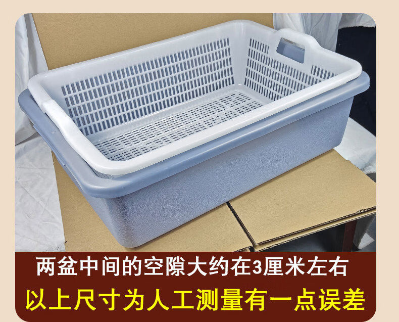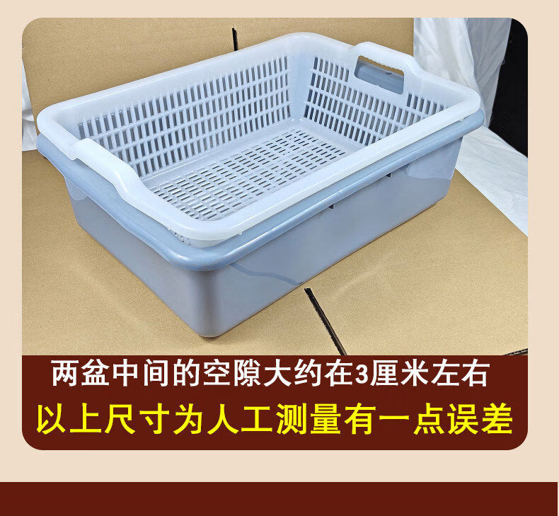 Others double-layer drain basket vegetable sink thickened durable rectangular hotel kitchen commercial large vegetable basket plastic frame white length 52 points 5 width 39 height 16 points 5 + handle net