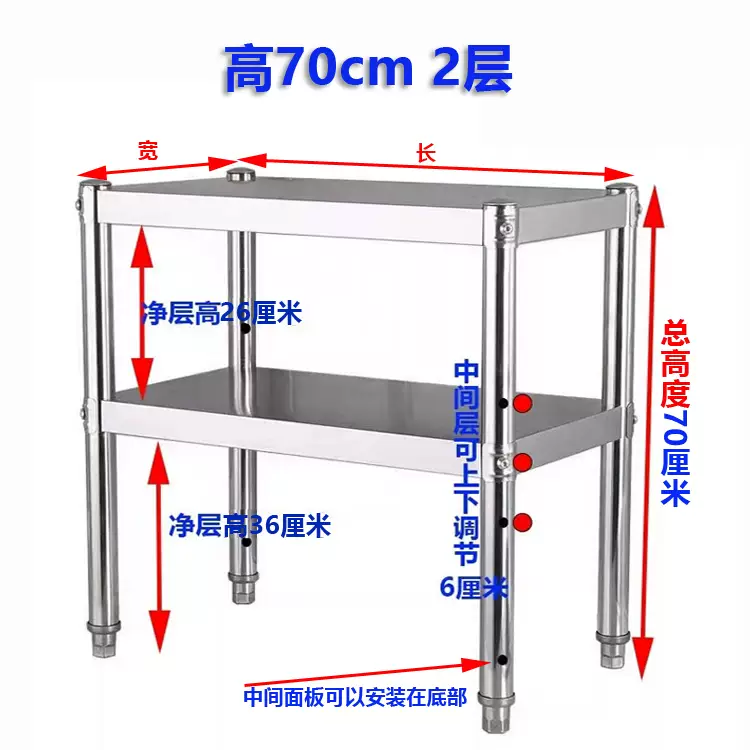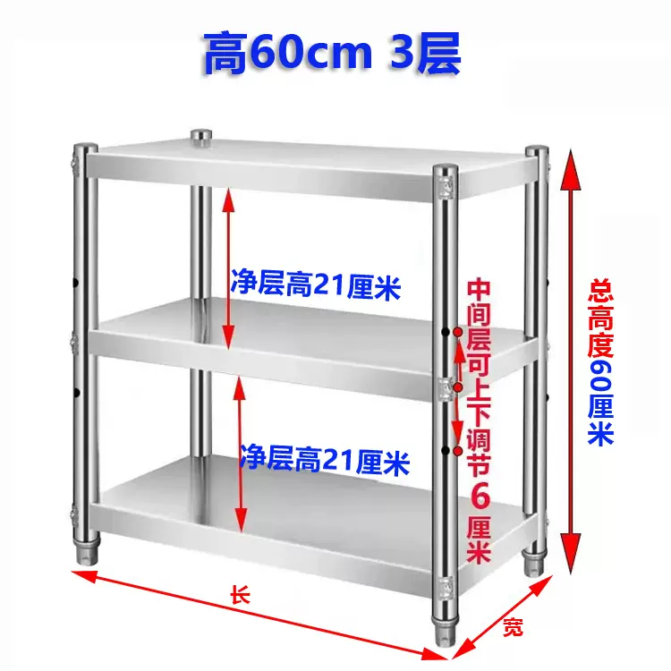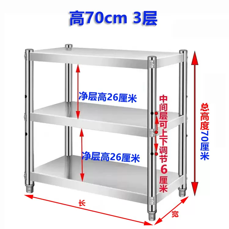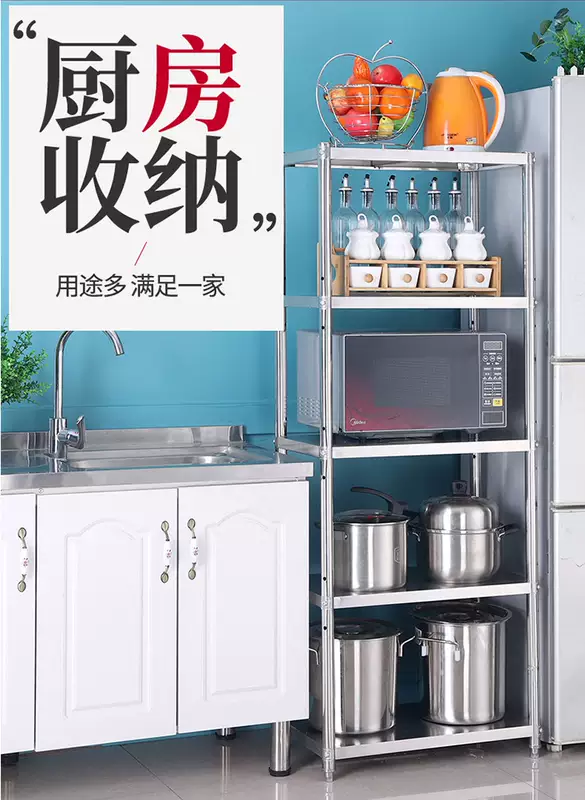 Yusenyi carbon steel wheeled storage rack shelf rack pot microwave oven storage sandwich items household goods floor 20 wide 60 long 70cm high 3 layers (carbon steel wheel)