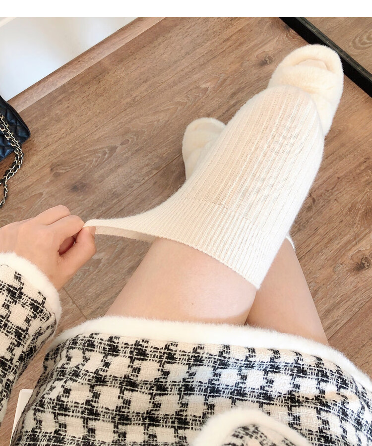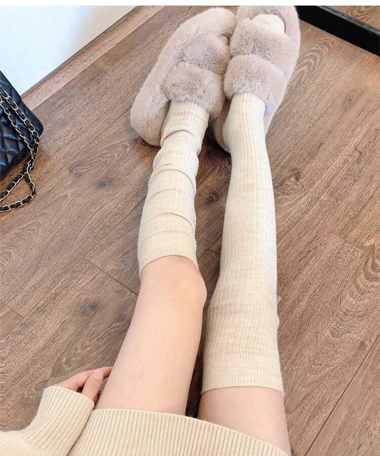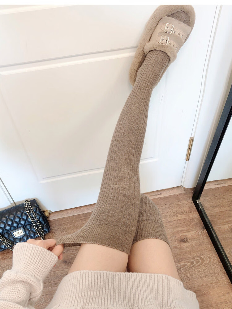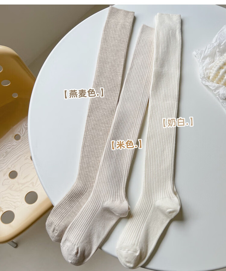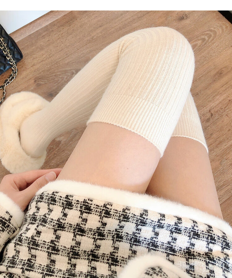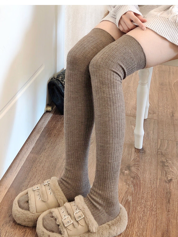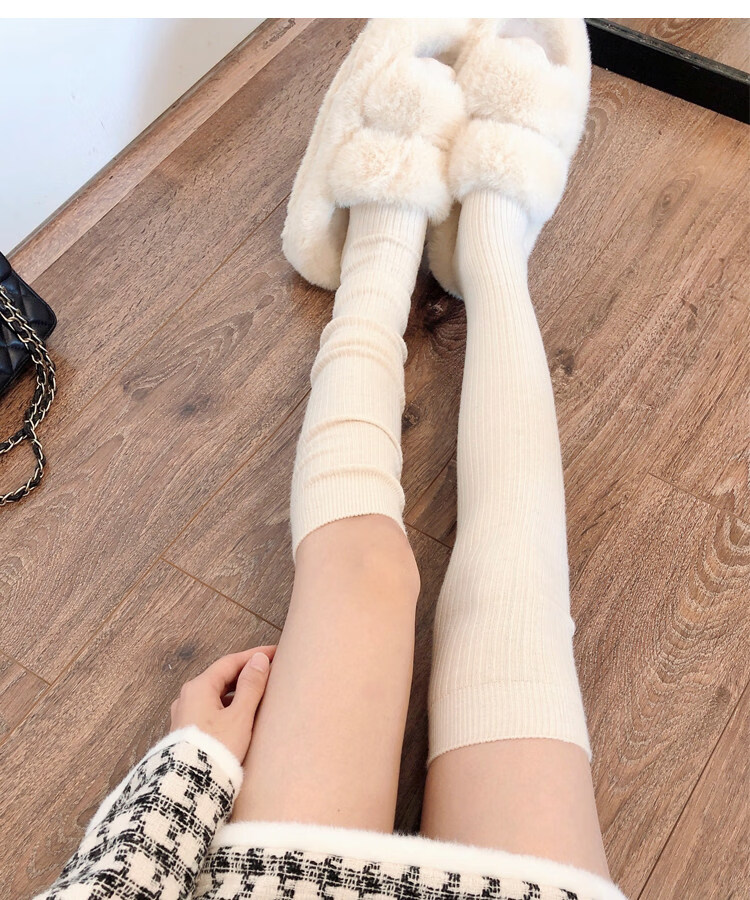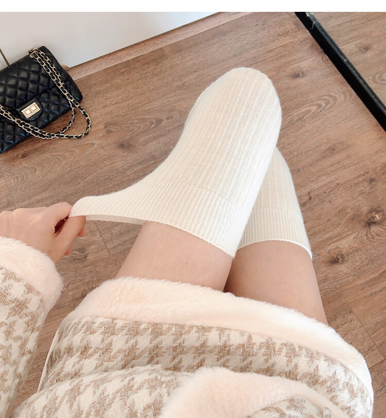 Shijanu Autumn and Winter Plus Velvet Beige Over-the-Knee Socks Women's Warm Wool Japanese Style JK Long Tube Milk White One Size Two Pack