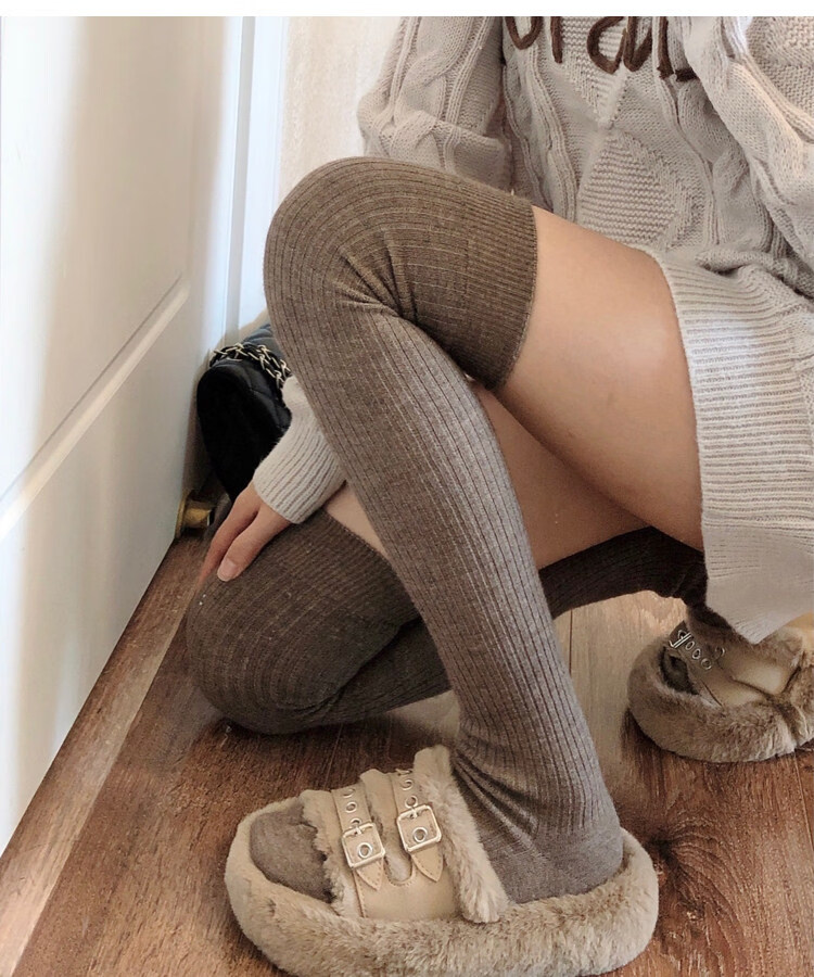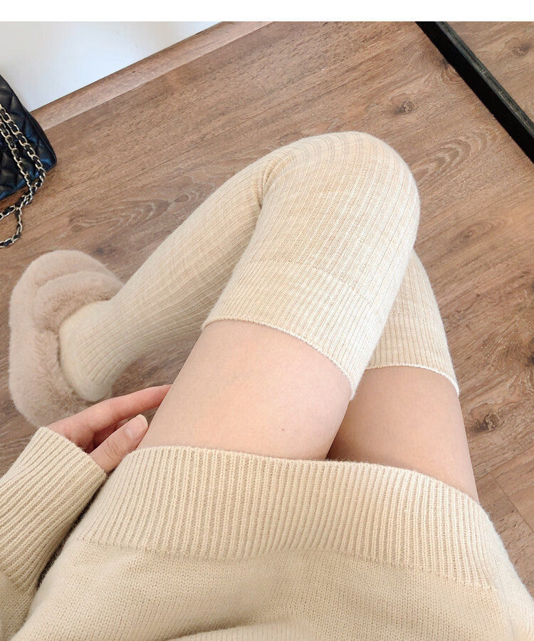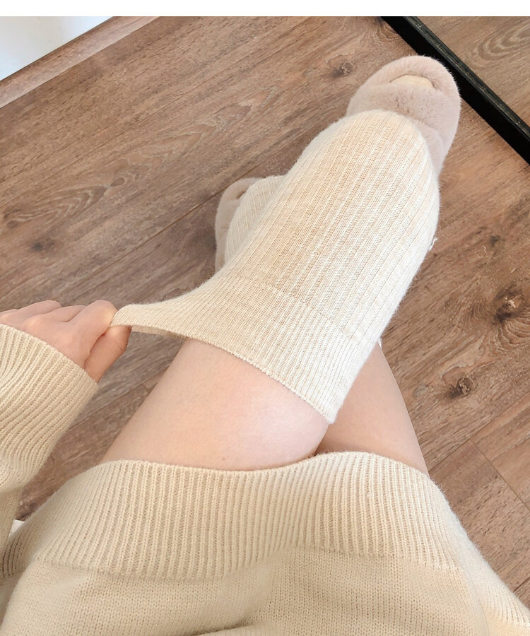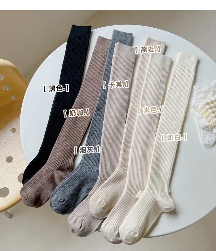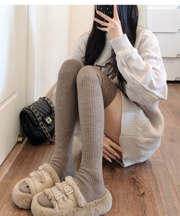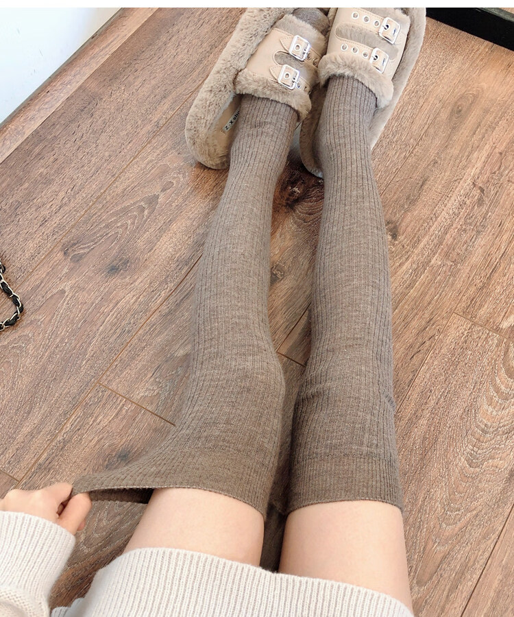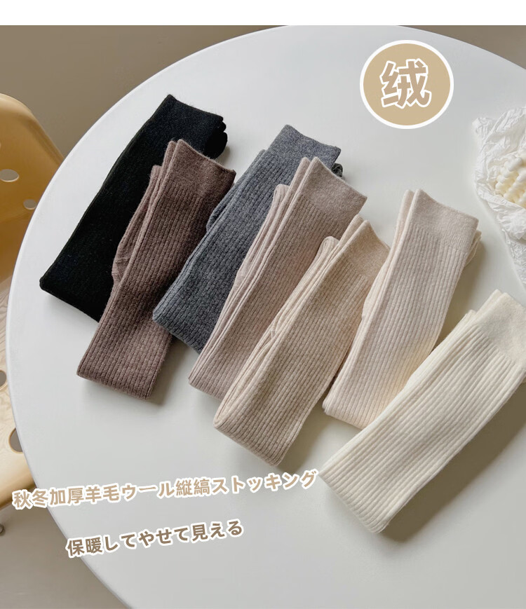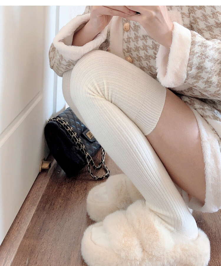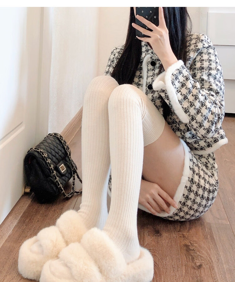 Shijanu Autumn and Winter Plus Velvet Beige Over-the-Knee Socks Women's Warm Wool Japanese Style JK Long Tube Milk White One Size Two Pack