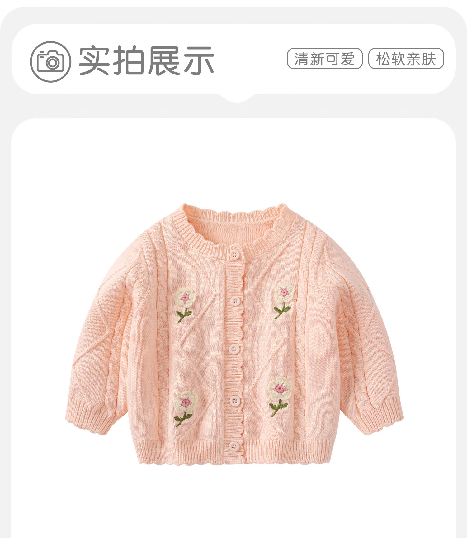 BORBOON B Girls' Jackets and Sweaters 2026 New Spring Clothes Baby Girls Fashionable Cardigan Sweater Tops Spring and Autumn Outing Clothes Pink 6772 73