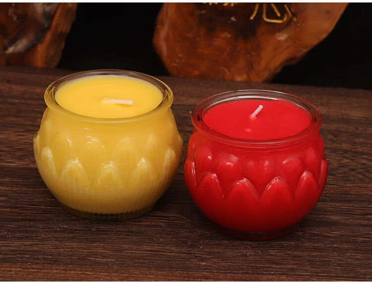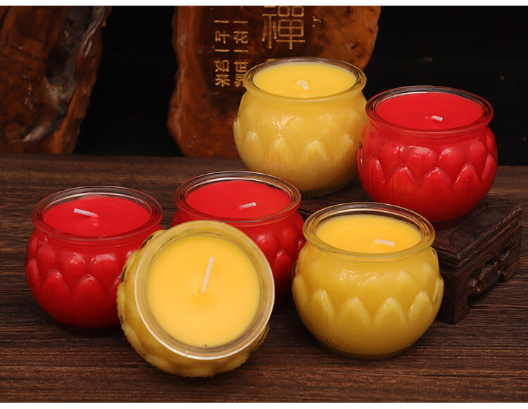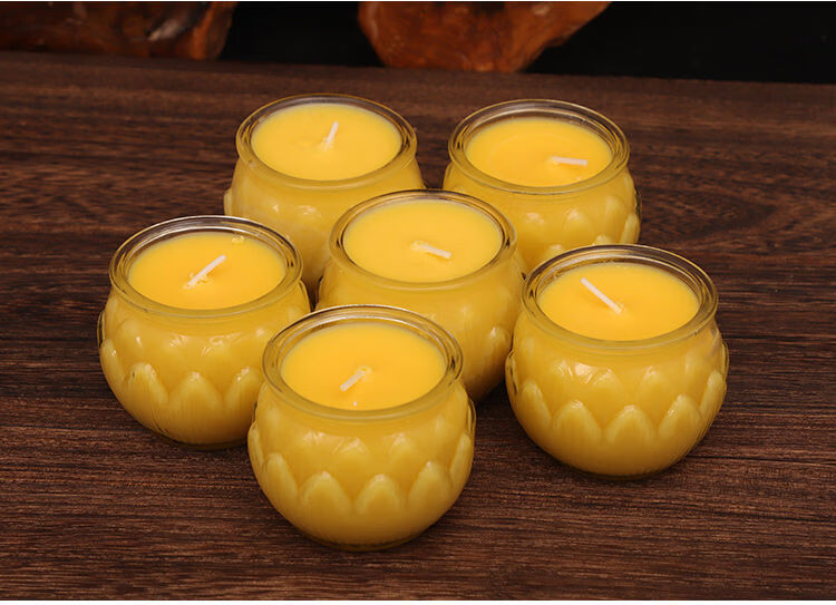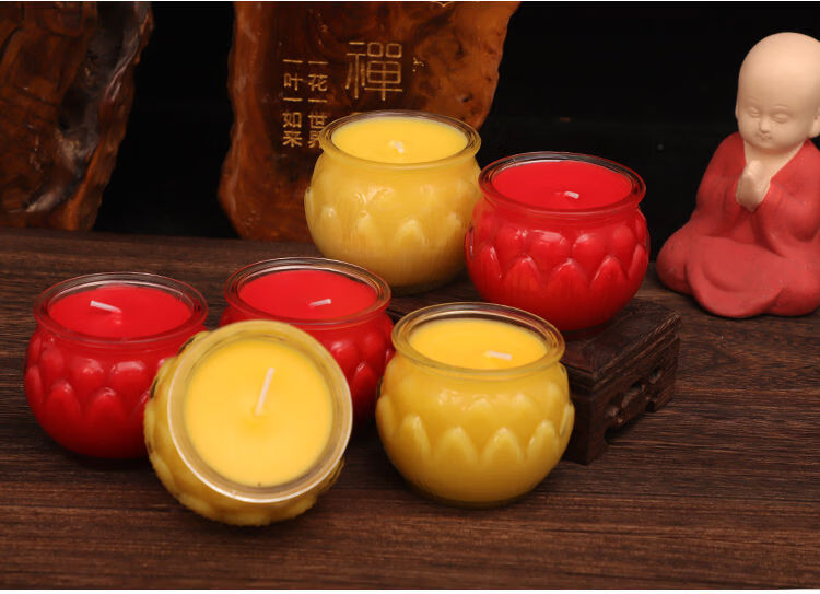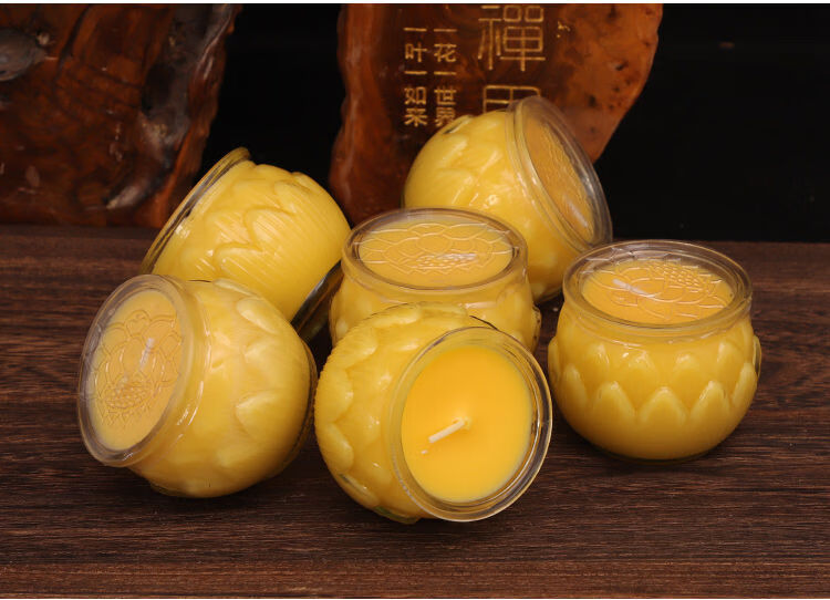 Chanting Fantasy Flat Mouth Lotus Butter Lamp 24-Hour Smokeless Candle for Lighting Lamp Pure Plant Butter Bucket Candle for Ever-Bright Lamp 24-Hour 6 Capsules Yellow Flower Style