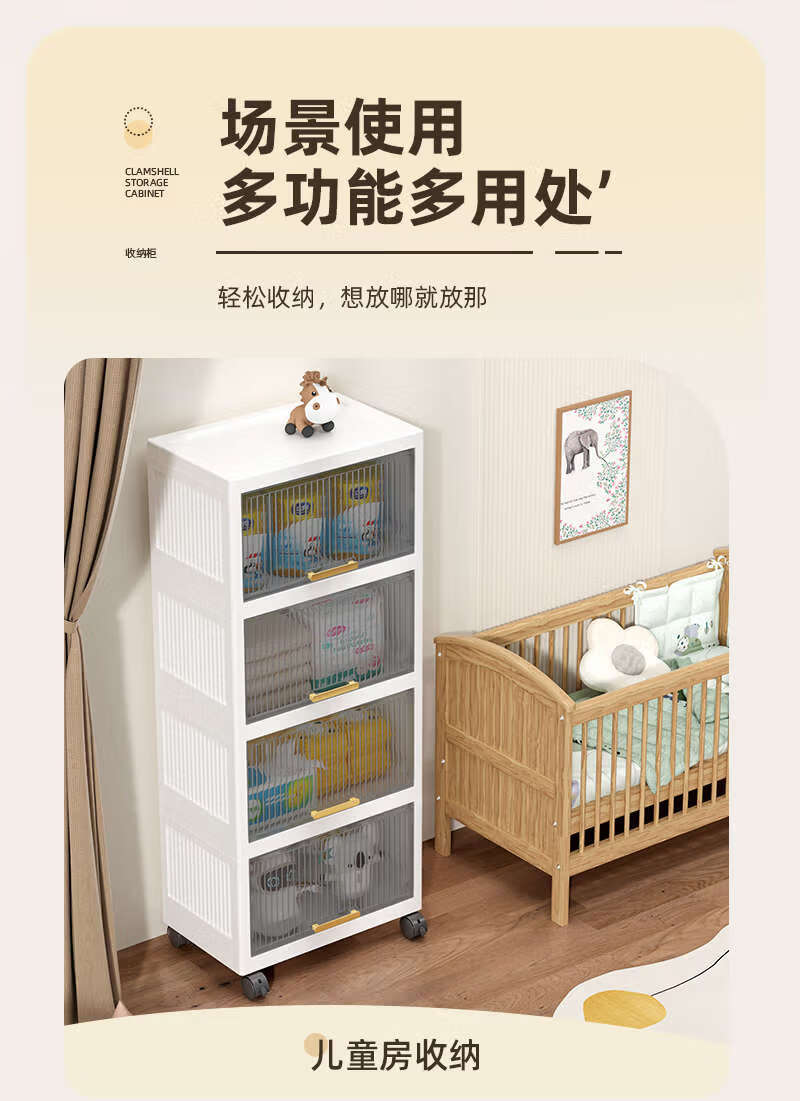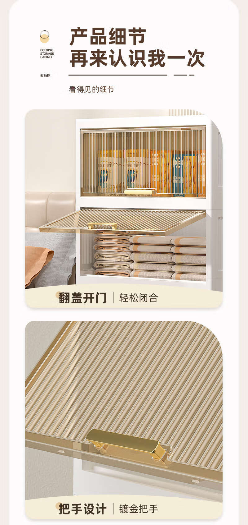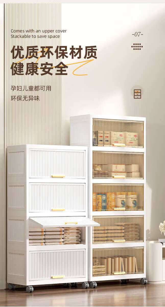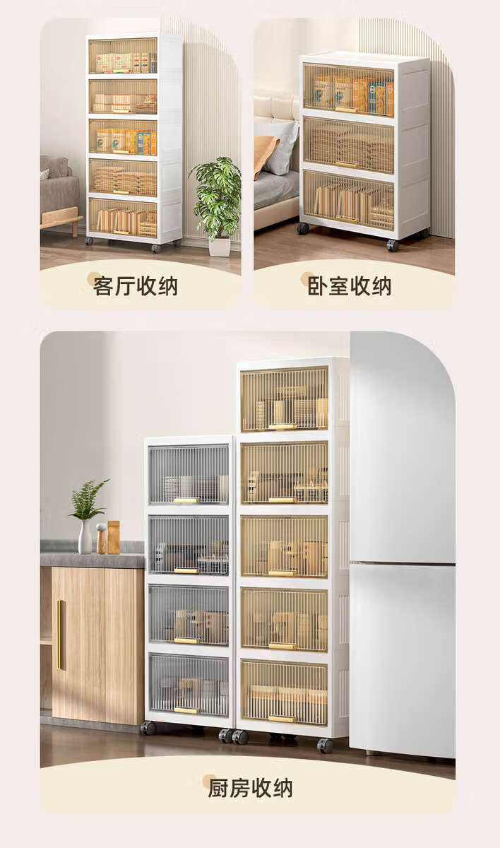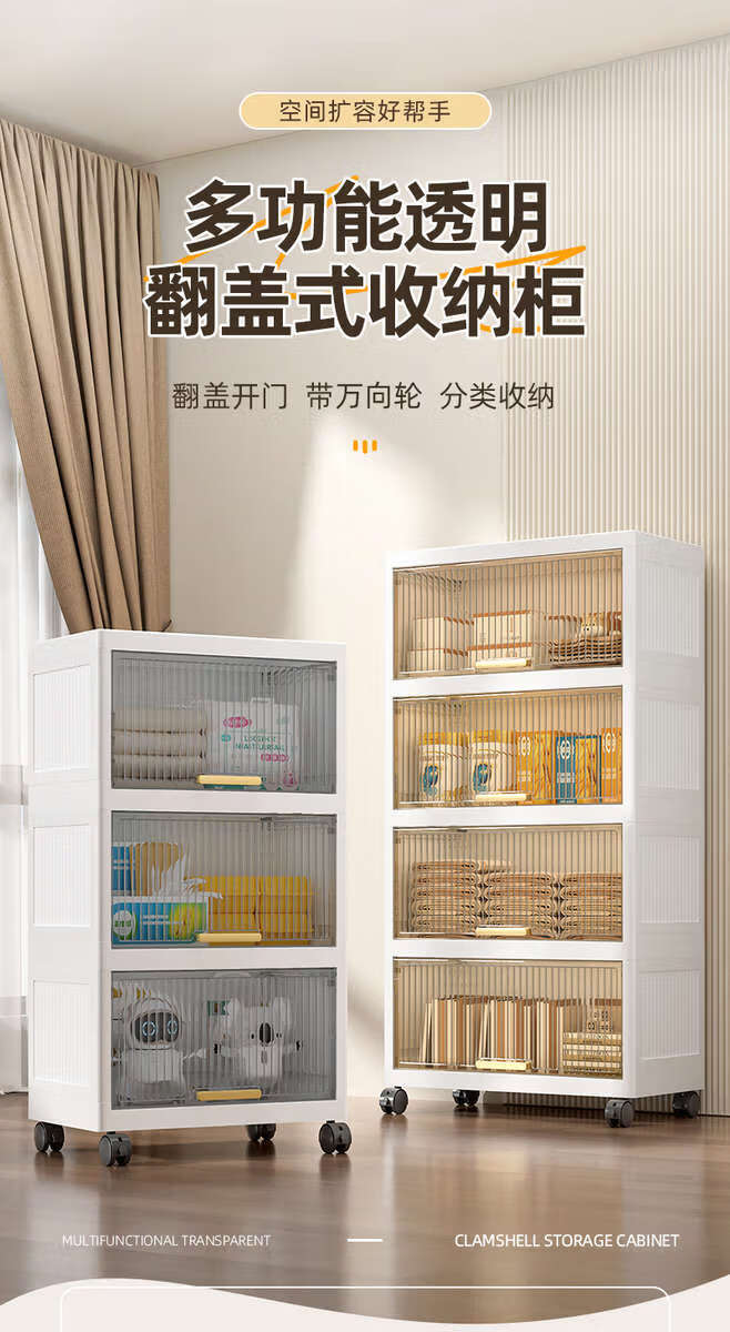 Yusenyi installation-free simple folding storage cabinet multi-layer snack wardrobe shoe cabinet storage box kitchen storage cabinet storage cabinet large light luxury transparent door 42cm style 4 layers