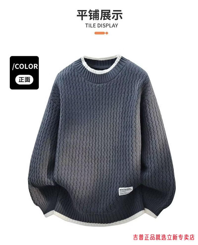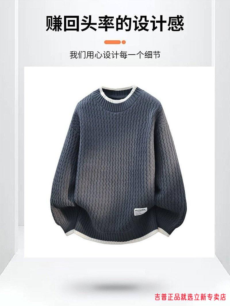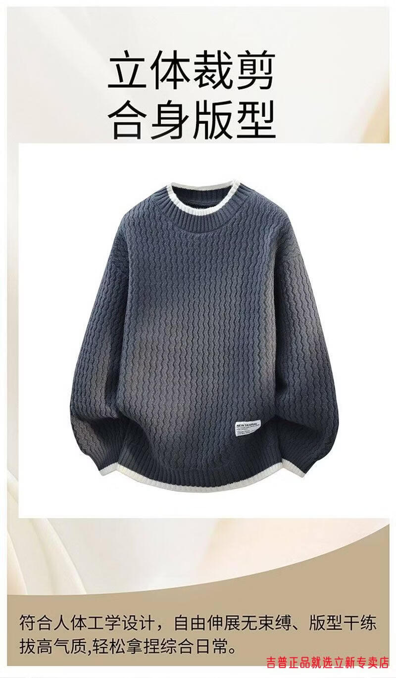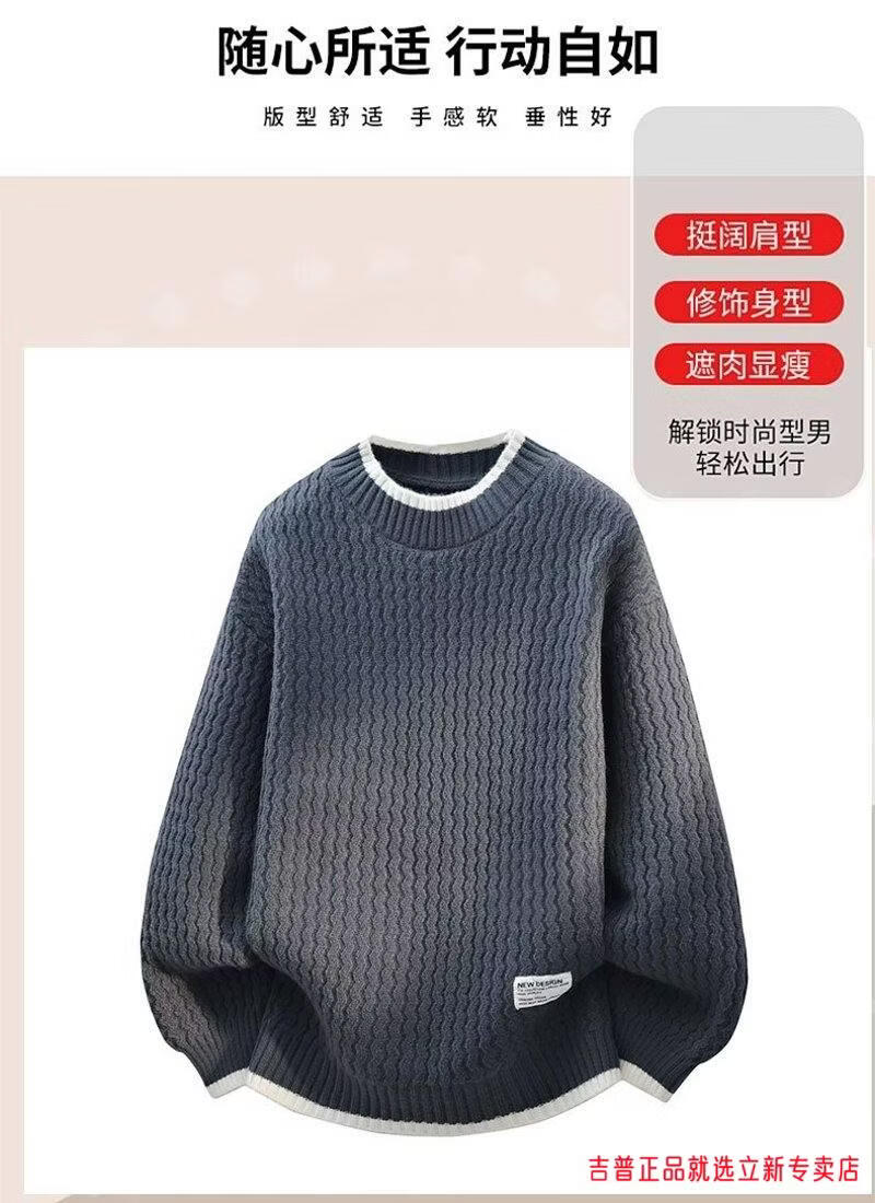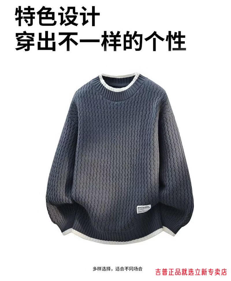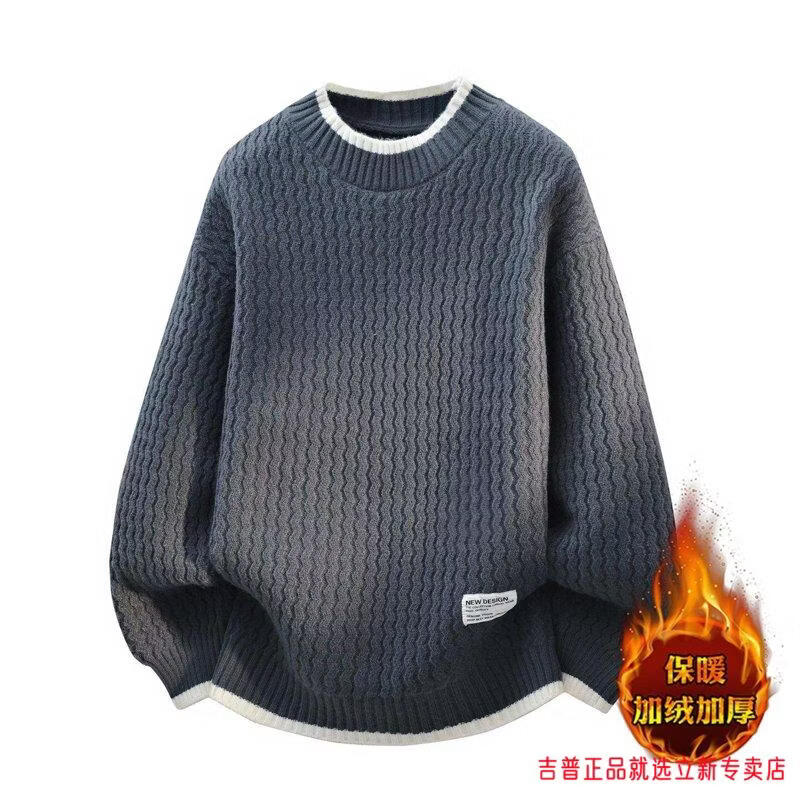 JEEP SPIRIT2026 new autumn and winter round neck knitted sweater for boys, teenagers, large size trendy tops, handsome clothes for students, plus size plus size men's clothing - gray M 170