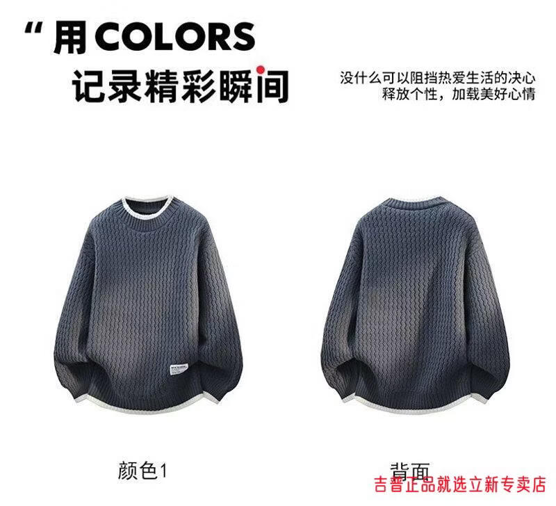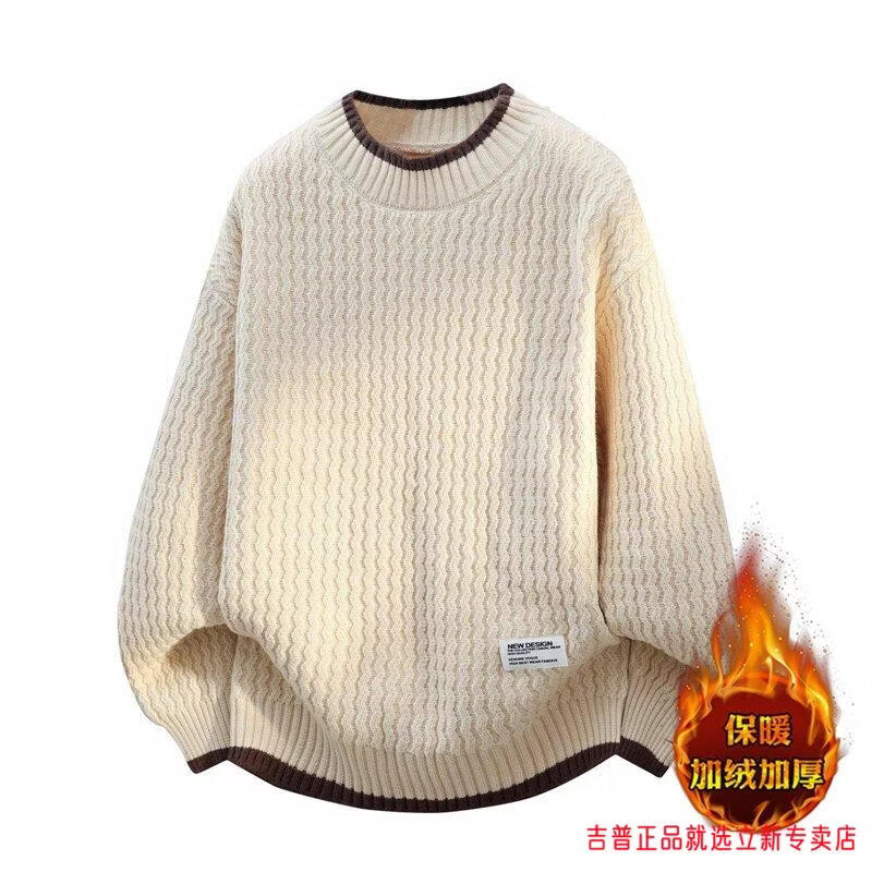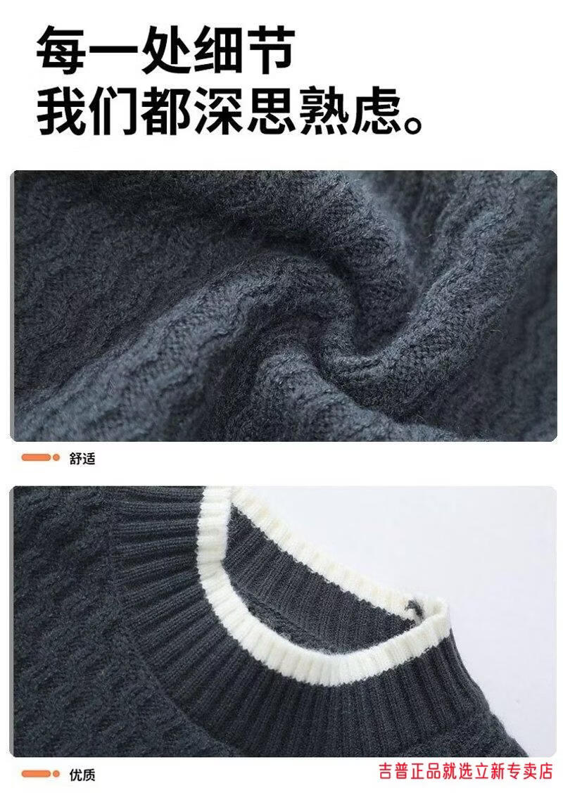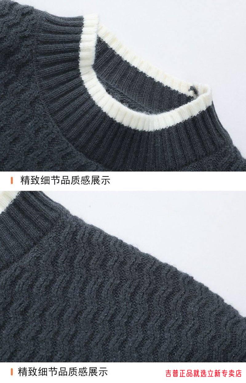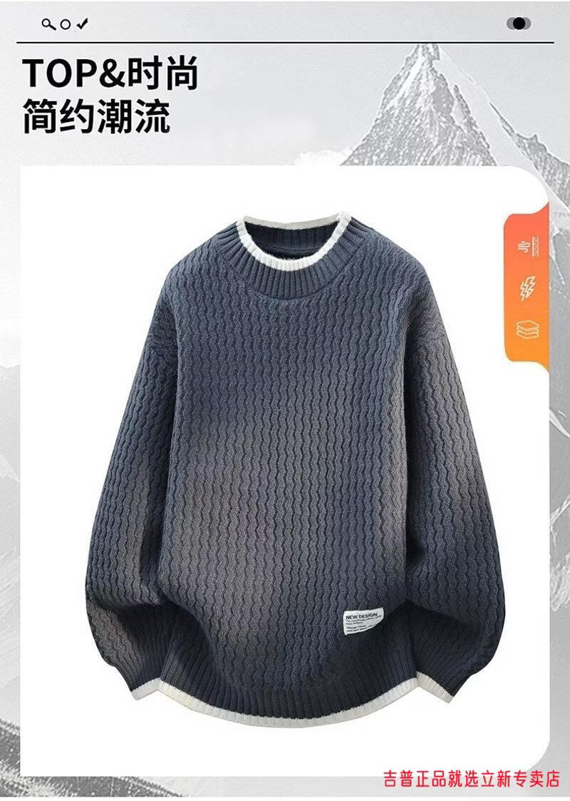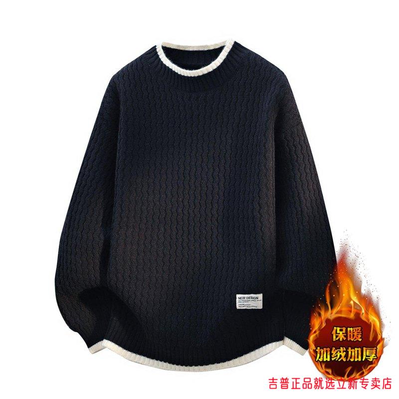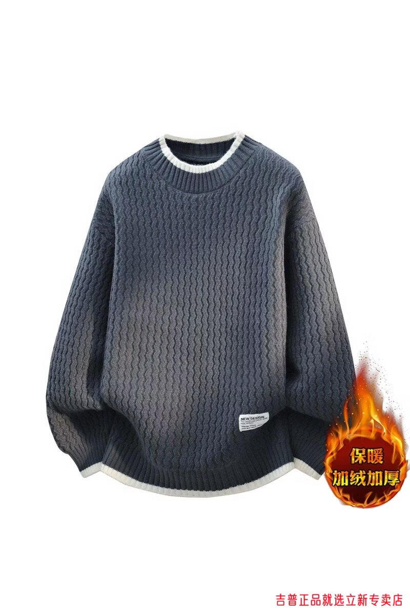 JEEP SPIRIT2026 new autumn and winter round neck knitted sweater for boys, teenagers, large size trendy tops, handsome clothes for students, plus size plus size men's clothing - gray M 170
