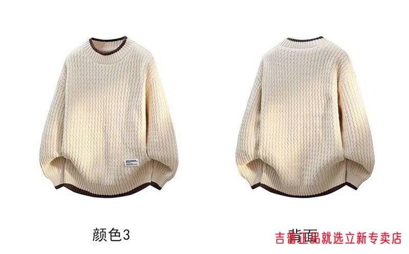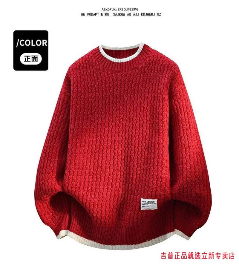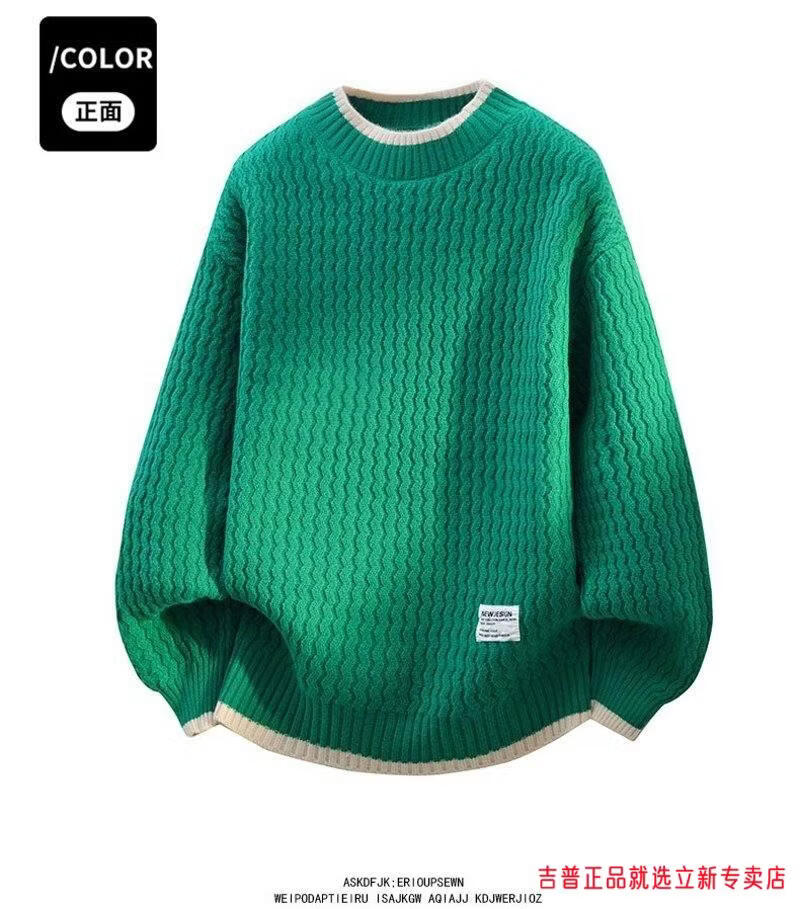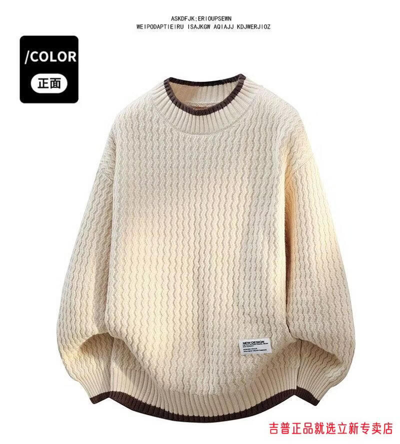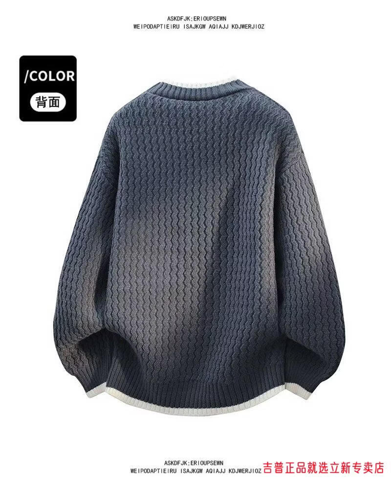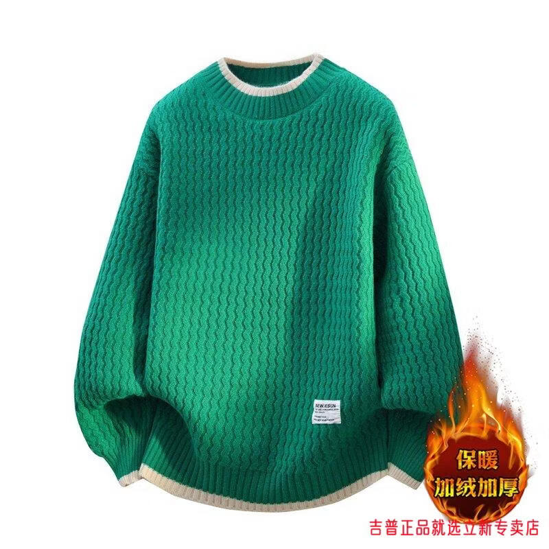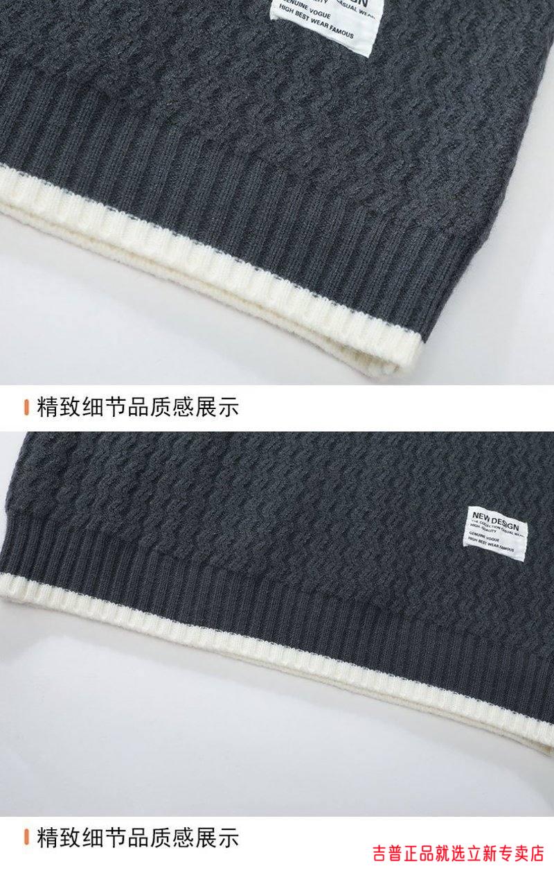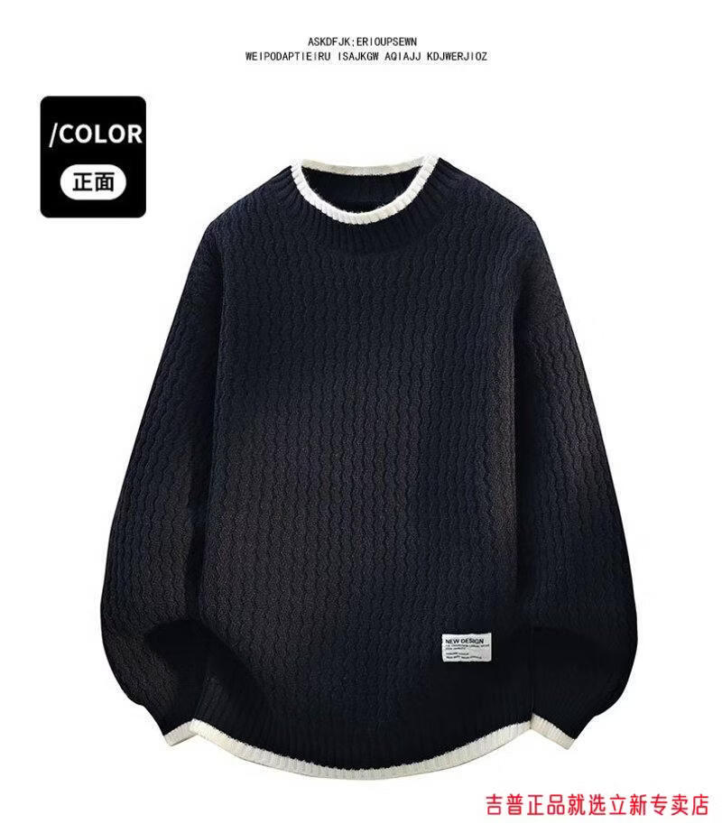 JEEP SPIRIT2026 new autumn and winter round neck knitted sweater for boys, teenagers, large size trendy tops, handsome clothes for students, plus size plus size men's clothing - gray M 170