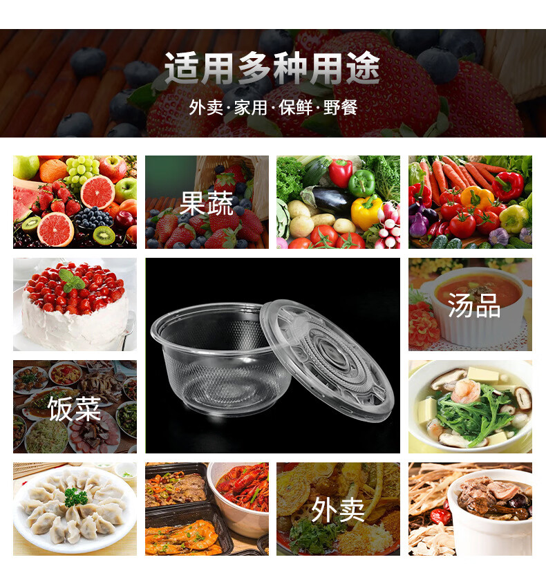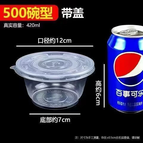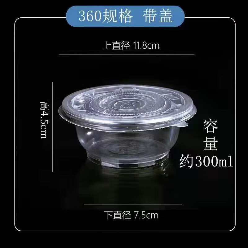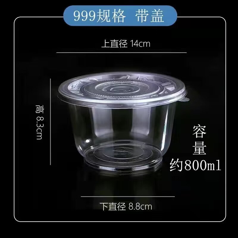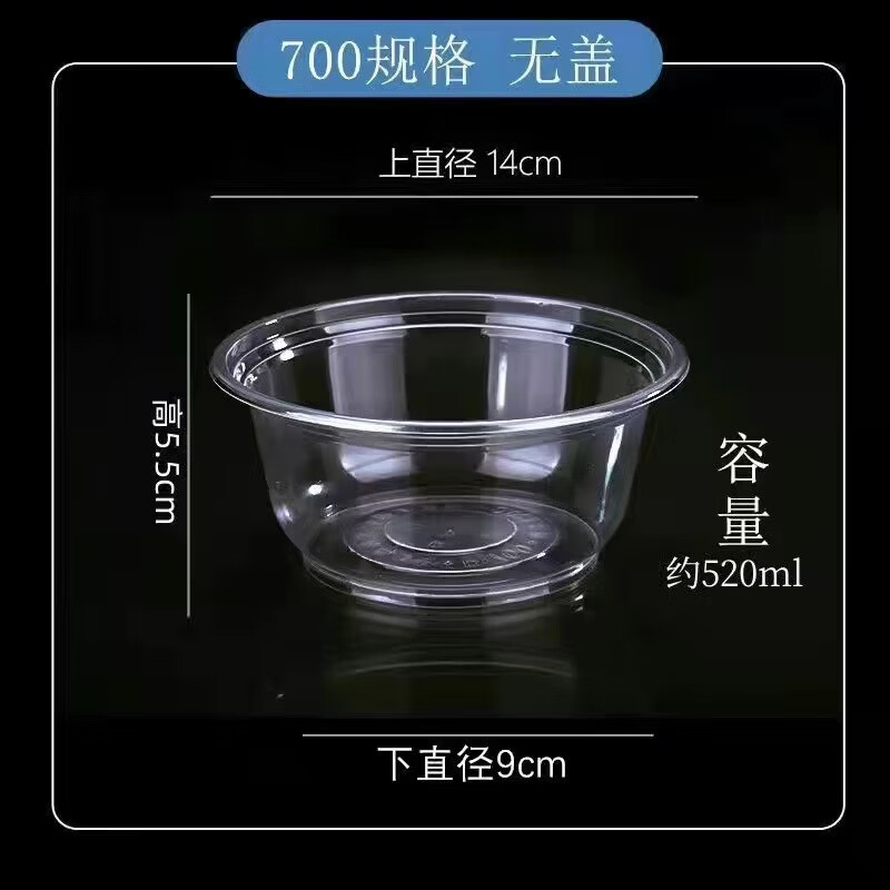 Shantou Lincun disposable bowl plastic bowl round thickened PP transparent environmentally friendly bowl ice powder fast food takeaway packaging bowl full box 700 round bowl without lid 100 pieces