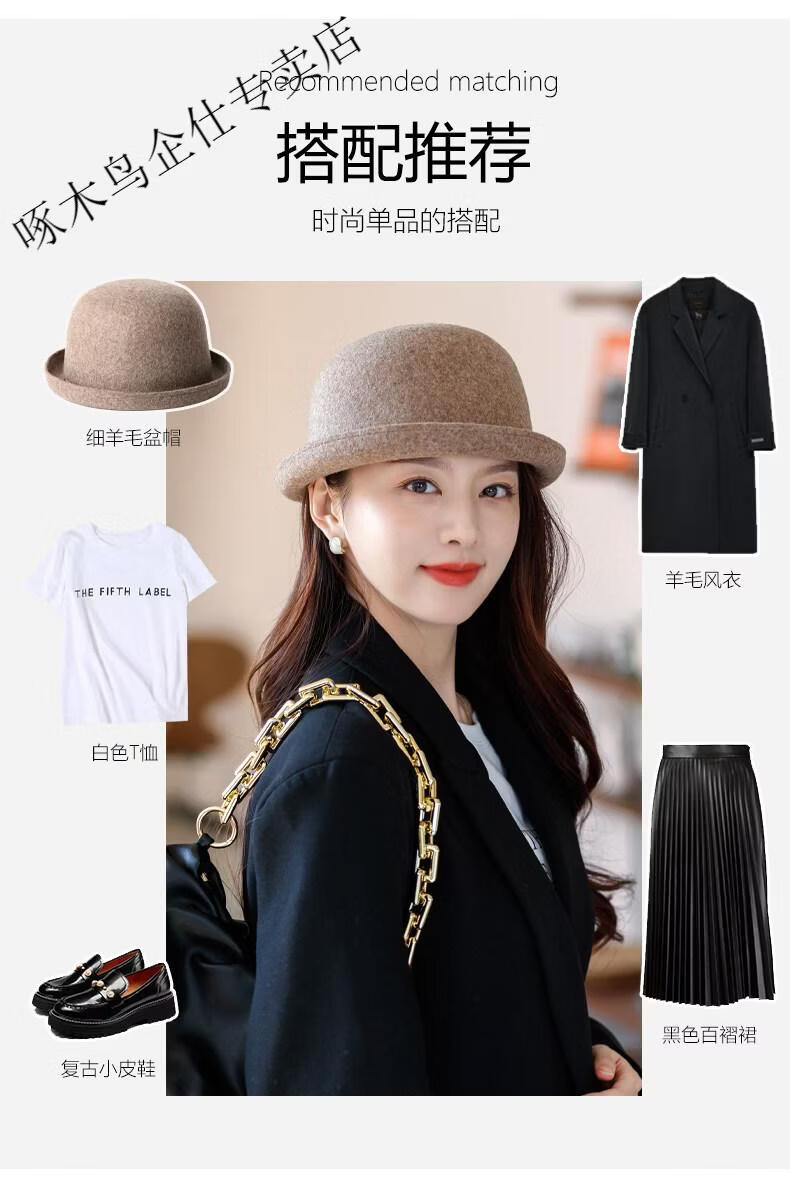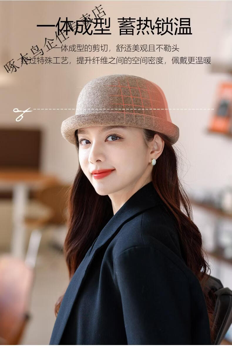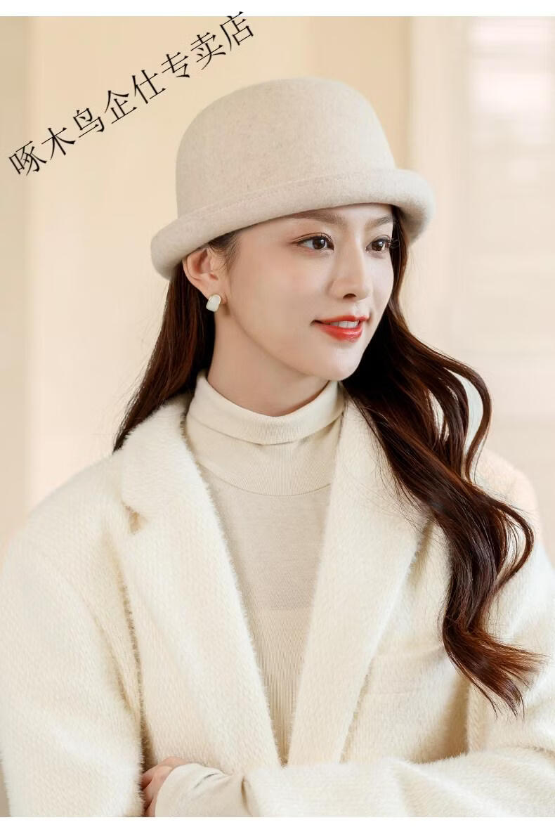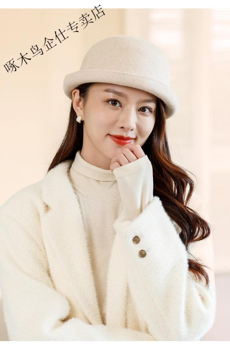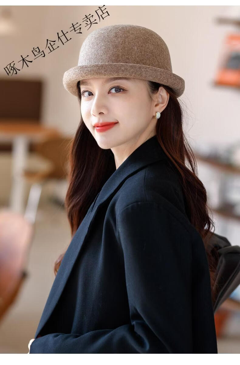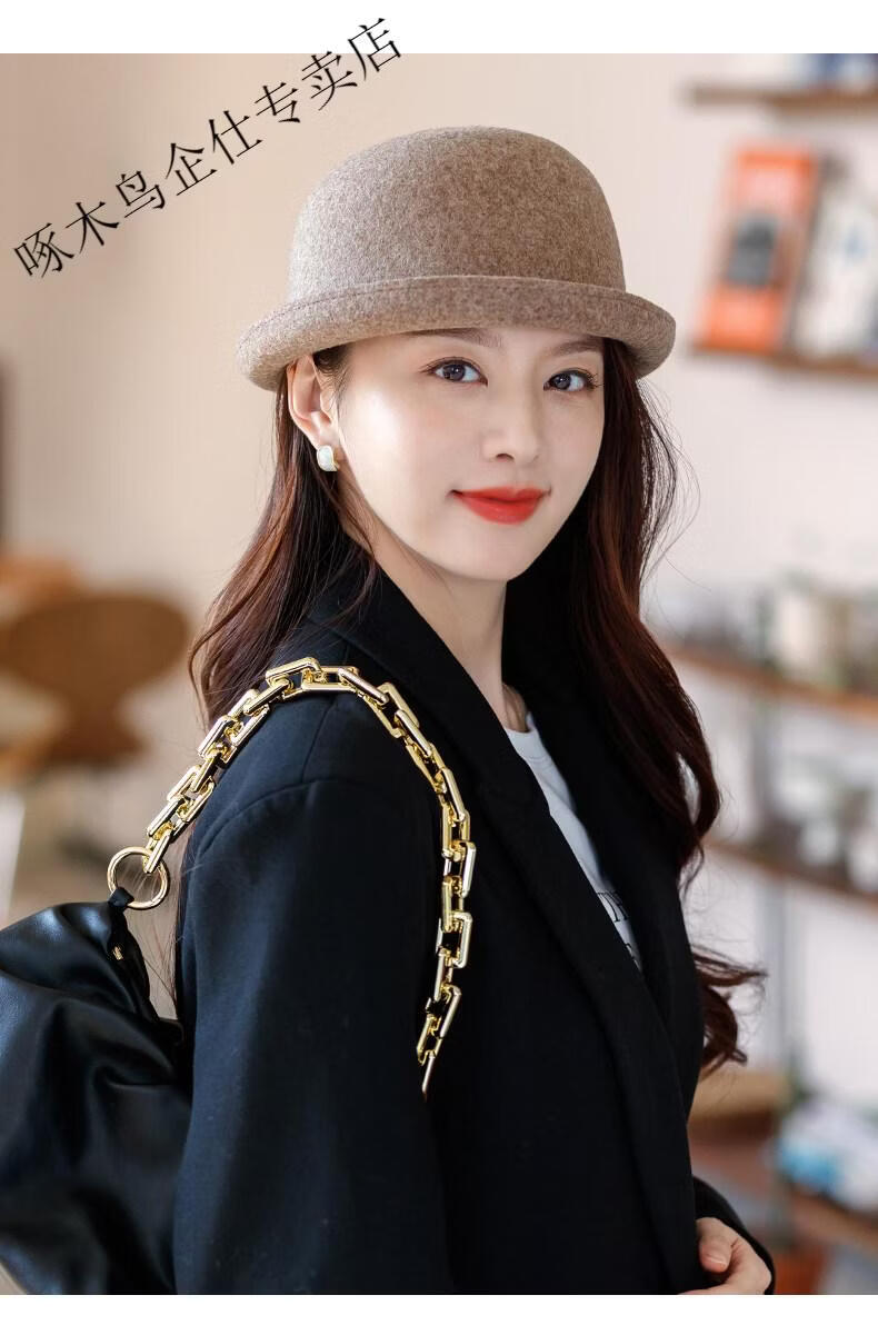 Woodpecker (TUCANO) Wool Fisherman Hat Women's 2025 New Autumn and Winter Cold Big Head Hat Fashion Trend Elegant * Khaki (High Quality - Wool) One Size for Adults (Adjustable Hat Circumference 55-58cm)