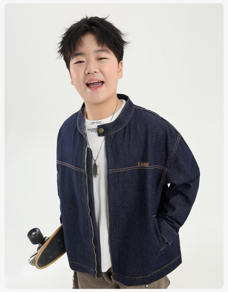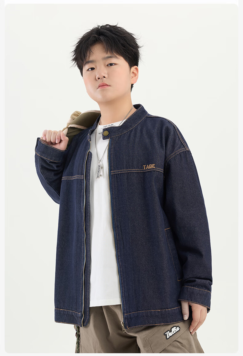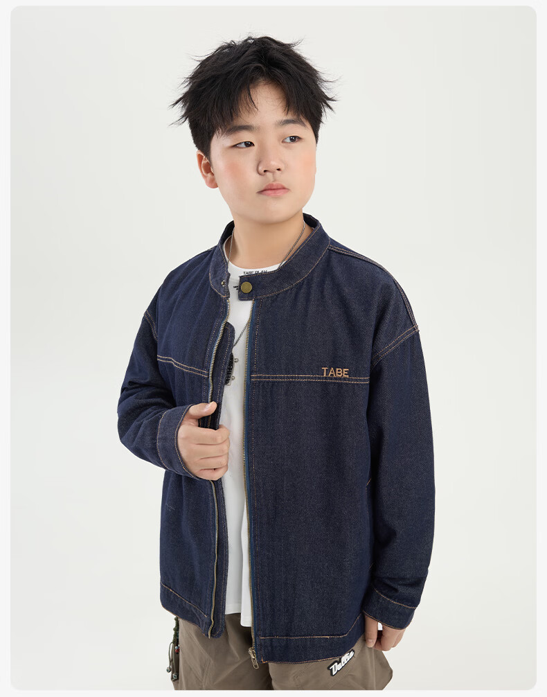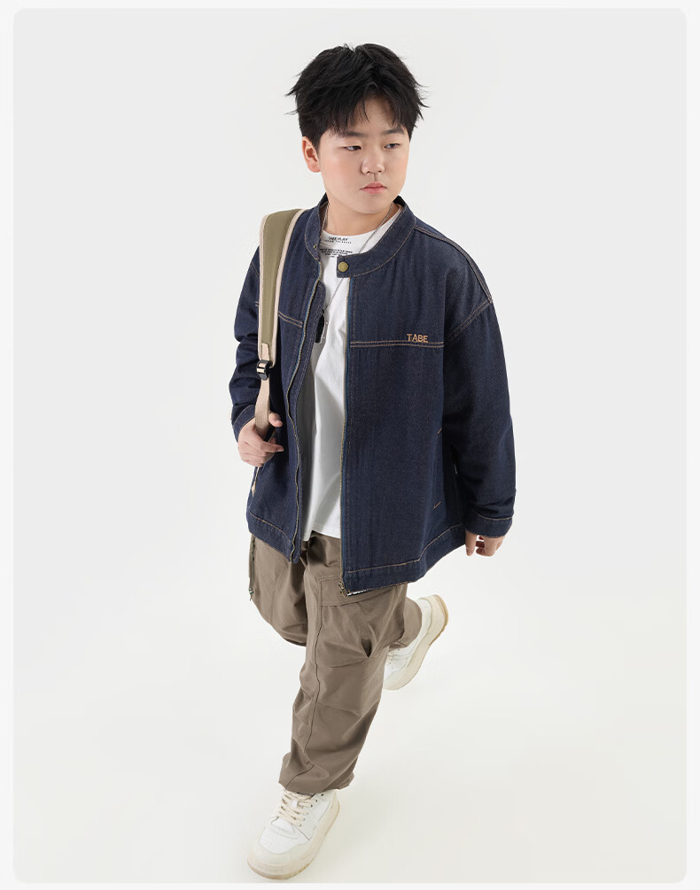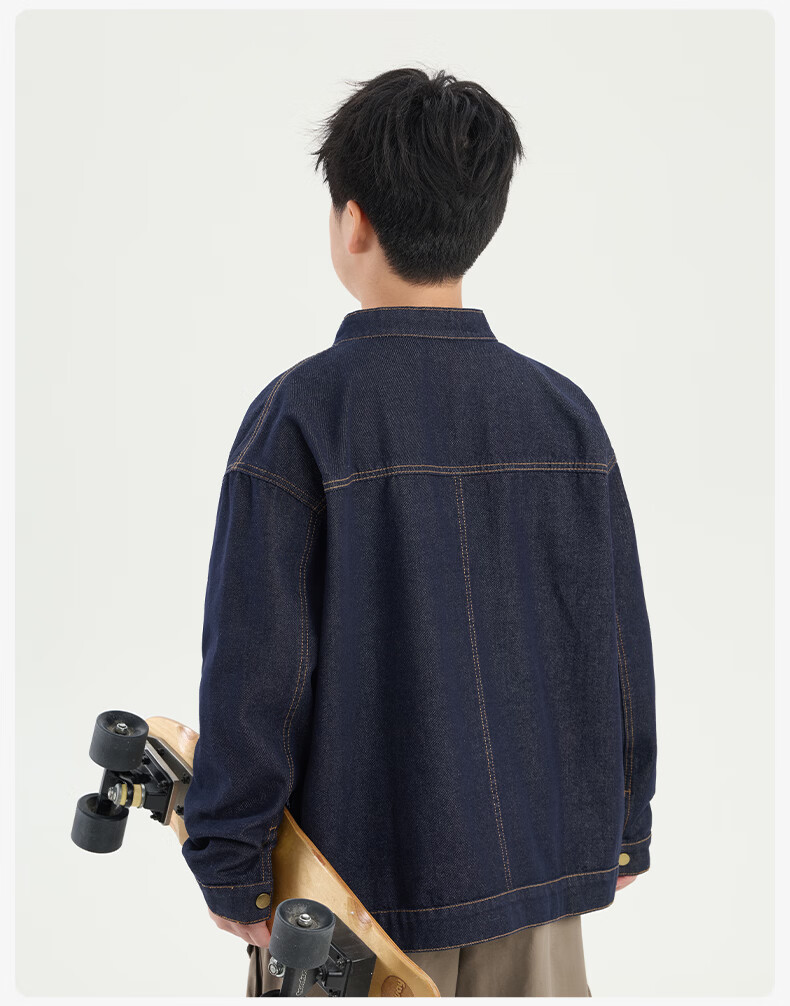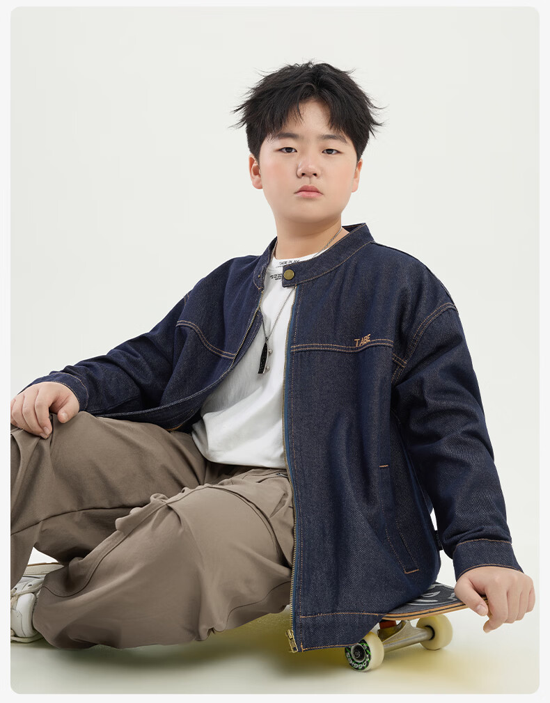Tony the Piggy Anti-fade Denim Shirt Fat Boy Shirt Spring Clothes Children's Shirt Medium Big Children Teenager 26 New Style Plaid Two-Color Denim Blue 140 Recommended 130-145 high, 70-90 Jin Jin is equal to 0.5 kg