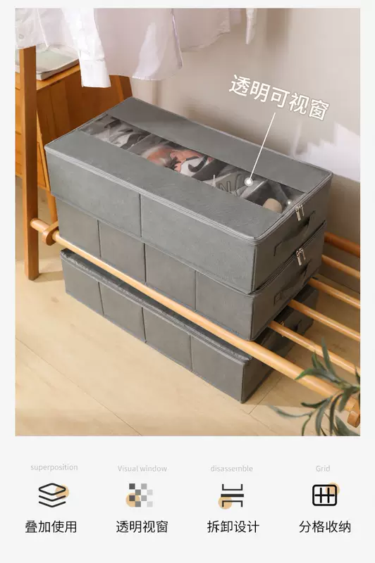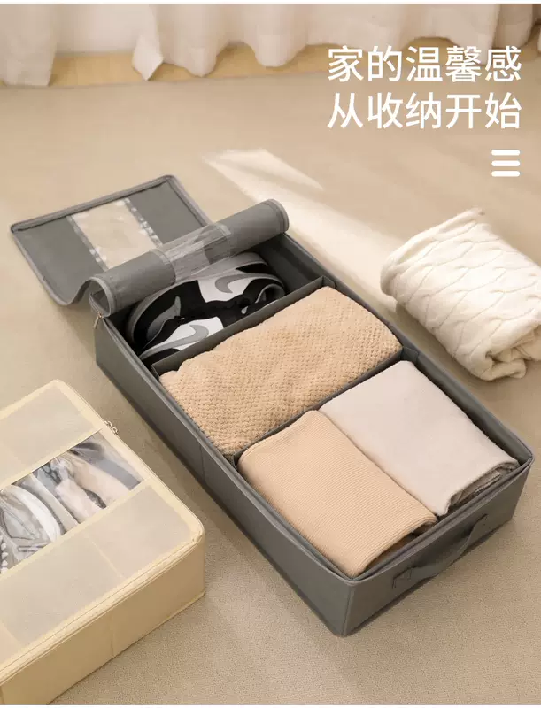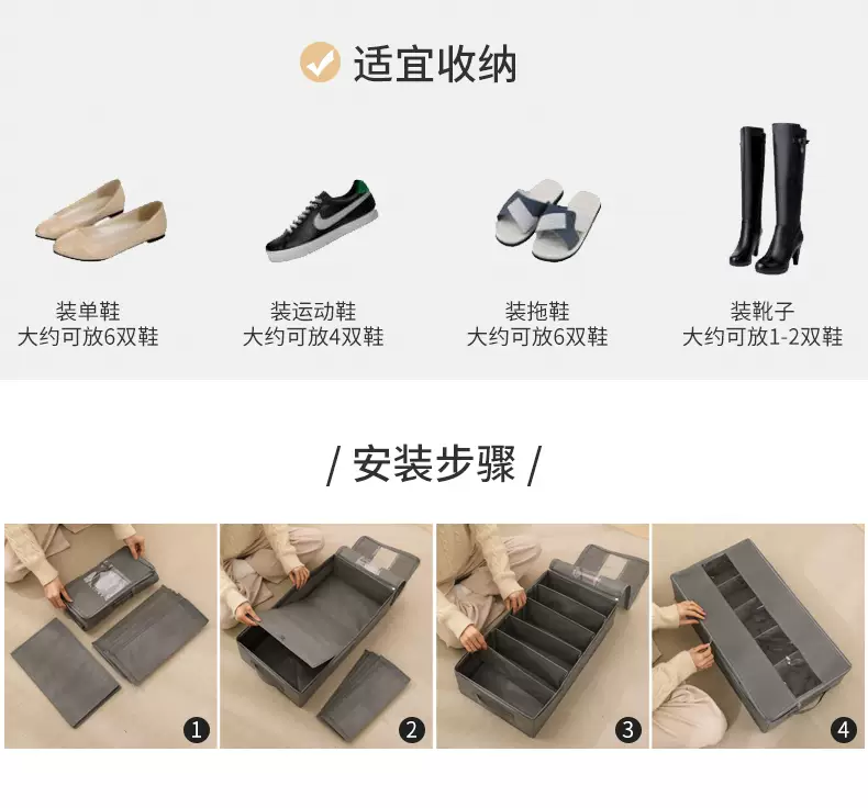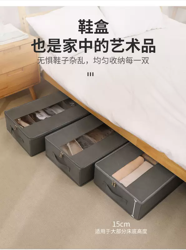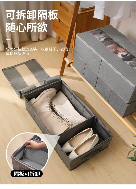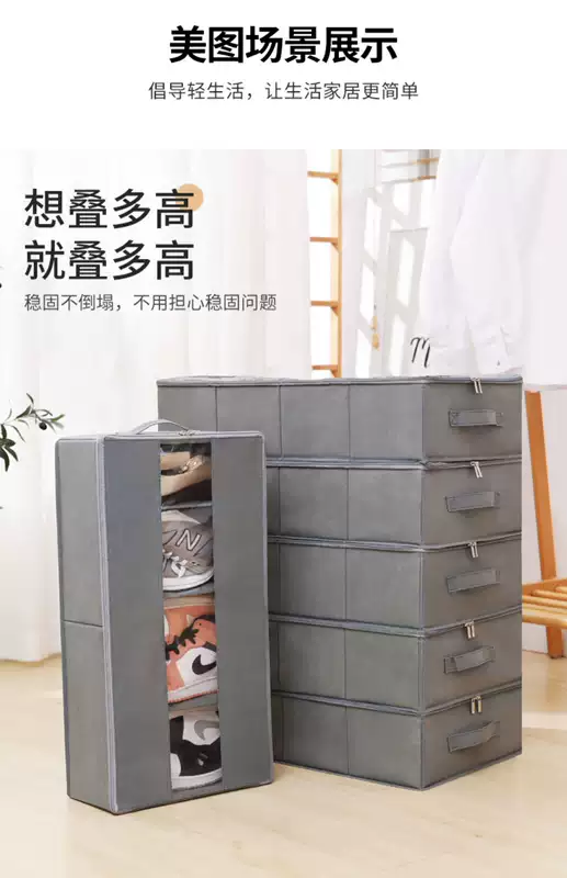 Yusenyi space storage box, home shoe-saving folding shoe cabinet under the bed, college dormitory artifact dust-proof sneaker storage box (beige 3 pieces) 5 partitions can be freely adjusted and stacked. Approximately 1215 pairs of sports shoes 60x33x14cm 60 pcs 60x33x14cm