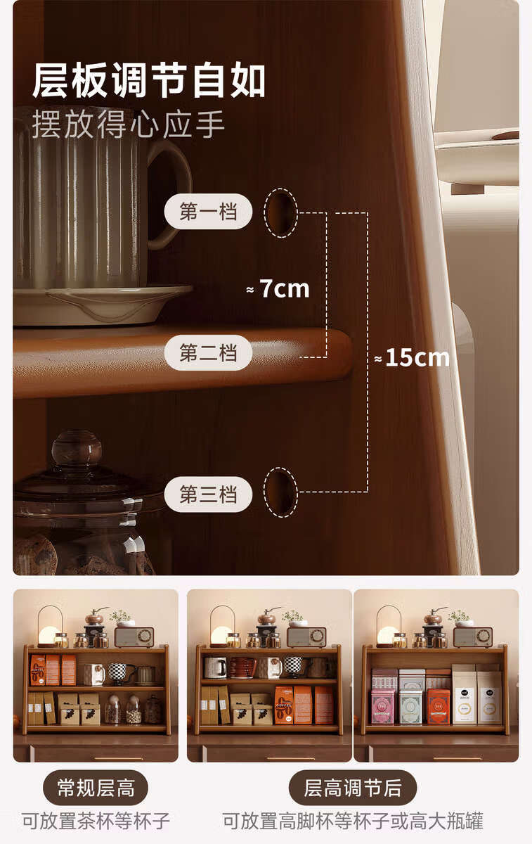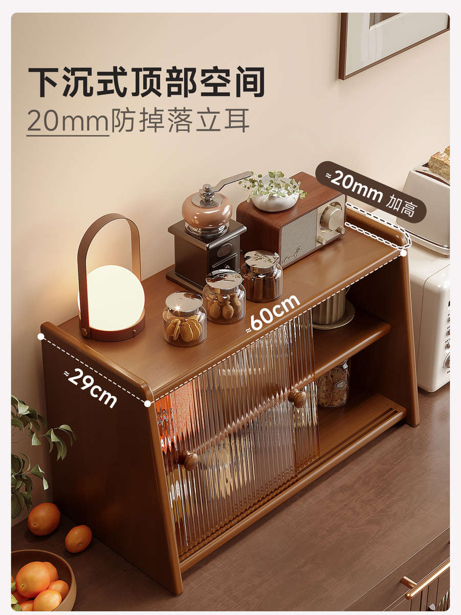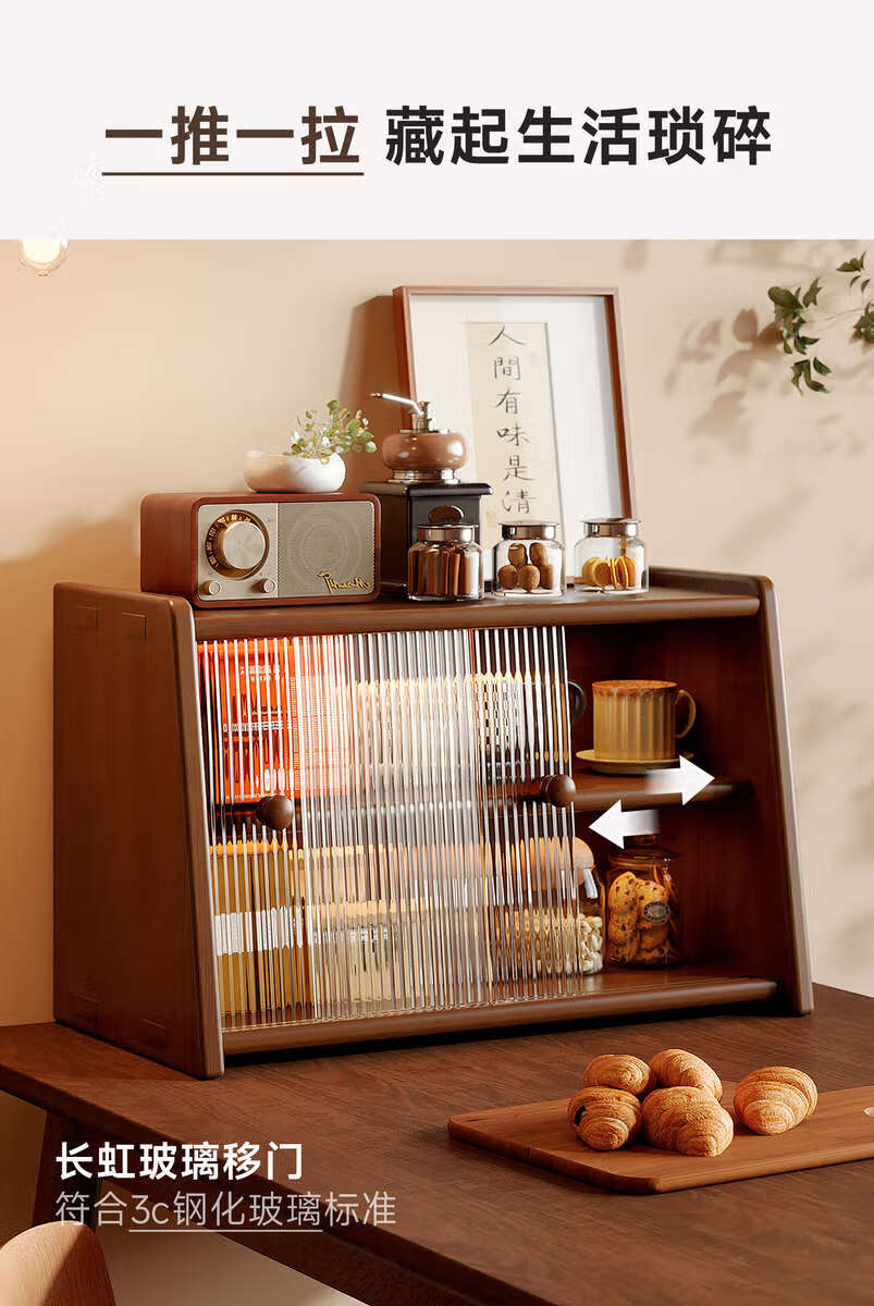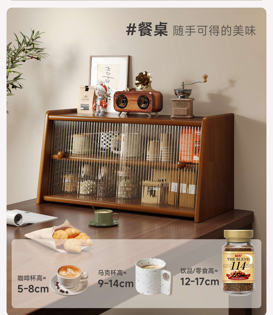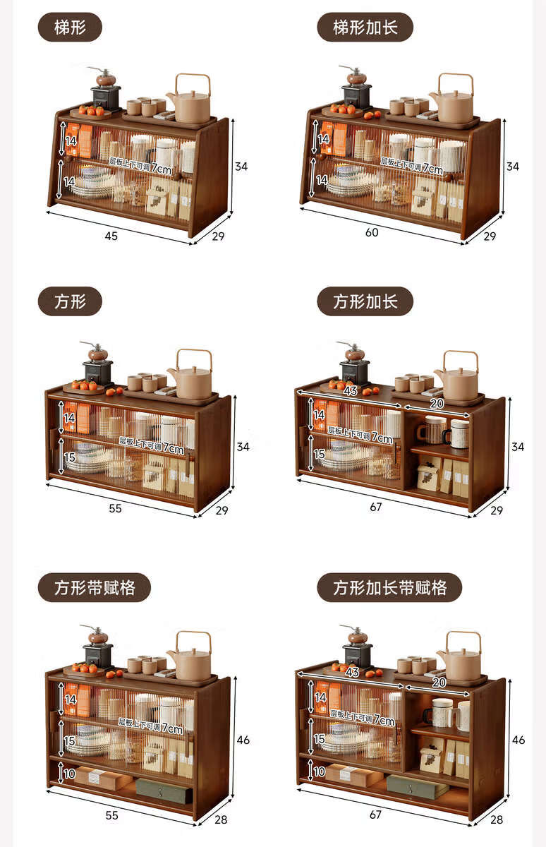 He Jiagong wooden cup holder desktop dustproof water cup tea cup storage rack cup dining table sideboard cup storage rack top model four-layer heightened black walnut color 67cm tempered glass full
