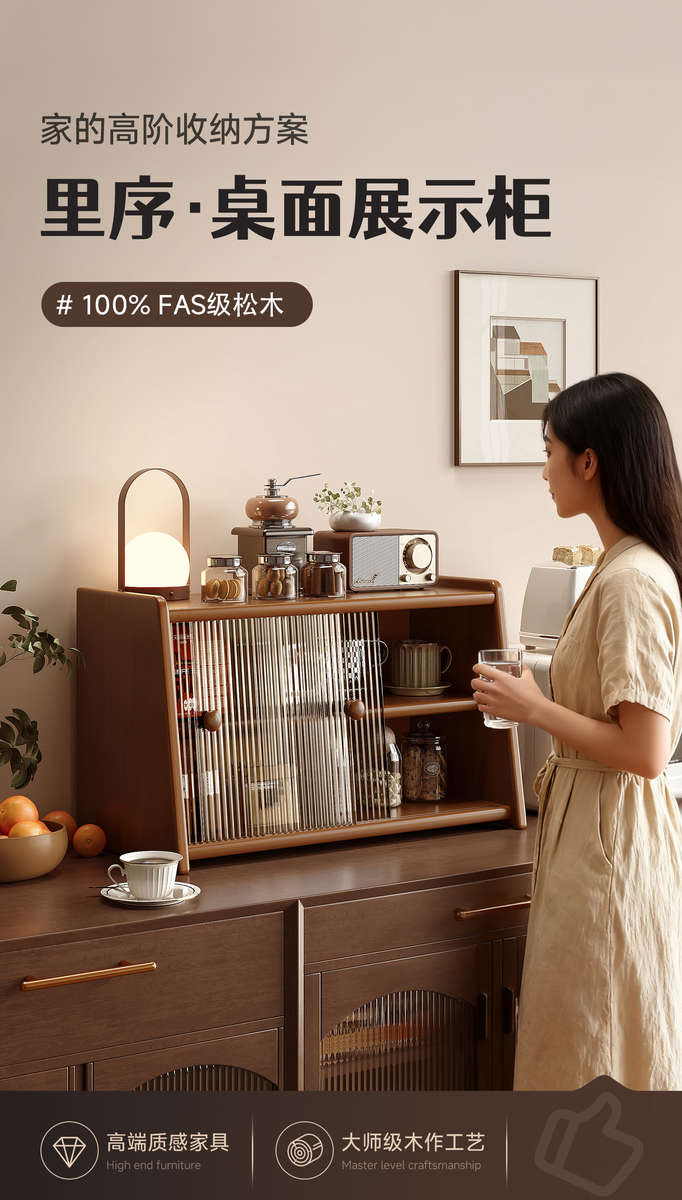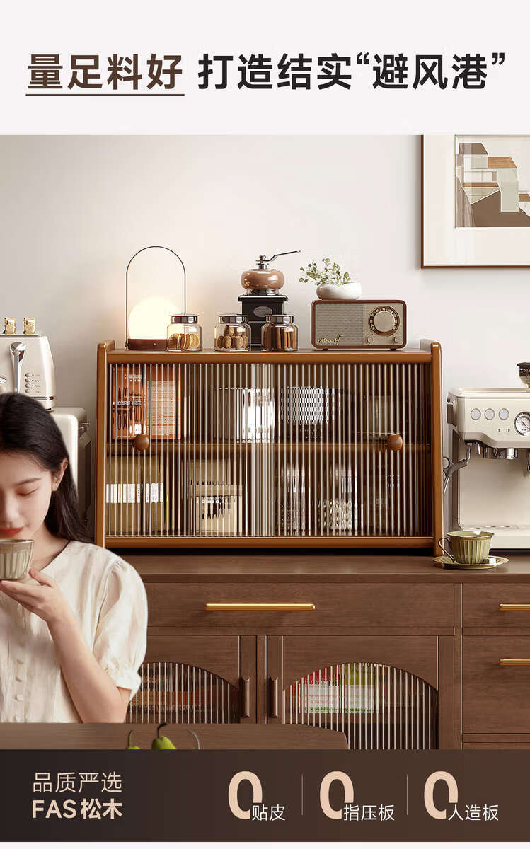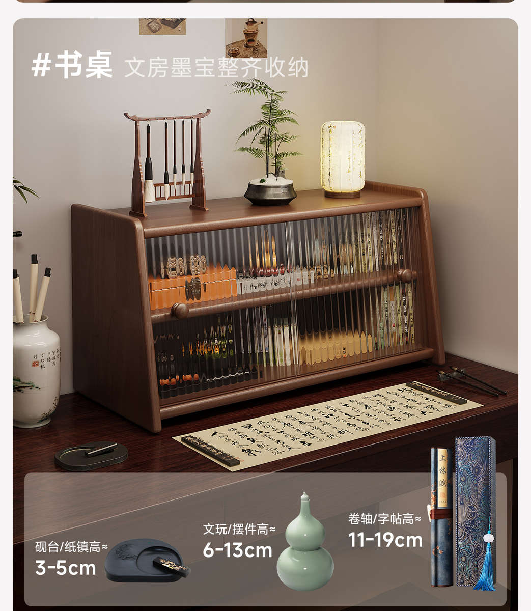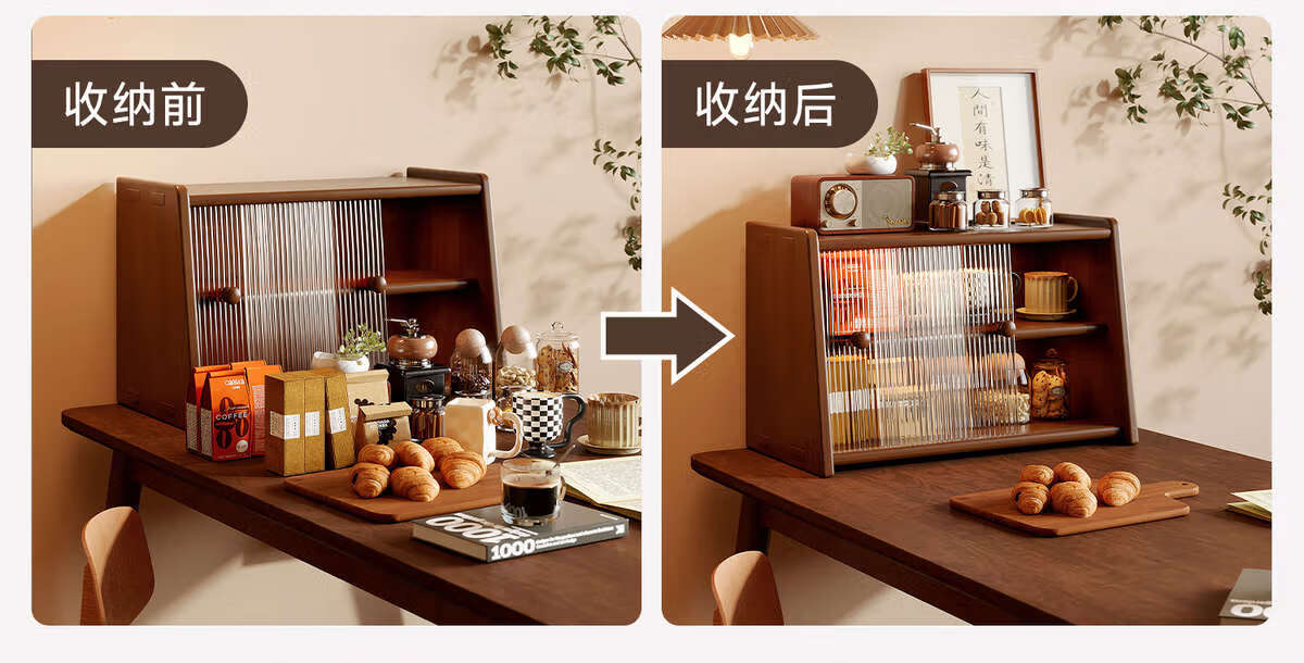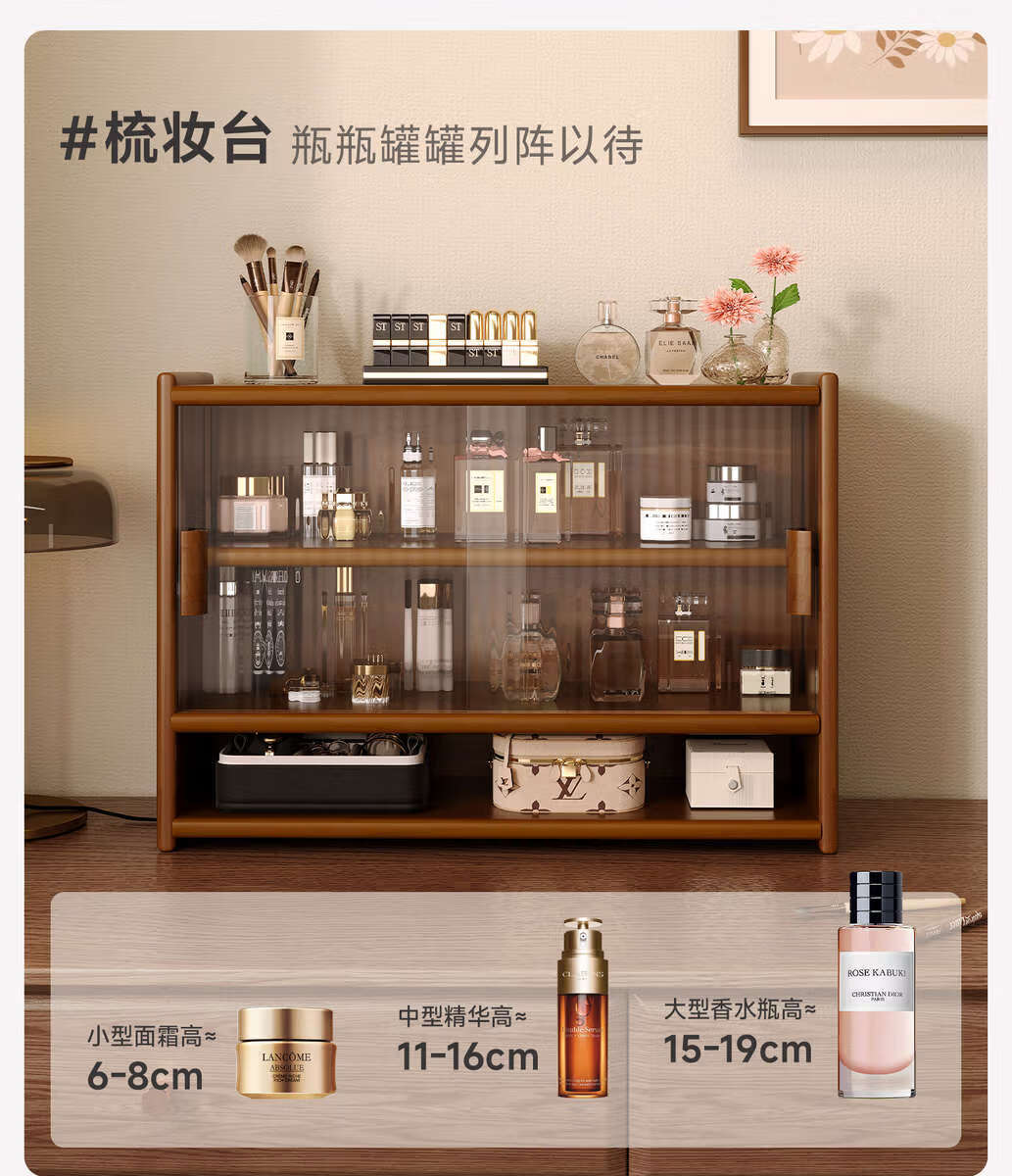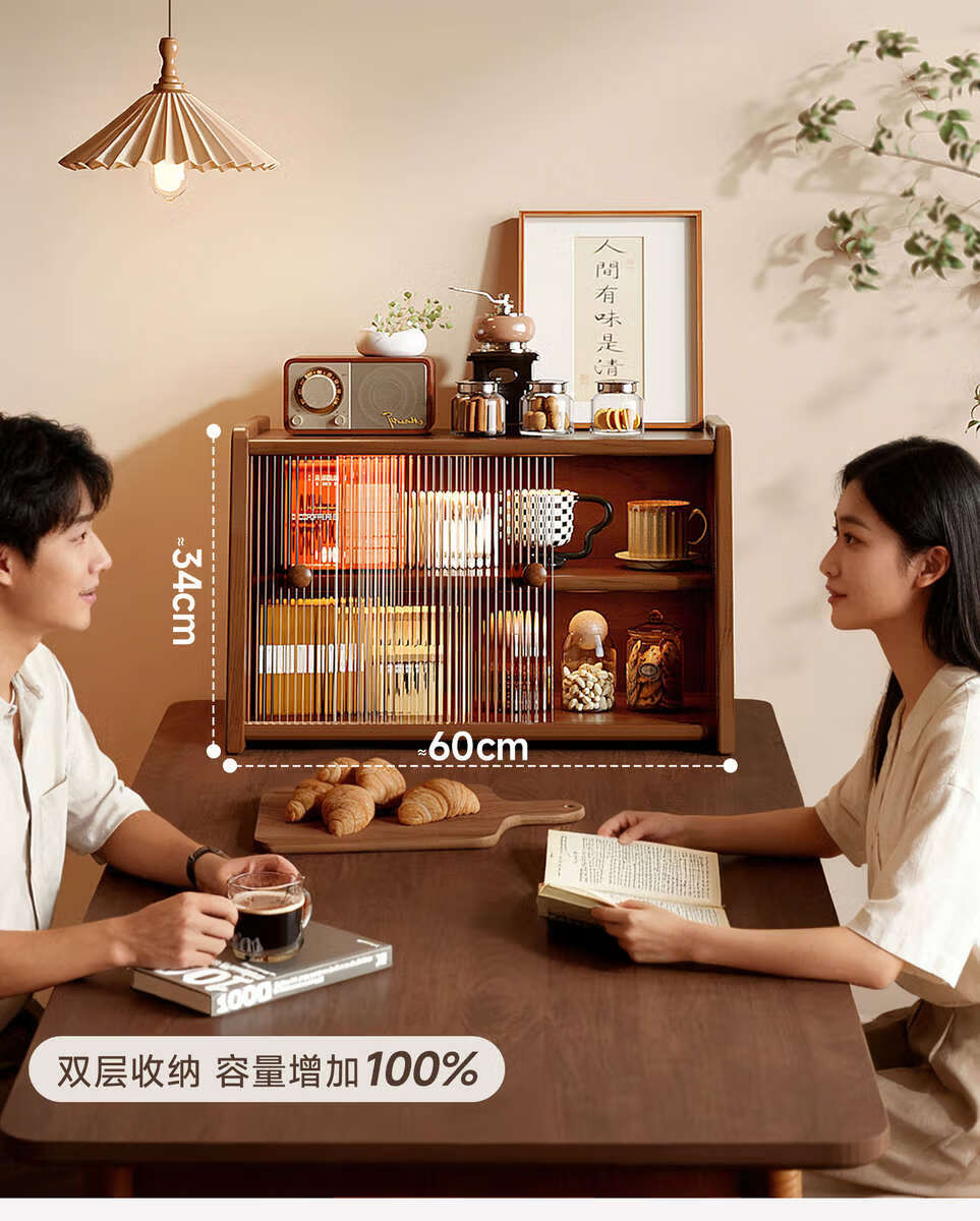 He Jiagong wooden cup holder desktop dustproof water cup tea cup storage rack cup dining table sideboard cup storage rack top model four-layer heightened black walnut color 67cm tempered glass full