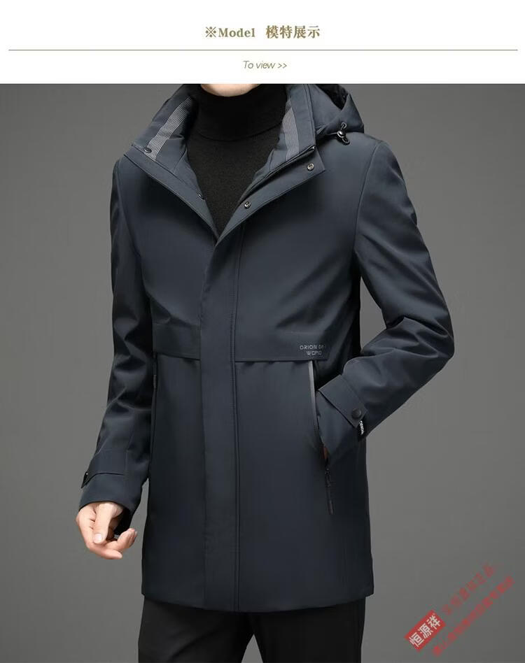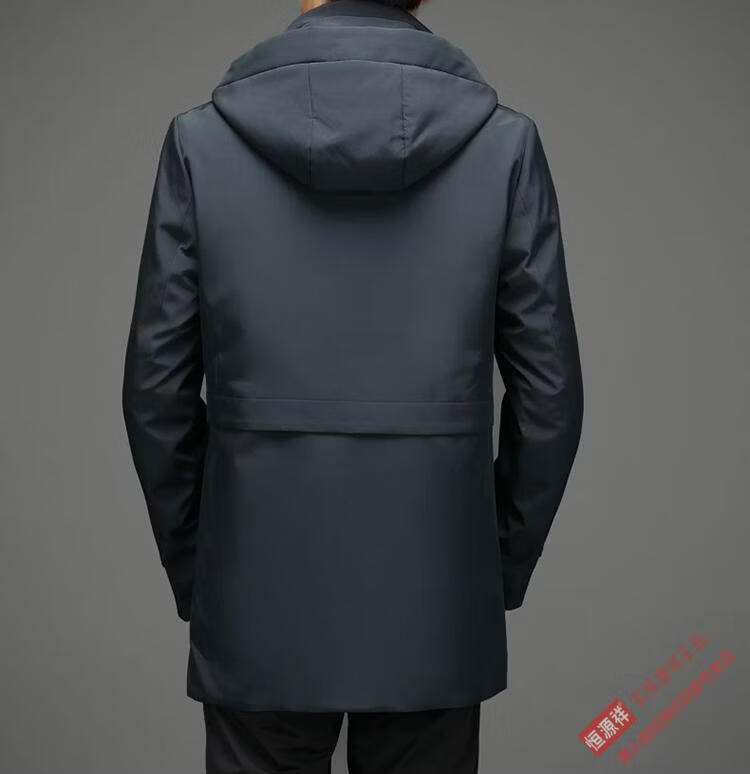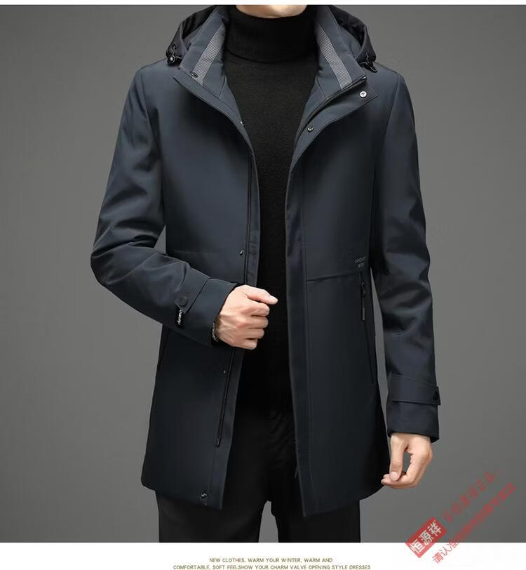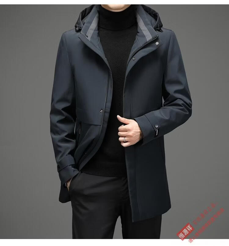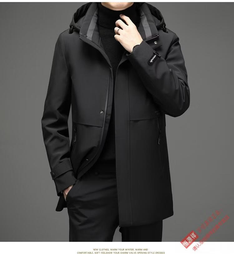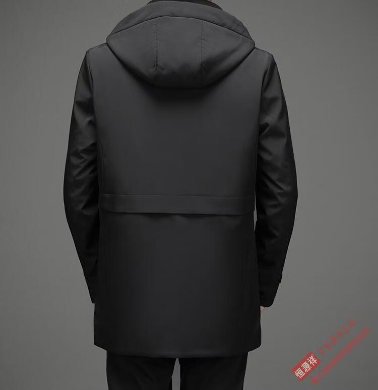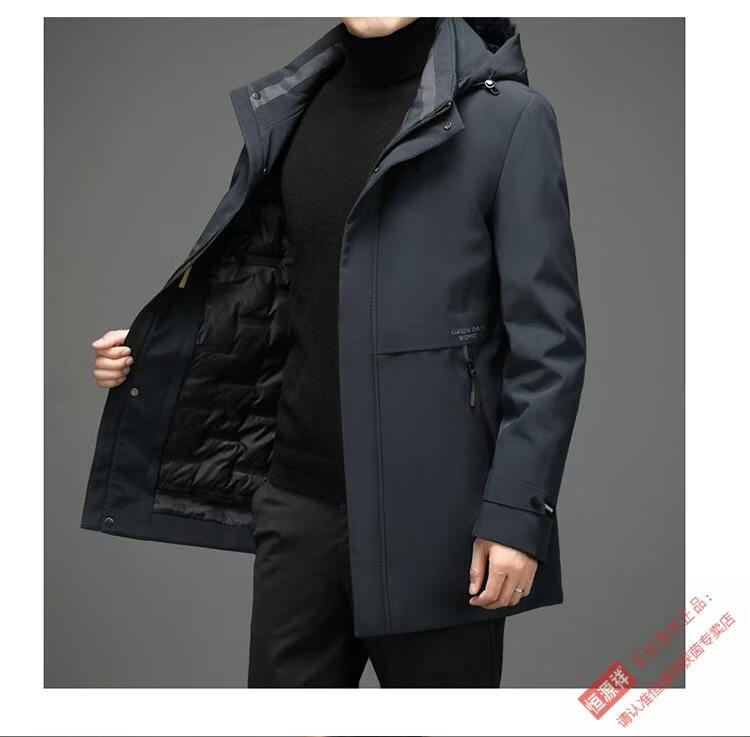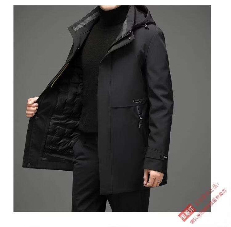 Hengyuanxiang mid-length men's winter down jacket 90% white duck down casual fashion business jacket autumn and winter hooded thickened black L 175