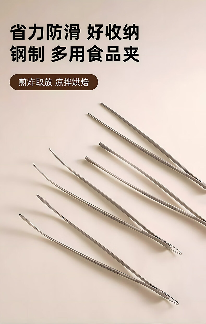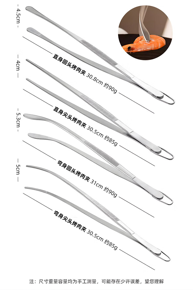 SMVP Germany imported quality stainless steel barbecue clips outdoor camping barbecue clips non-slip home cooking self-service clips straight barbecue clips 30cm_pointed head