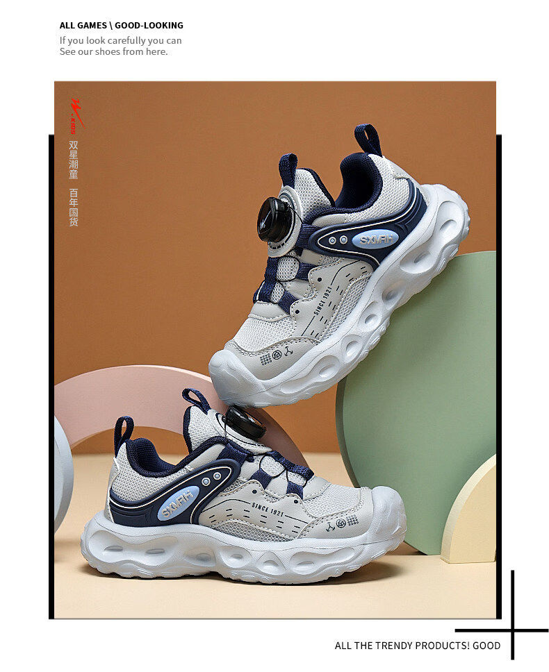 Double Star (shuangxing) Double Star Children's Shoes Boys' Shoes 2026 Spring New Mesh Breathable Boys Elementary School Light Children's Sports Shoes 90289 Elegant Gray Blue (Mesh Breathable) 28 Size 28 The inner length of the shoe is about 18cm