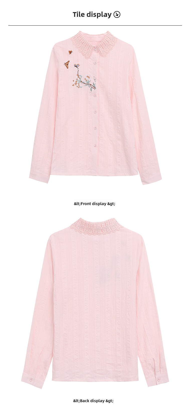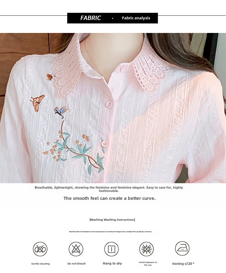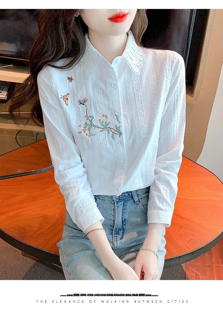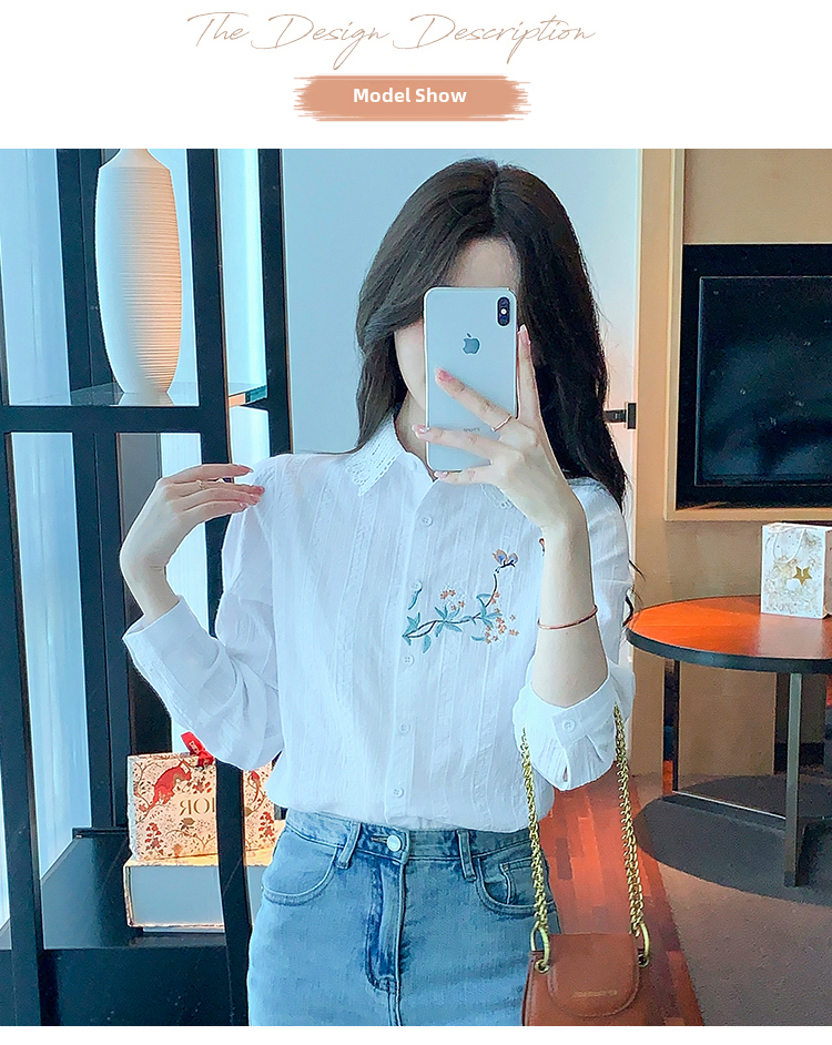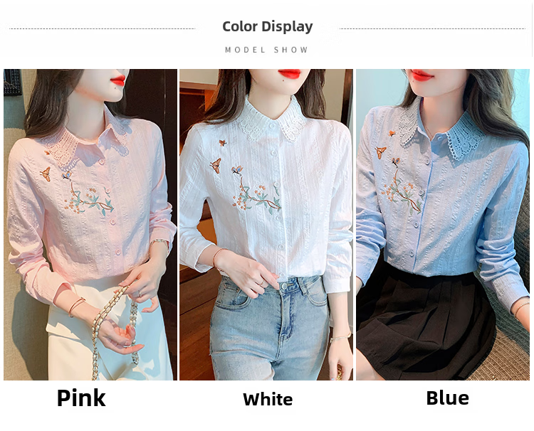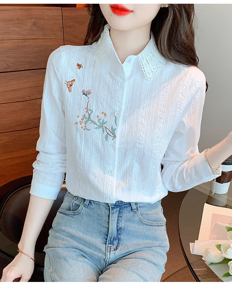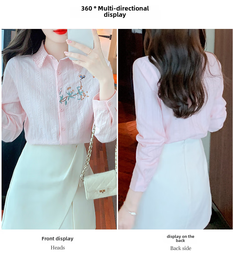 Woodpecker (TUCANO) Fashionable Embroidered Cotton Velvet Shirt Women's 2026 Spring and Autumn Clothing New Long Sleeve Cotton Shirt Women's Fashion Tops Blue S