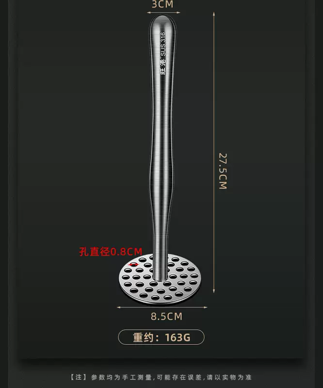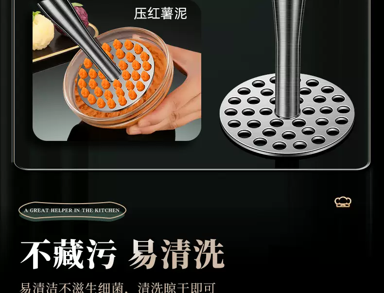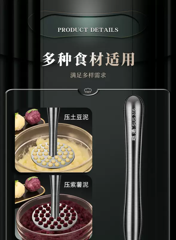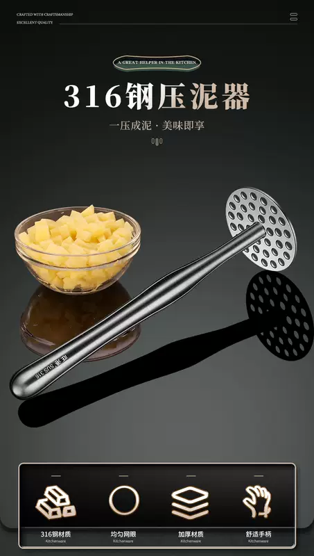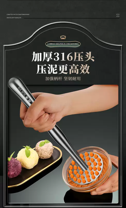 Yusenyi 316 stainless steel mashed potato spoon mashed auxiliary press artifact food household press mashed baby purple potato crusher small 316 stainless steel potato press 316ml small 316 stainless steel potato press