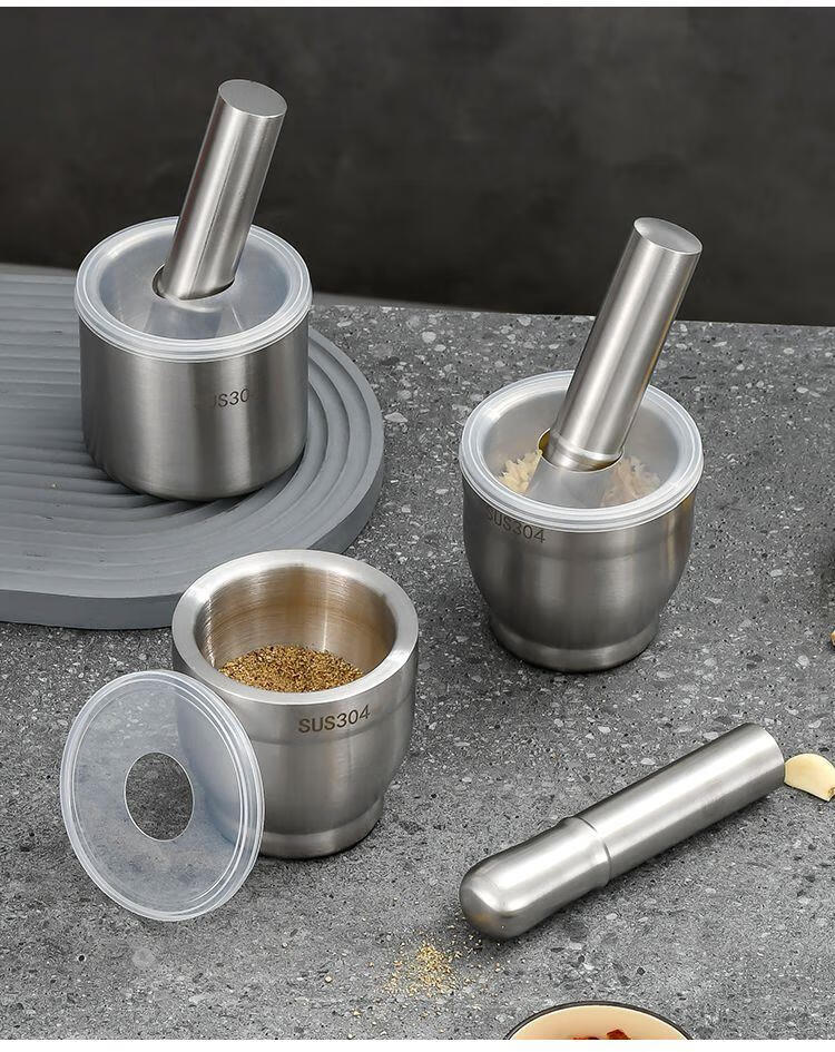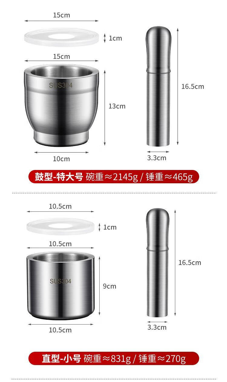 Steel shield imported from Germany, quality grade 316 stainless steel, solid garlic masher, household grinding, manual garlic paste, grade 316 stainless steel - extra large drum type