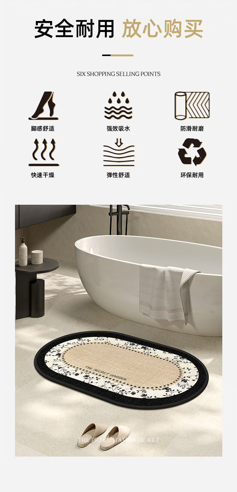 Fantasy Bathroom Floor Mat Bathroom Door Absorbent Mat Entry Door Toilet Carpet Mat Lily of the Valley One 5D Woven Diatom Mud Rubber Bottom 50x80cm Hot Selling Recommendation Selected by 85+ People