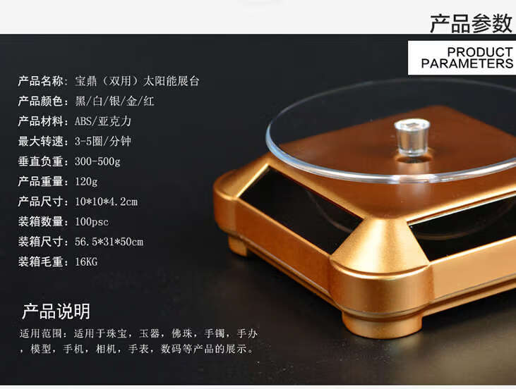 Yusenyi Factory Solar Rotating Booth Exhibition Rack Display Stand Jewelry Jewelry Model Solar Turntable Acrylic Baoding White Light Gold