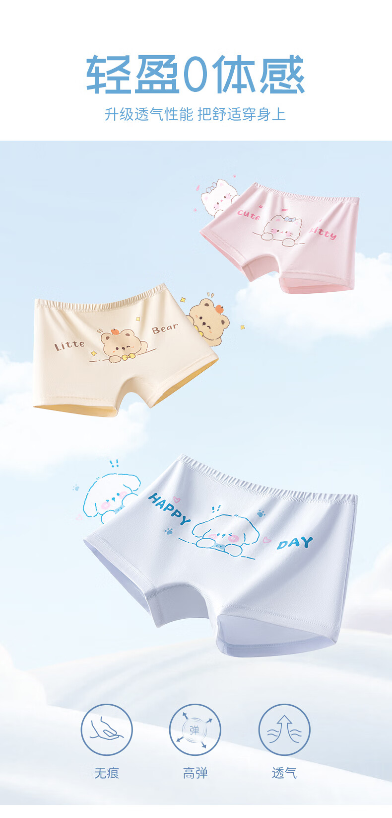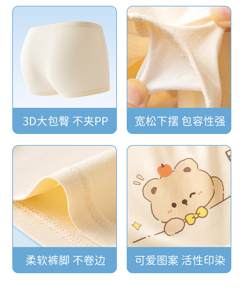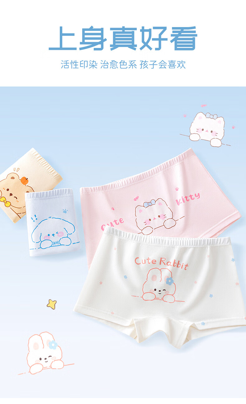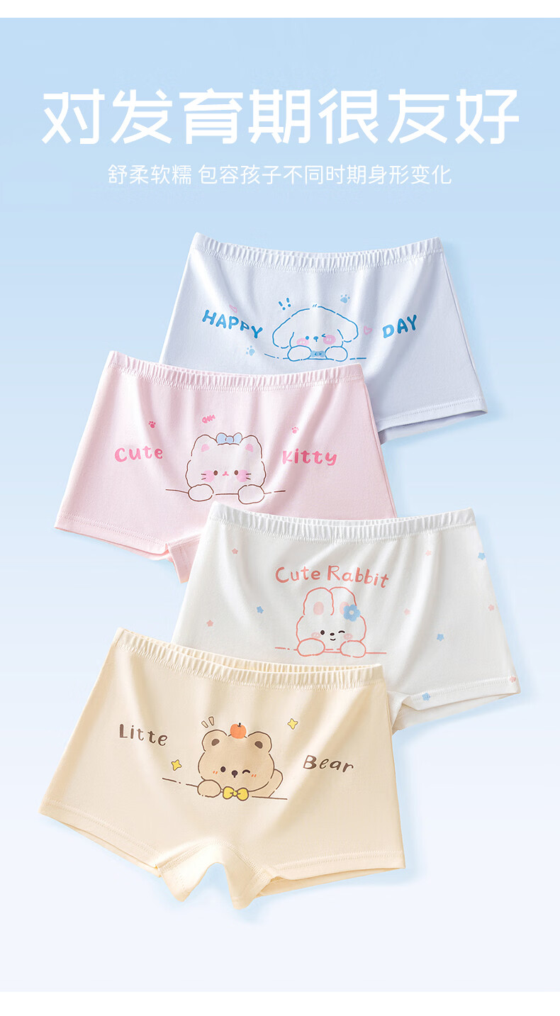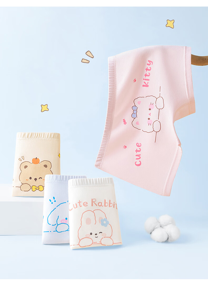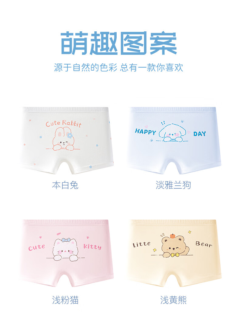 Hodo girls underwear, children's pure cotton antibacterial type A boxer shorts, baby little girls, middle-aged children, no buttocks, Cat Paradise 4 pieces 110 Recommended weight 20-30 Jin Jin equals 0.5 kg
