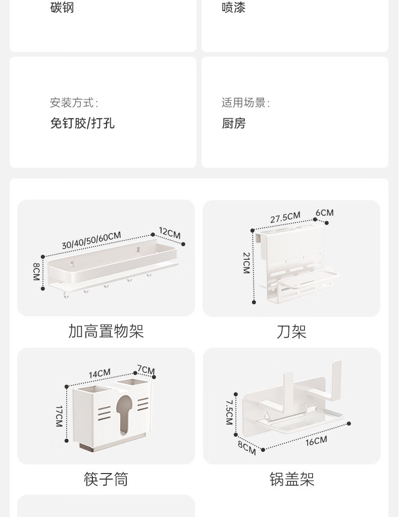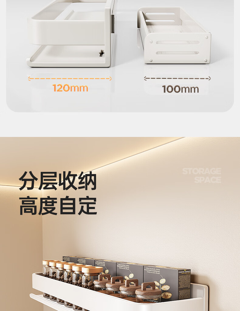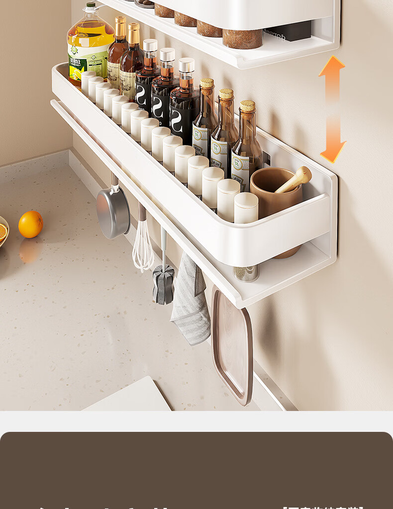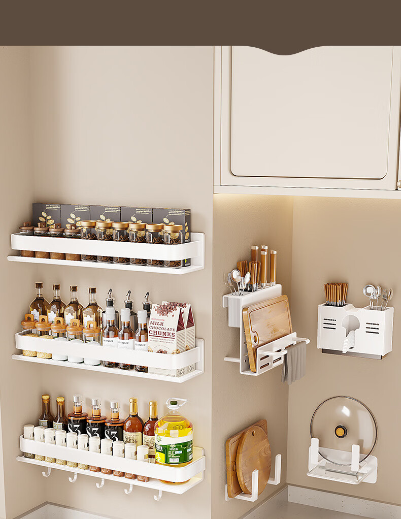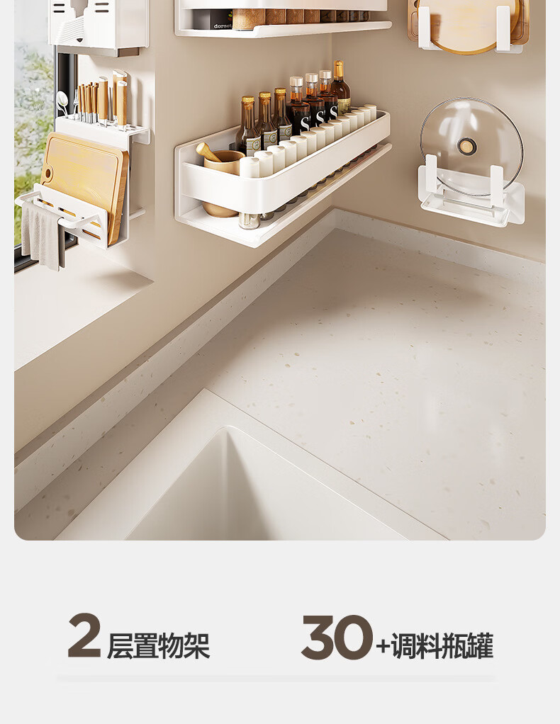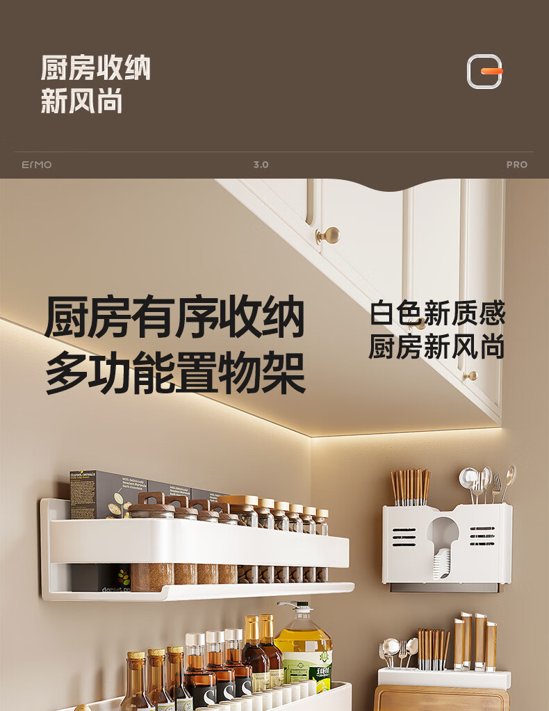 Ermo kitchen rack condiment jar storage shelf wall punch-free wall-mounted household multi-functional condiment rack white 30 2023 upgrade and widen 12CM