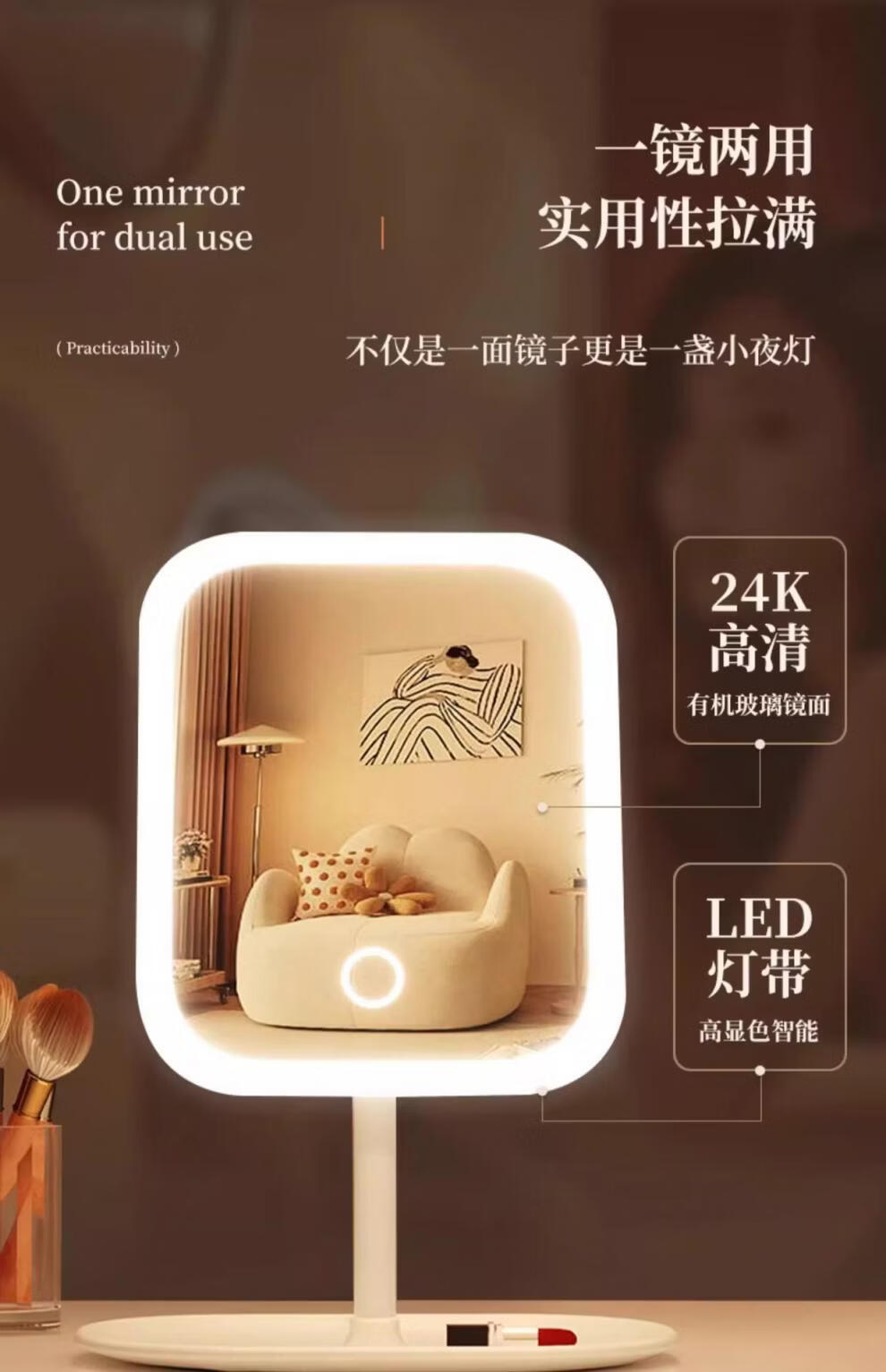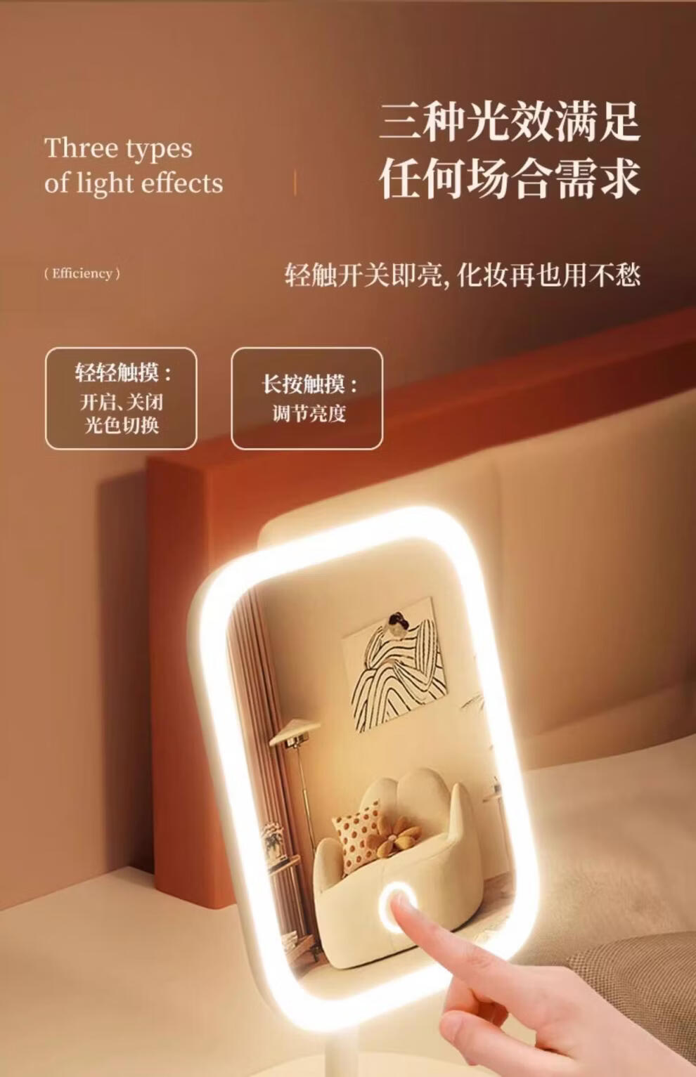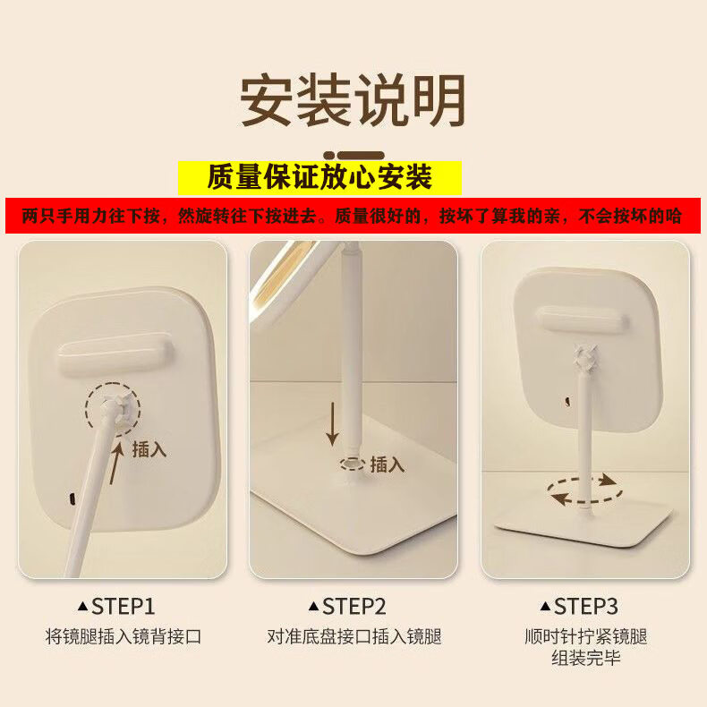 TRUVOER German brand luminous LED smart makeup mirror with light girls' bedroom dressing table dressing mirror student dormitory desktop fill-in mirror square mirror-Princess White three-color light changing