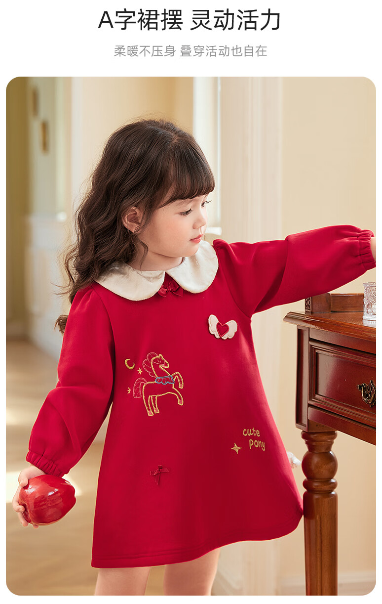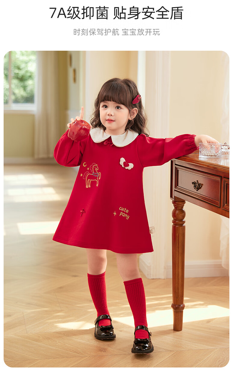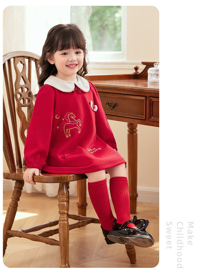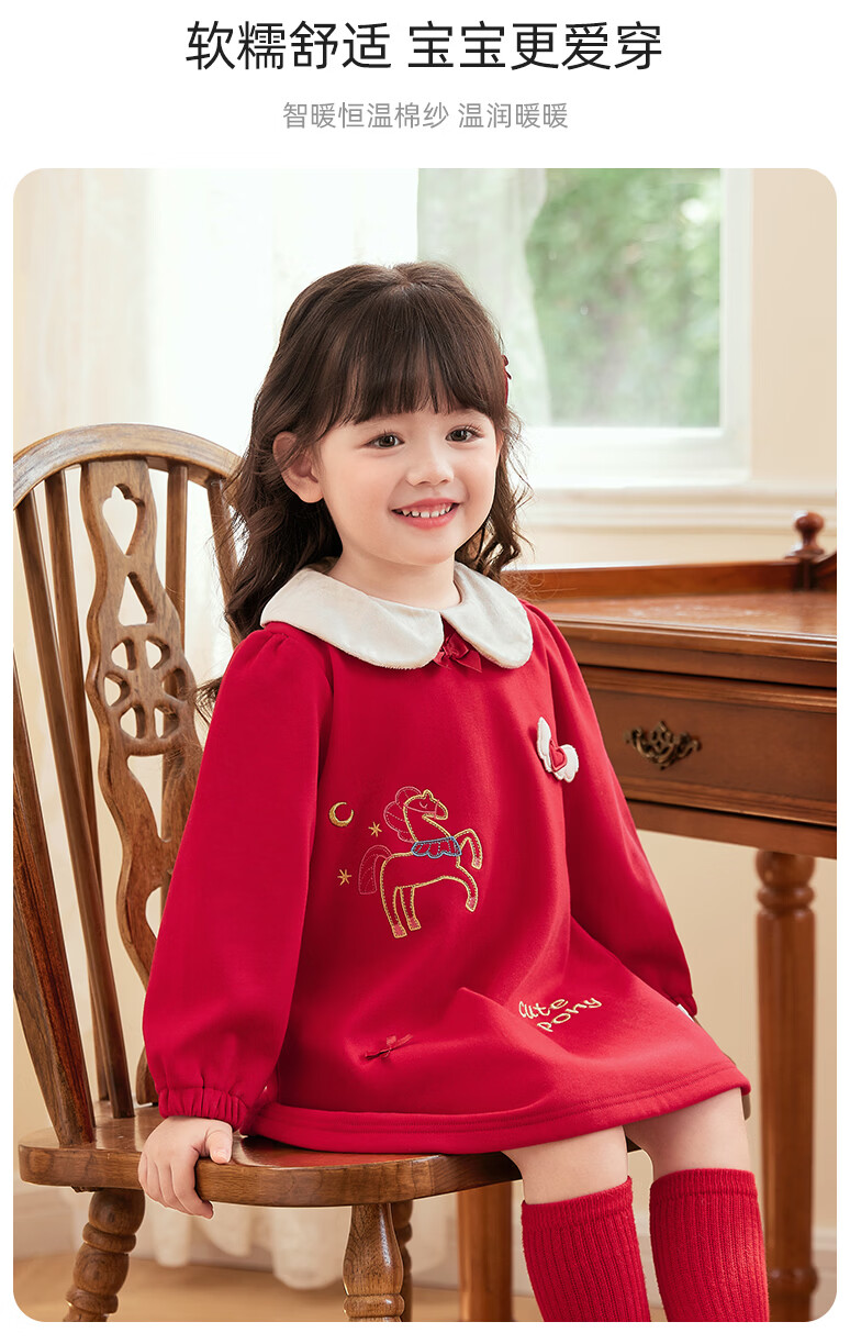 JELLYBABY Fashion Printed Velvet Lapel Dress 25 New Winter Girls Sweater Dress Soft Middle Child Red 100