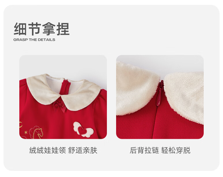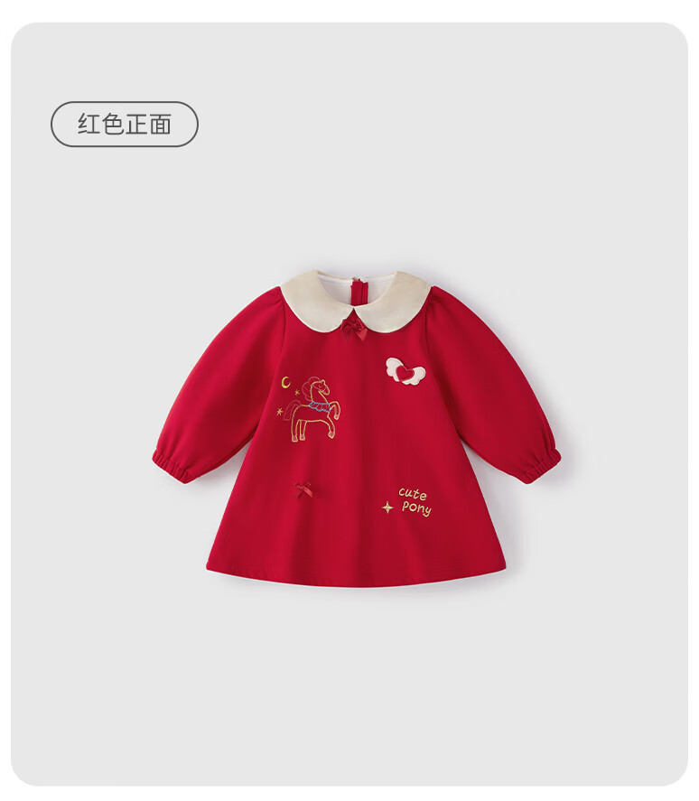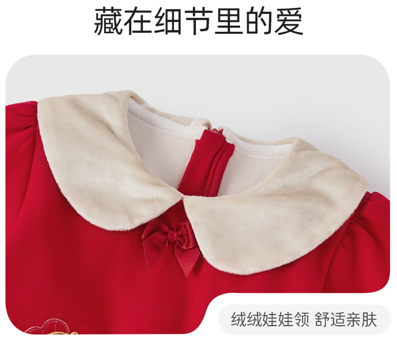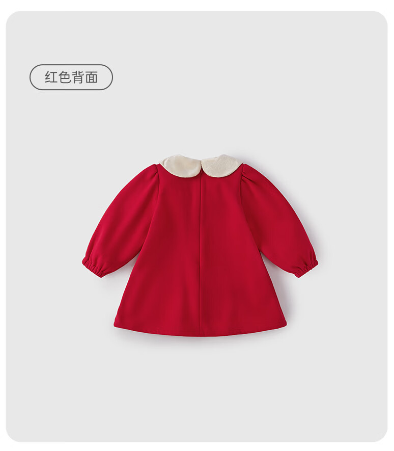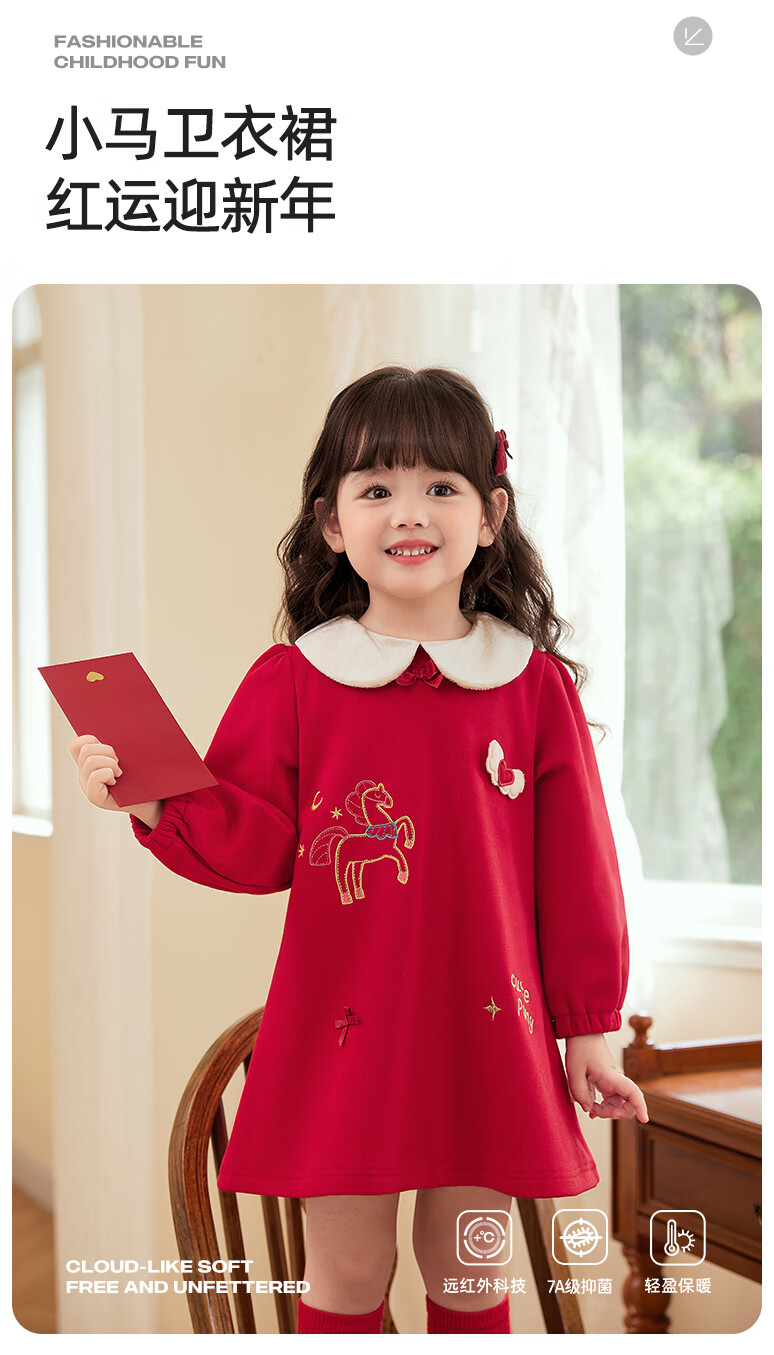JELLYBABY Fashion Printed Velvet Lapel Dress 25 New Winter Girls Sweater Dress Soft Middle Child Red 100
