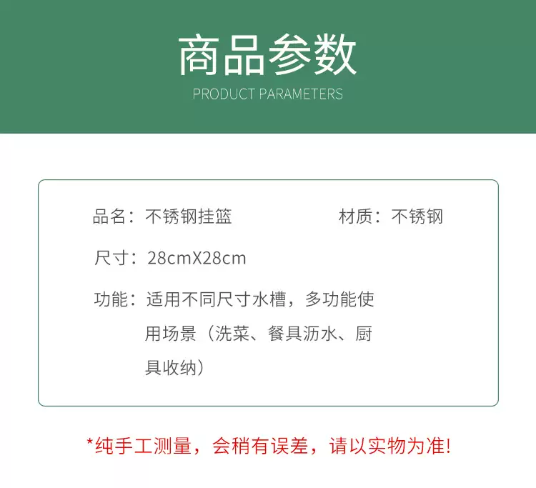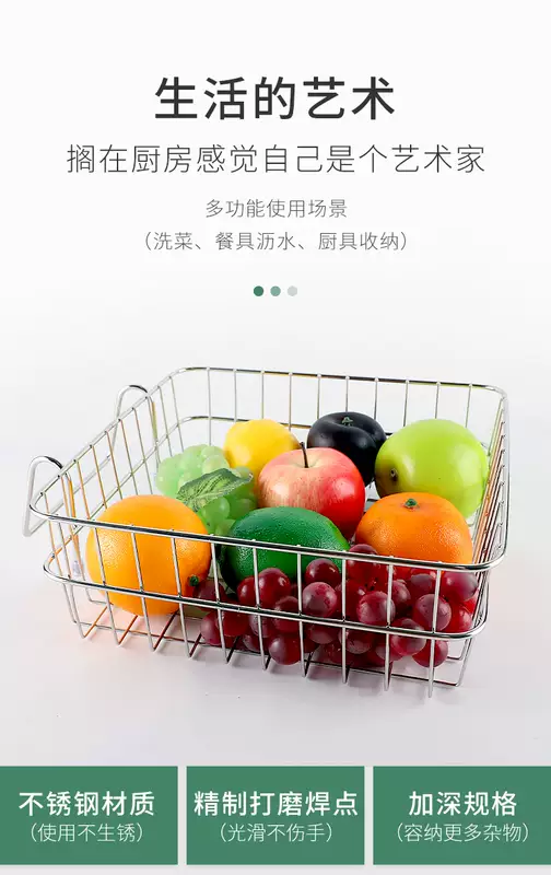 Yusenyi vegetable sink drain basket vegetable basket kitchen rack sink stainless steel drain rack tableware storage hanging basket inner diameter 28CMx28CM suitable for all sinks