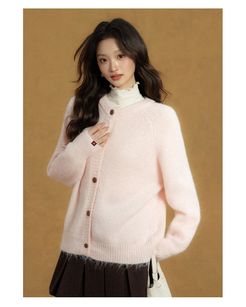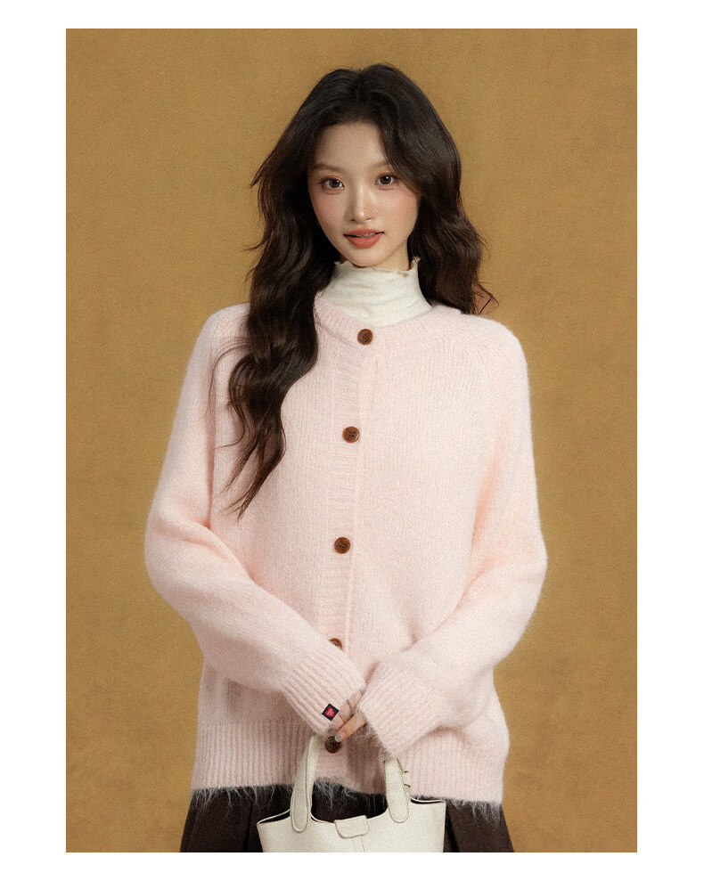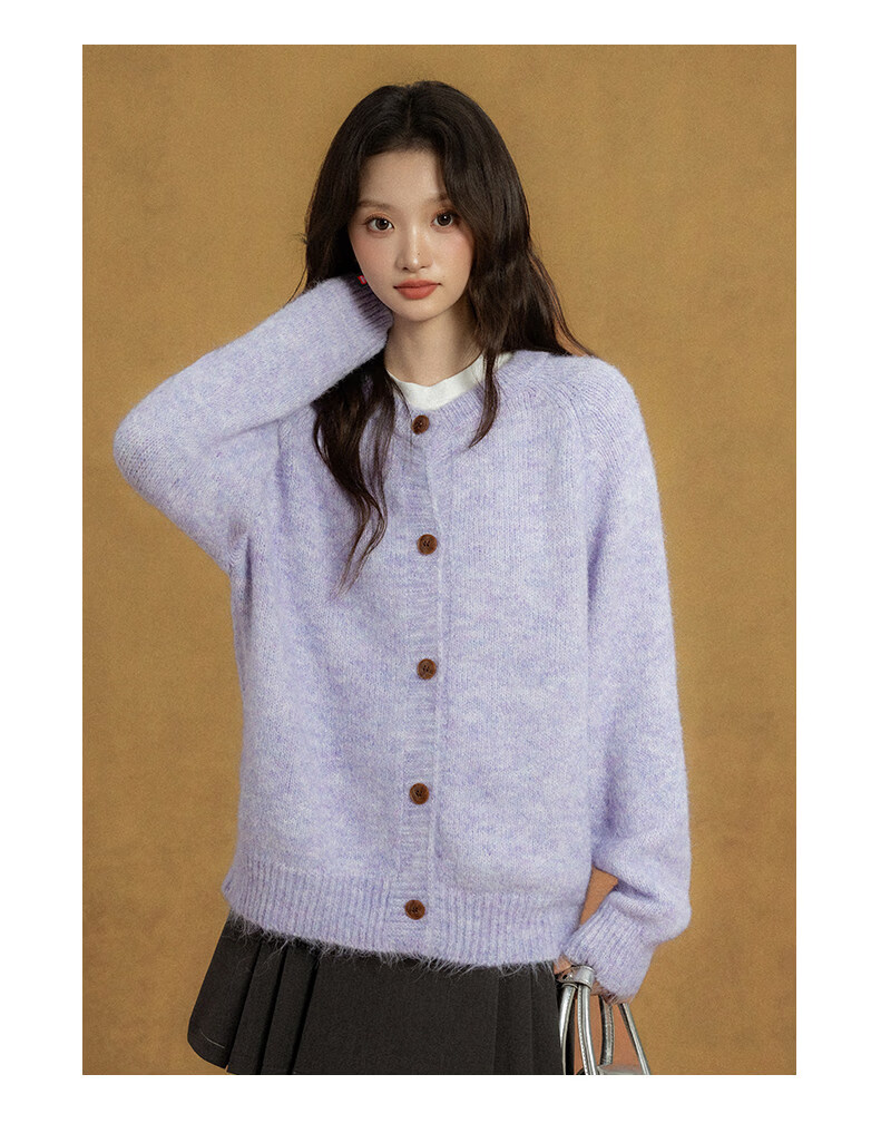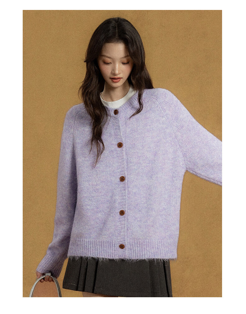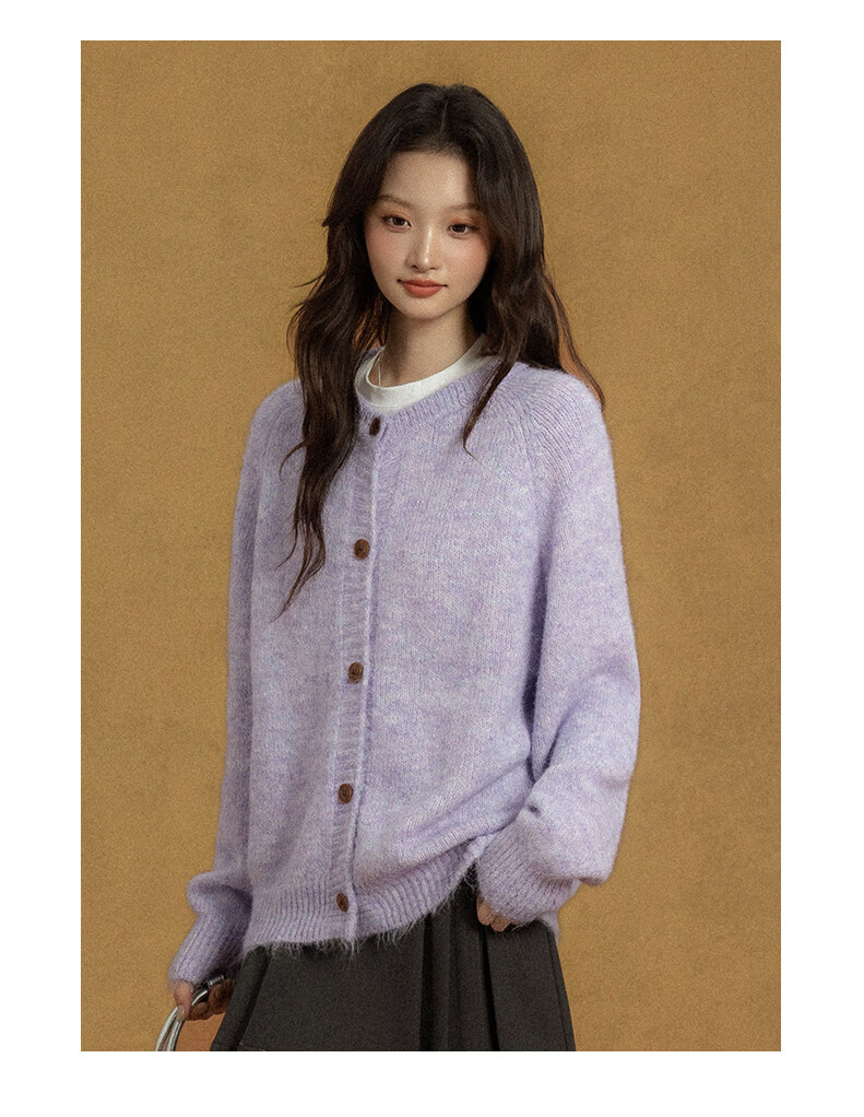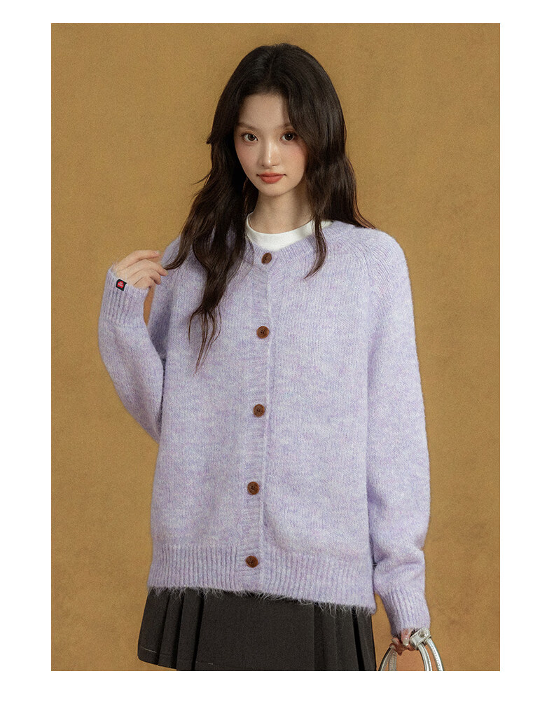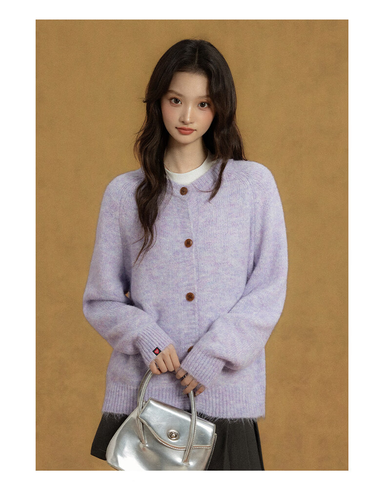 CHOCOOLATE it Women's Classic Gentle Style Purple Cardigan Sweater Women's 2026 Spring New Soft Waxy Cotton Wool Sweater Purple Official Authentic One Size
