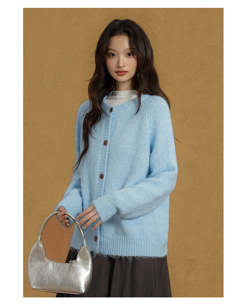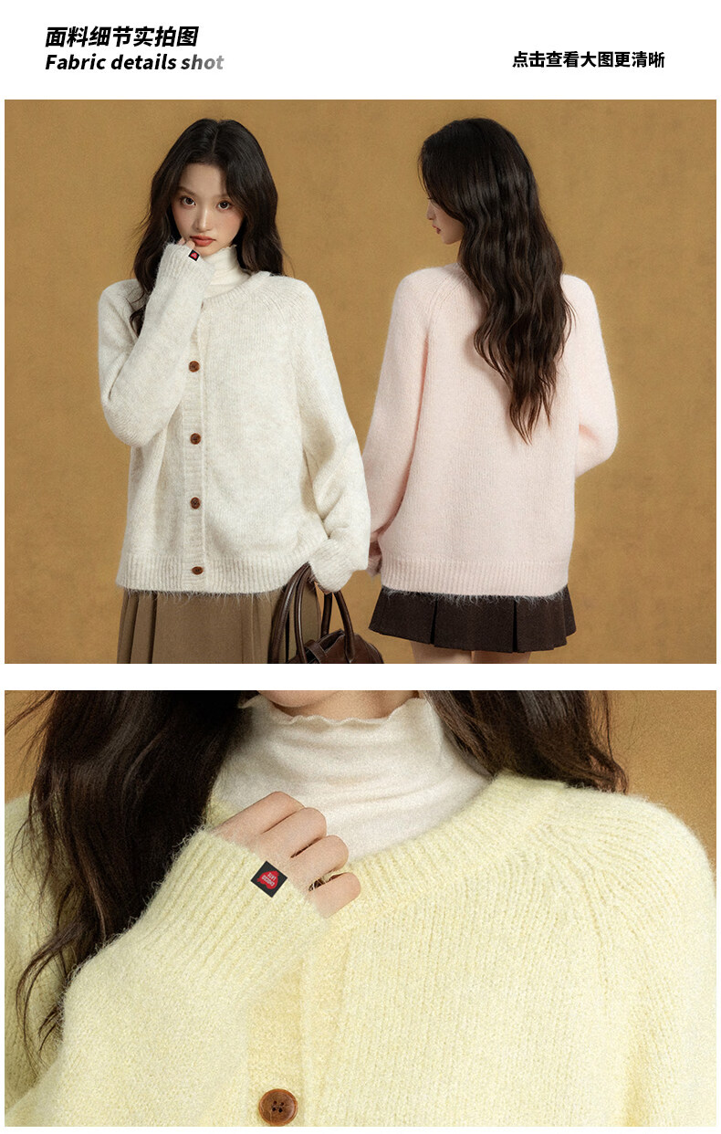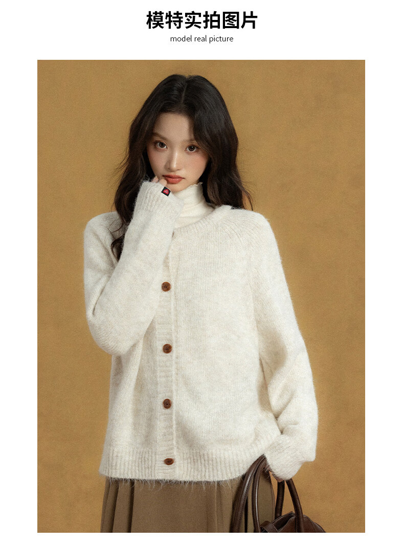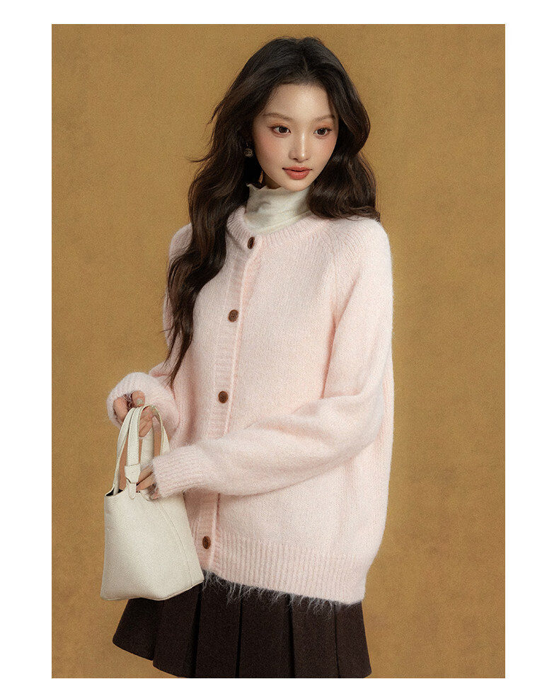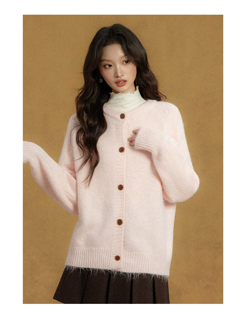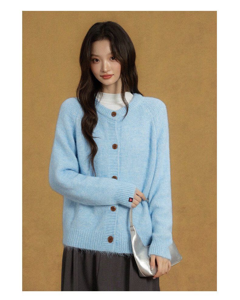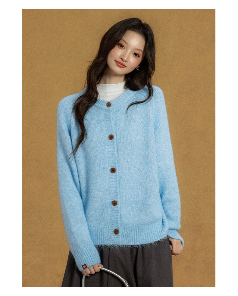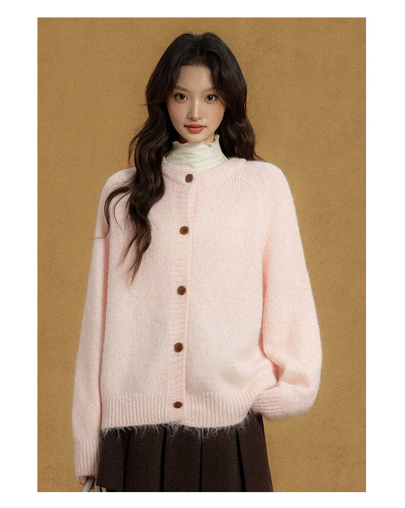 CHOCOOLATE it Women's Classic Gentle Style Purple Cardigan Sweater Women's 2026 Spring New Soft Waxy Cotton Wool Sweater Purple Official Authentic One Size