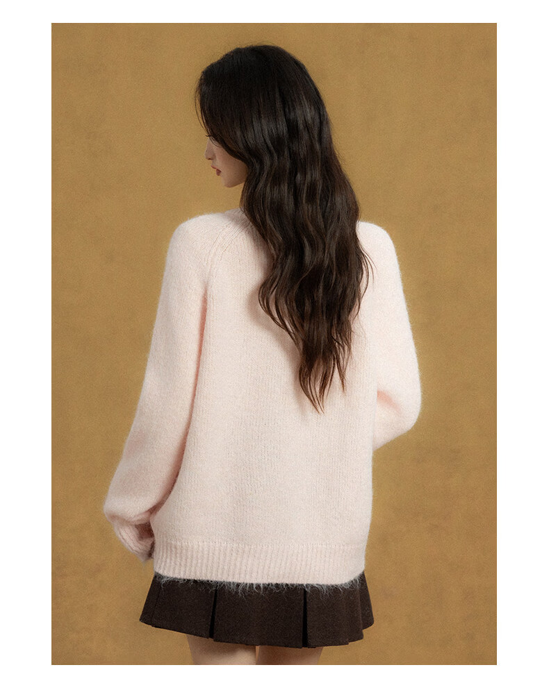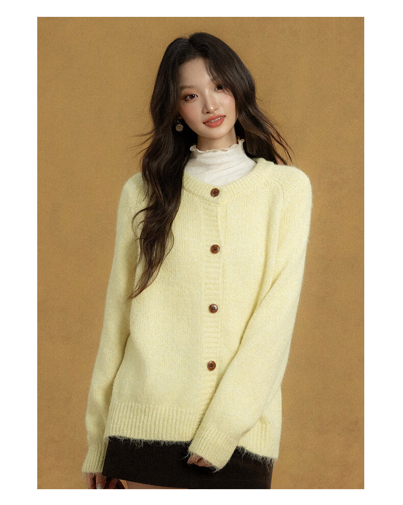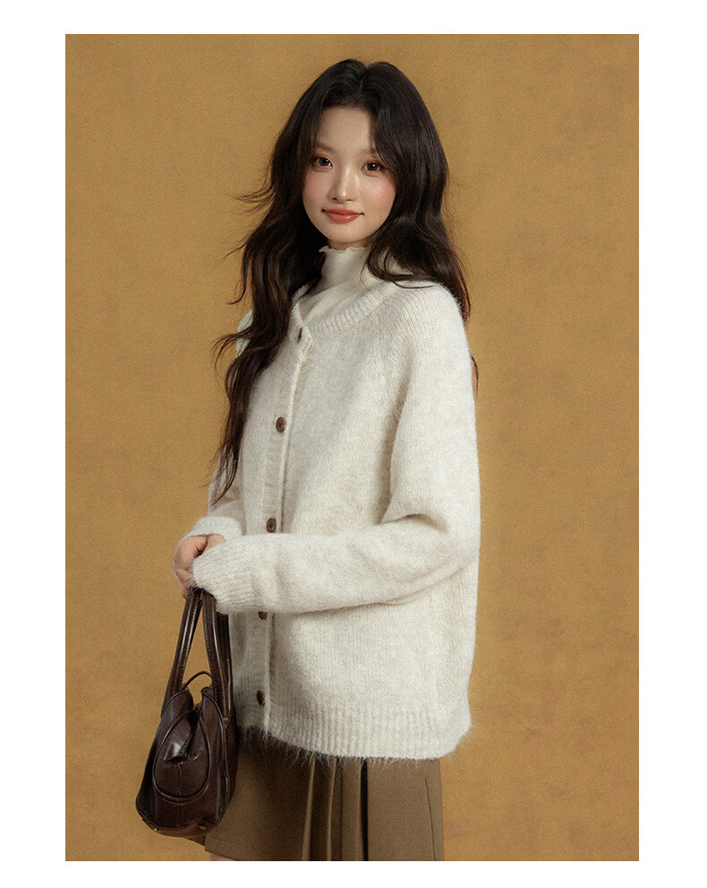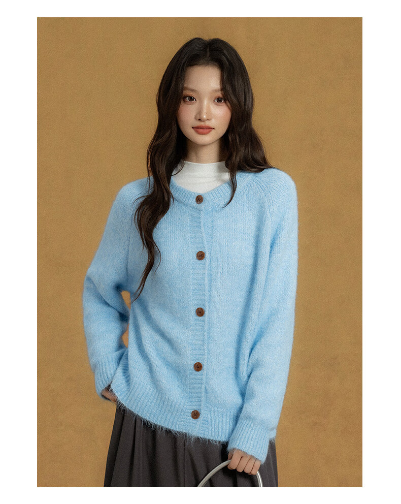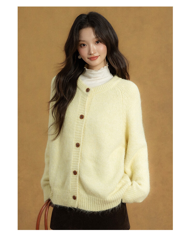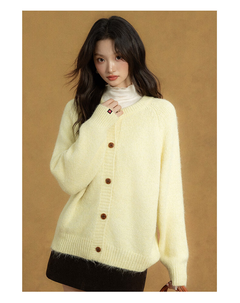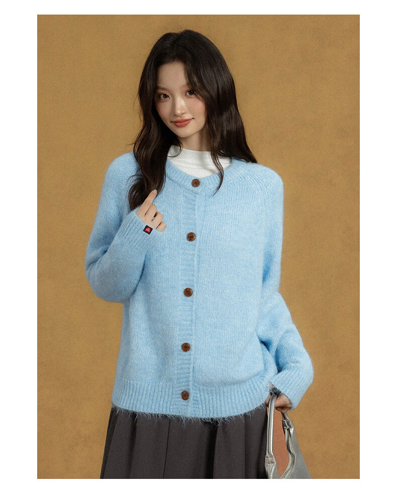 CHOCOOLATE it Women's Classic Gentle Style Purple Cardigan Sweater Women's 2026 Spring New Soft Waxy Cotton Wool Sweater Purple Official Authentic One Size