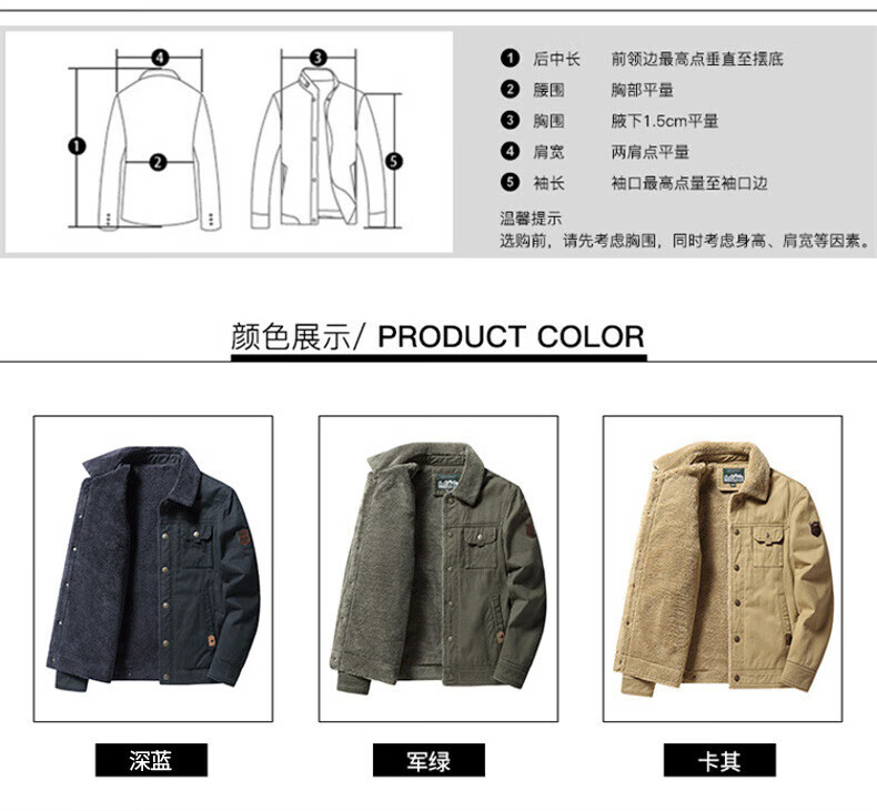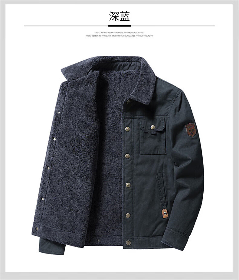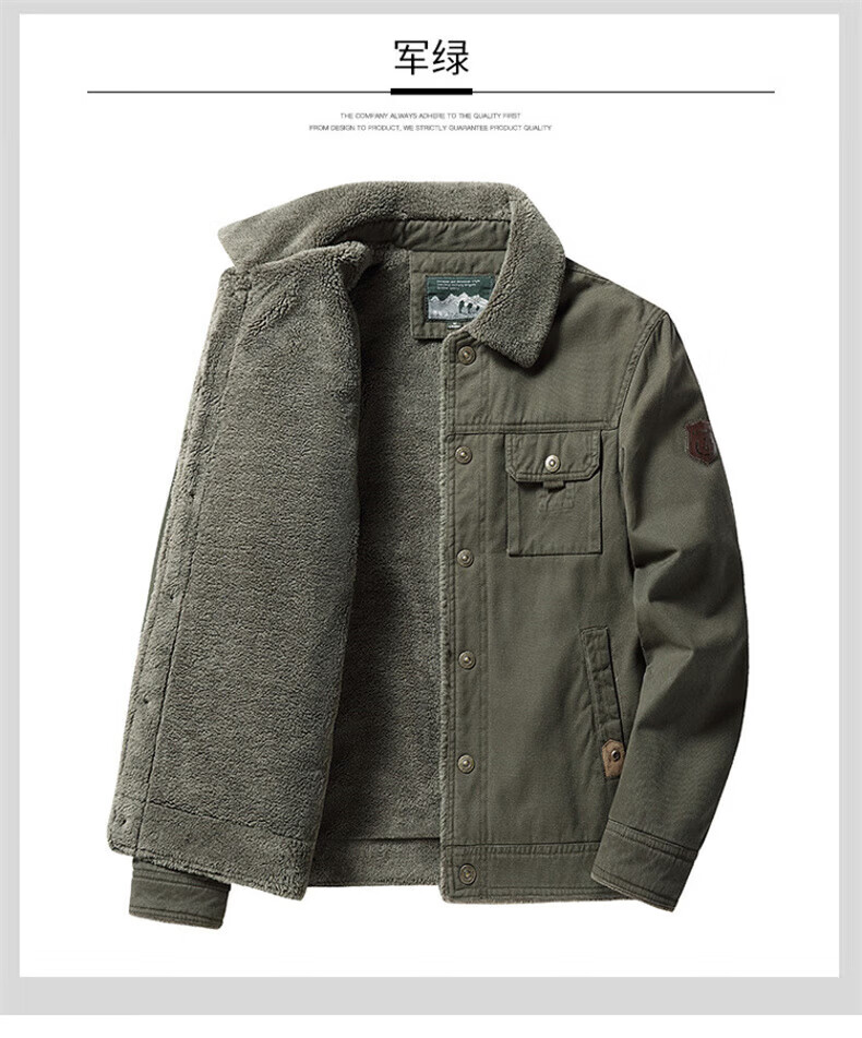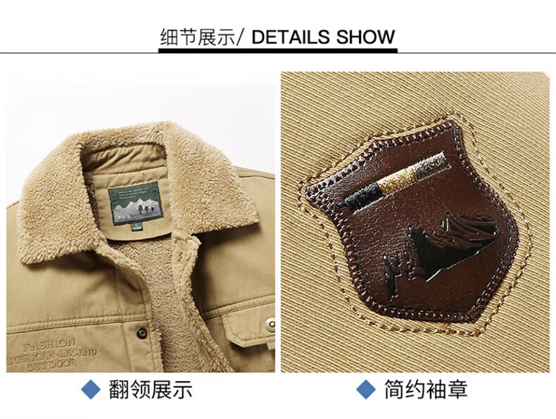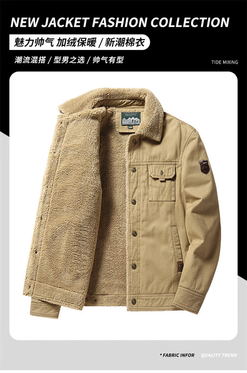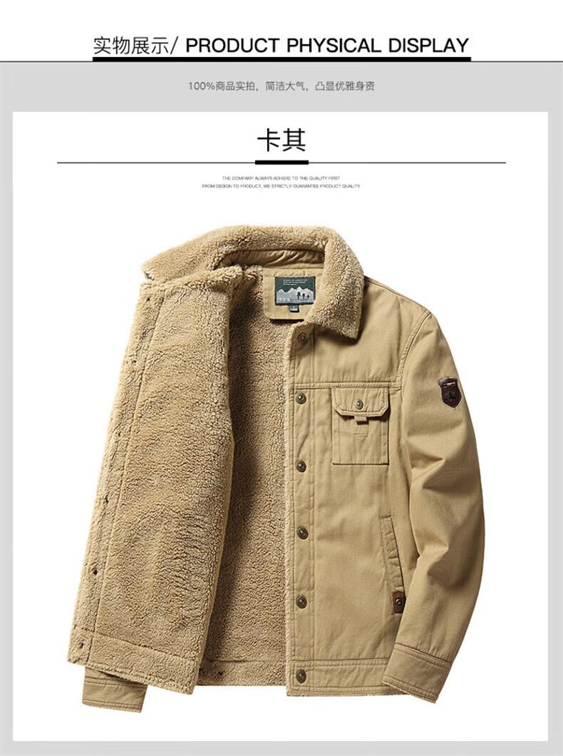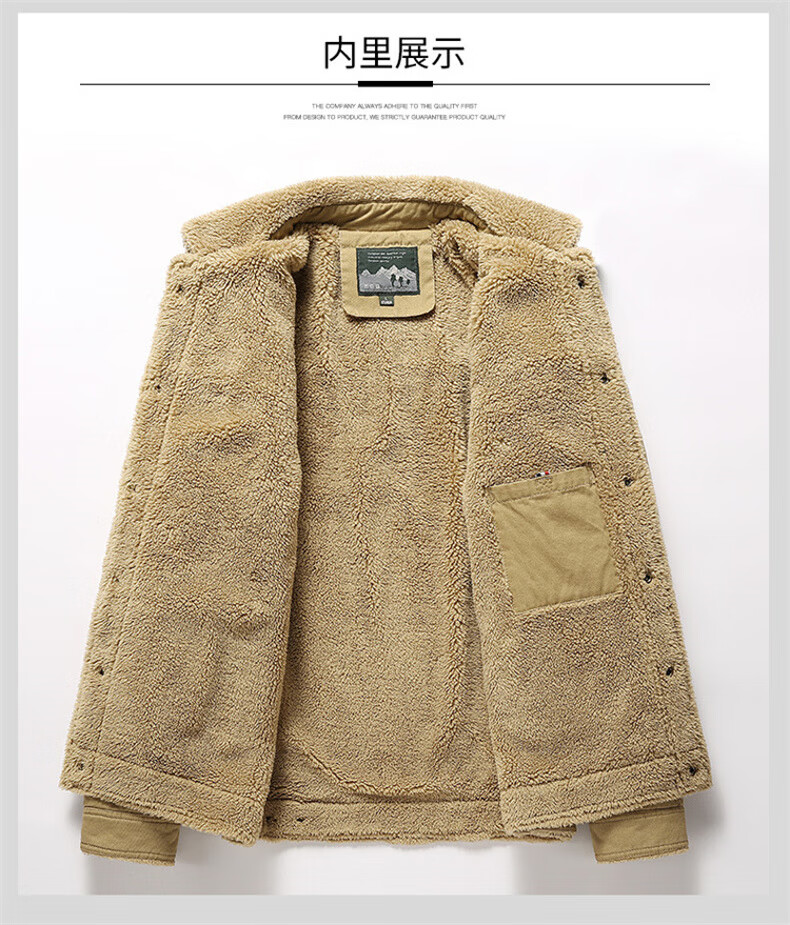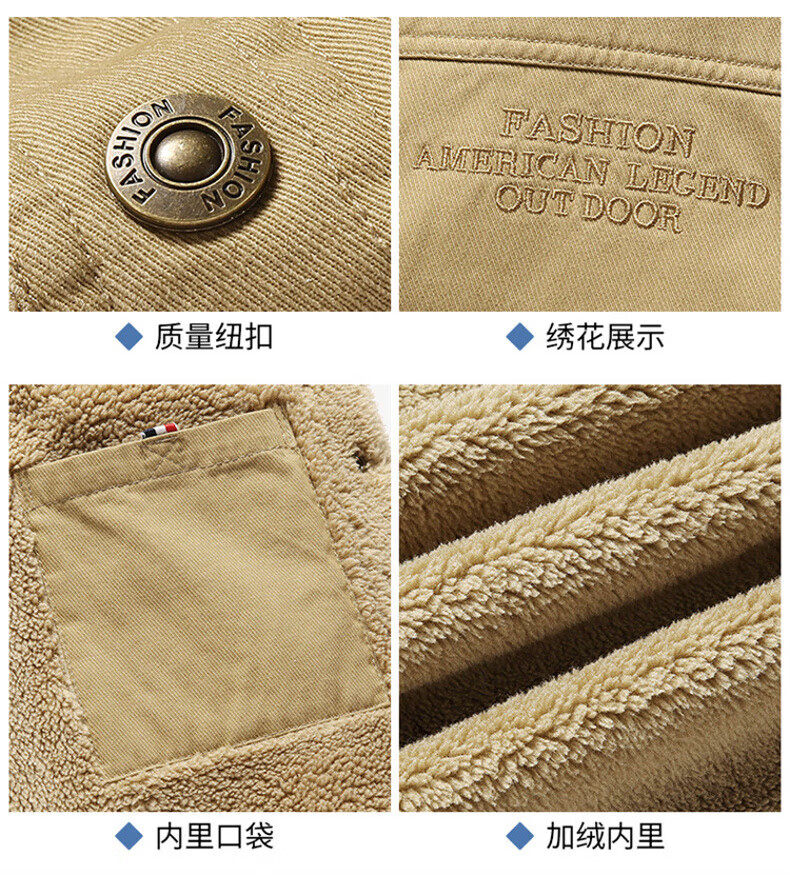Playboy (PLAYBOY) American Jacket Men's Autumn and Winter New Lamb Velvet Work Jacket Plus Velvet Thickened Casual Lapel Cotton Jacket Khaki XL Recommended Weight 130-145Jin Jin is equal to 0.5 kg