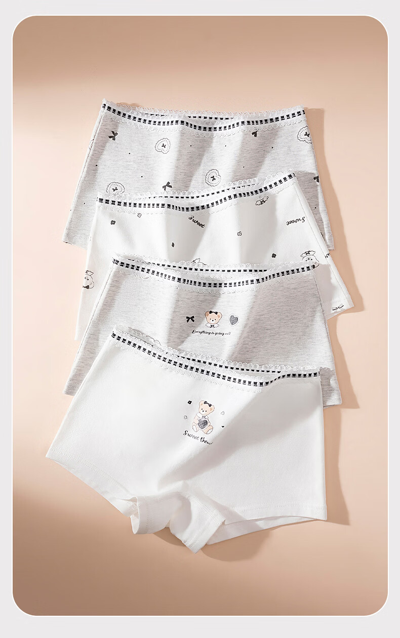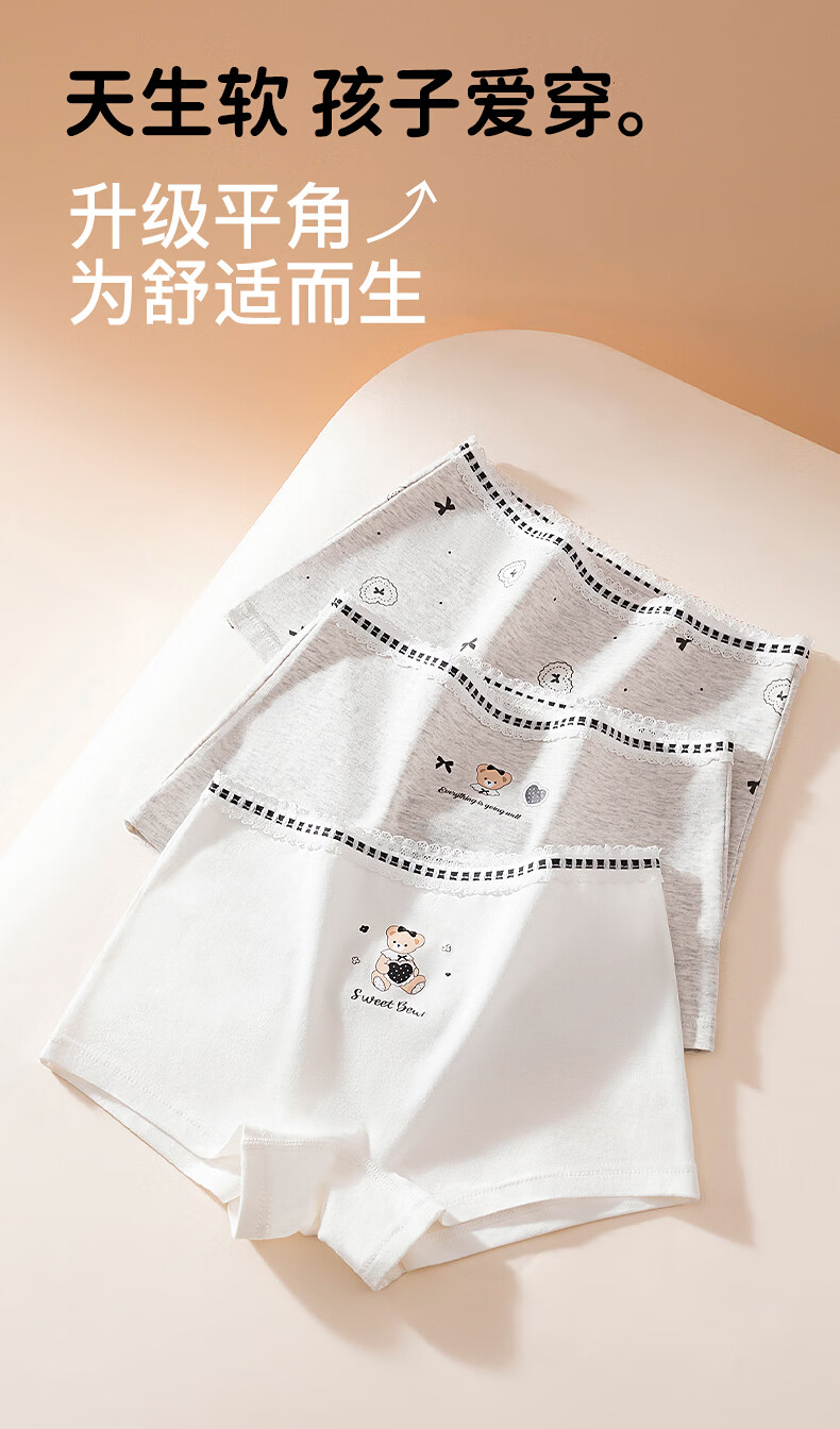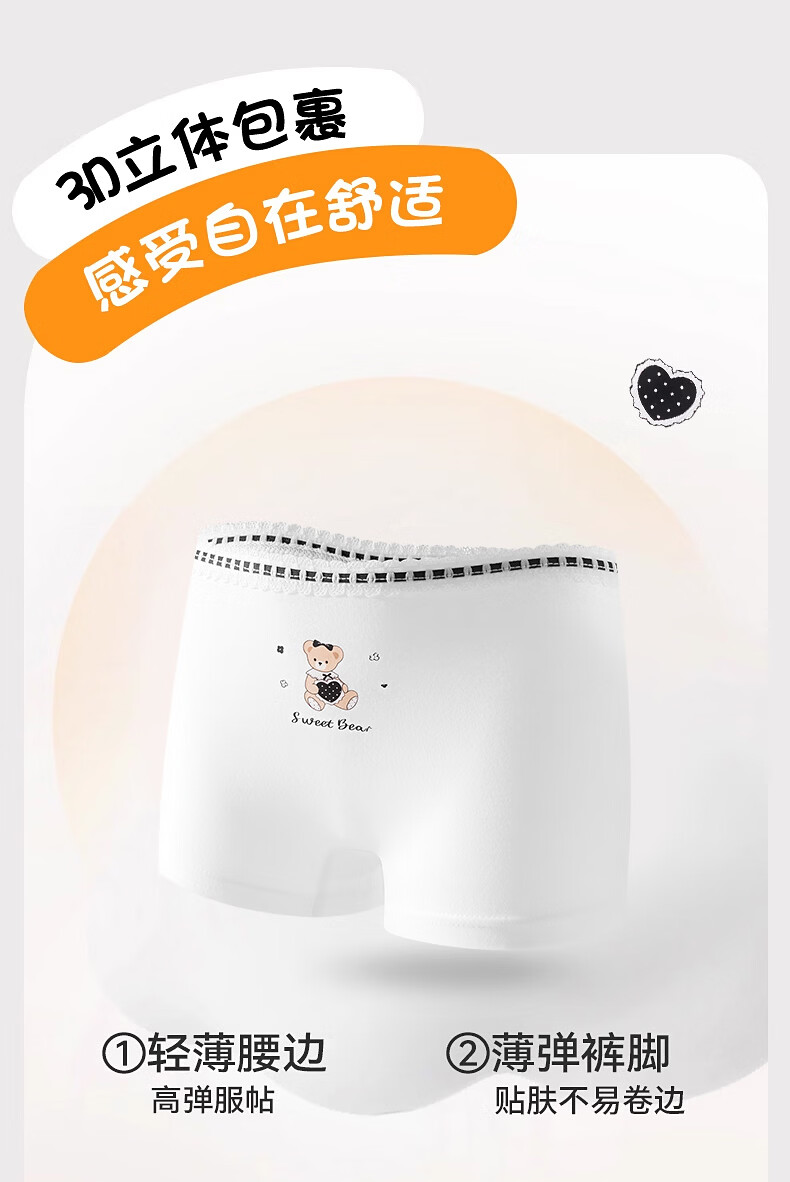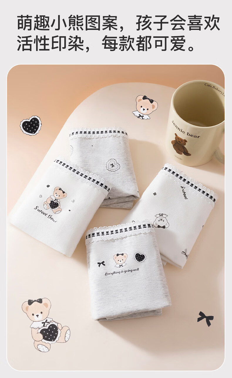Red bean children's underwear, girls pure cotton type A, no butt pinching, small, medium and large children, pure cotton baby boxer shorts, white flower bear - light floral gray care bear - light floral gray large cloth love 3 pieces 120 recommended weight 30-40 Jin Jin is equal to 0.5 kg
