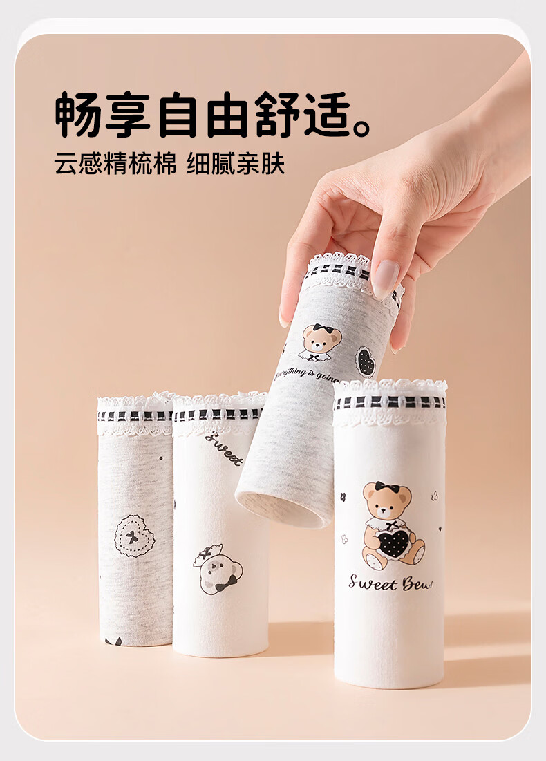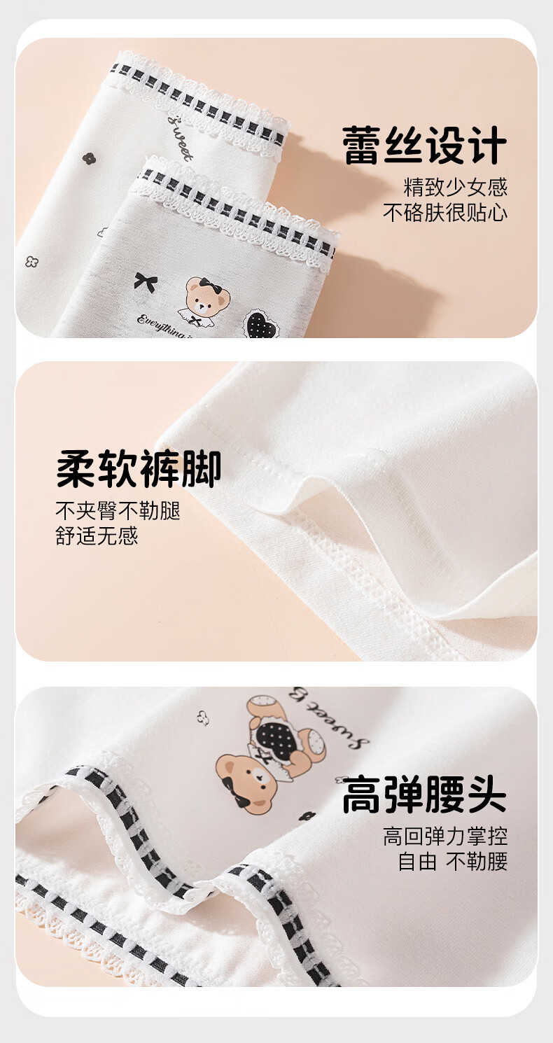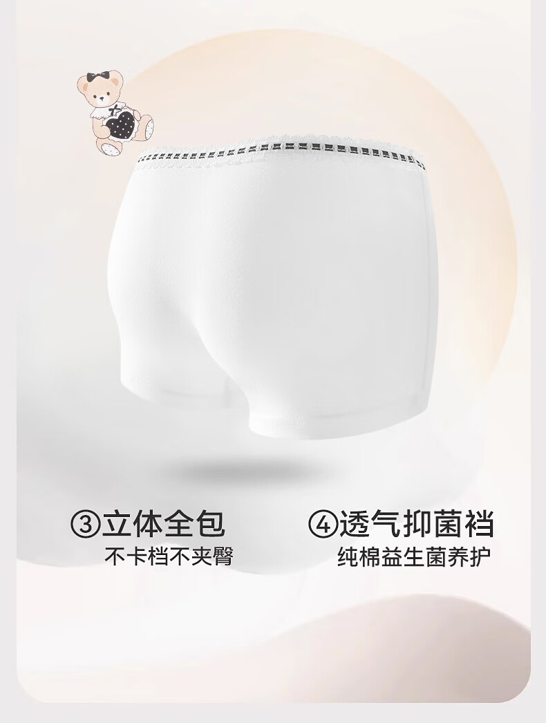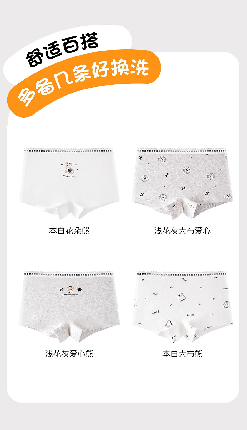 Red bean children's underwear, girls pure cotton type A, no butt pinching, small, medium and large children, pure cotton baby boxer shorts, white flower bear - light floral gray care bear - light floral gray large cloth love 3 pieces 120 recommended weight 30-40 Jin Jin is equal to 0.5 kg